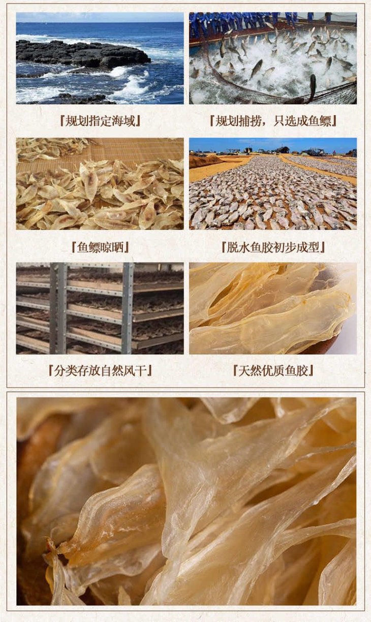 我自己是要一直吃的,也找好的又比较容易做的,这款我是一看到就想要,比较好泡发,又是野生鱼,品相也很不错。包装简陋哦,就是塑料袋,贴了个朋友实体店用的粘纸,大家收到可以自己装到大的密封瓶里,就更好看,也保存得久哦。