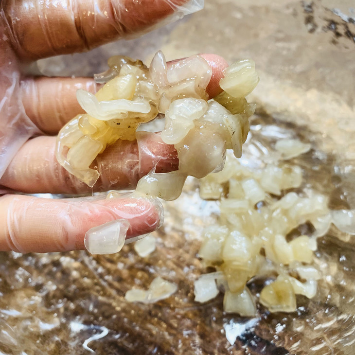 这款鱼胶是印尼的,本地人叫小花鱼胶,名字挺可爱。朋友自己吃鱼胶很多年,也是很挑了。印尼那边是印度洋,海水特别清澈,没有污染,鱼类也特别多,都是野生鱼种。这是她长期合作的渔民老板拿了说送给她吃的。鱼胶看起来特别小,但是很透明,根据她吃鱼胶的经验,透明的鱼胶就是比较好的,起码不是腐肉。老板说这个叫三给鱼(音译),除了正常鱼胶的功效,还多了一项止xue的功效。渔民老板打鱼几十年,吃鱼几十年,他很了解鱼,也说这款很性价比。