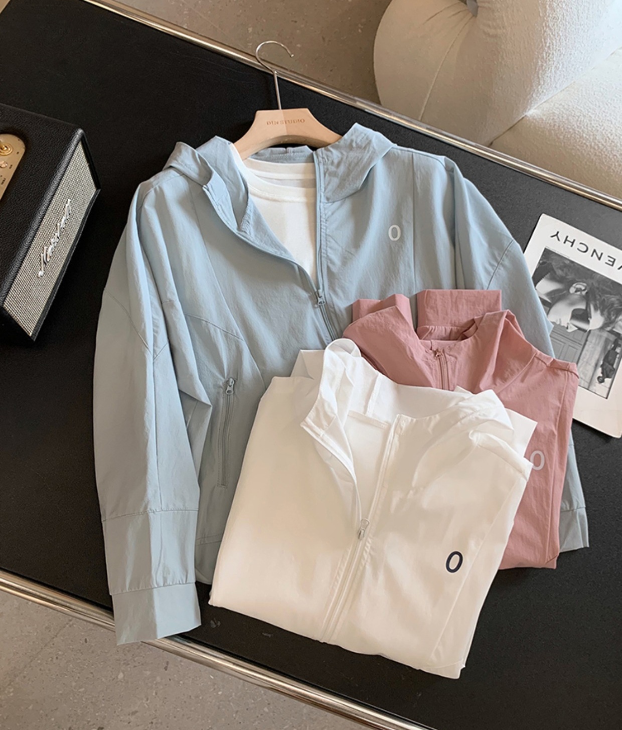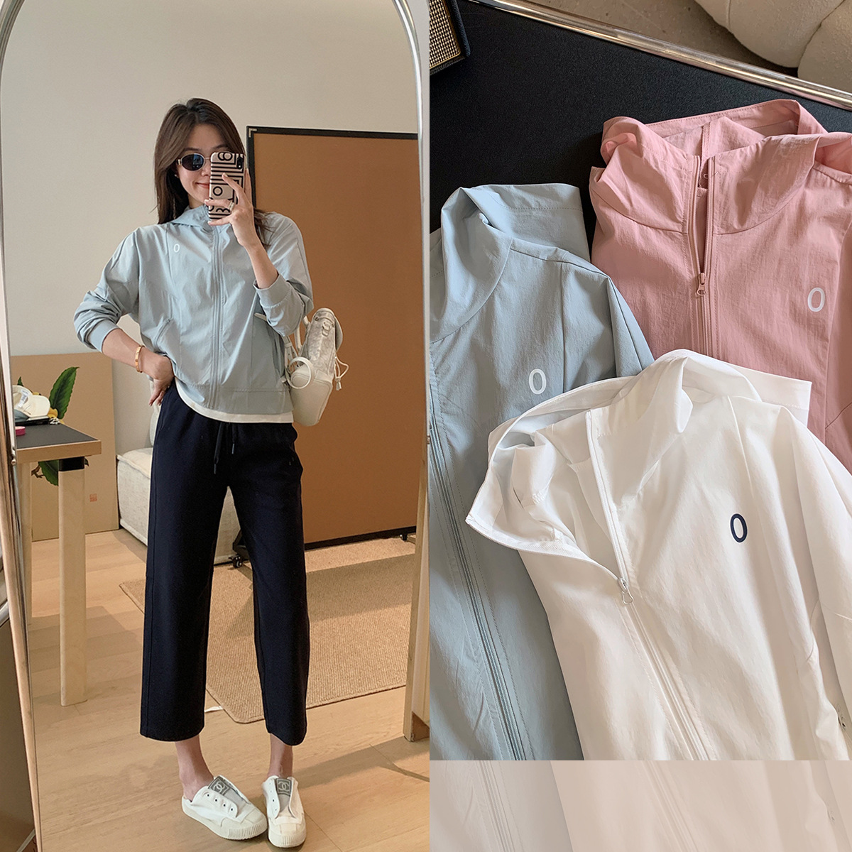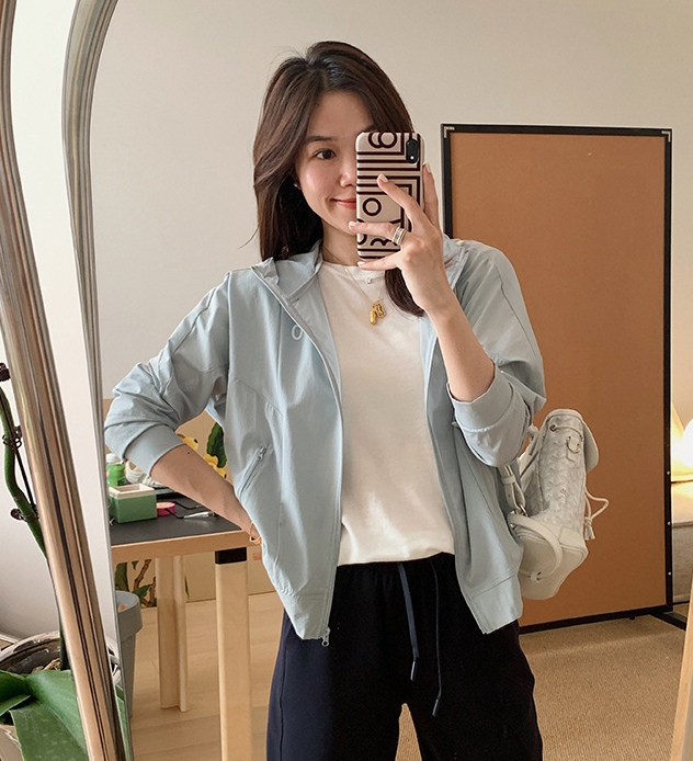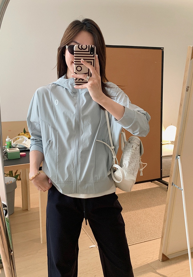 轻薄速干分割结构短款连帽外套!高频率实穿,外出免不得带一件小防晒衣。车上,办公室务实的好穿。