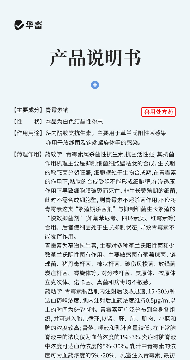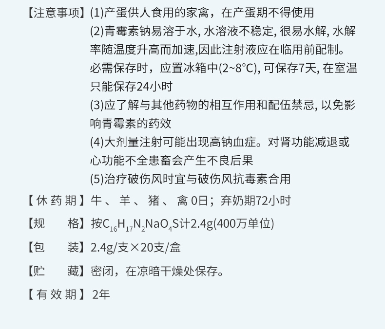 【社群专享】华畜兽药 400万注射用青霉素钠2.4g*20支 抗菌消炎 广谱药