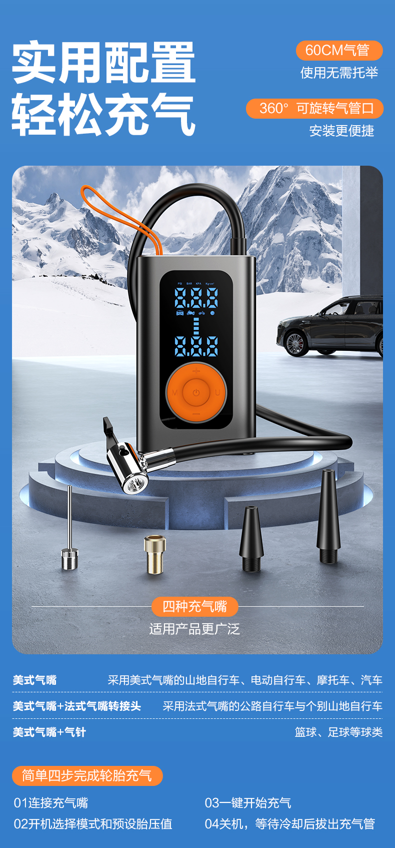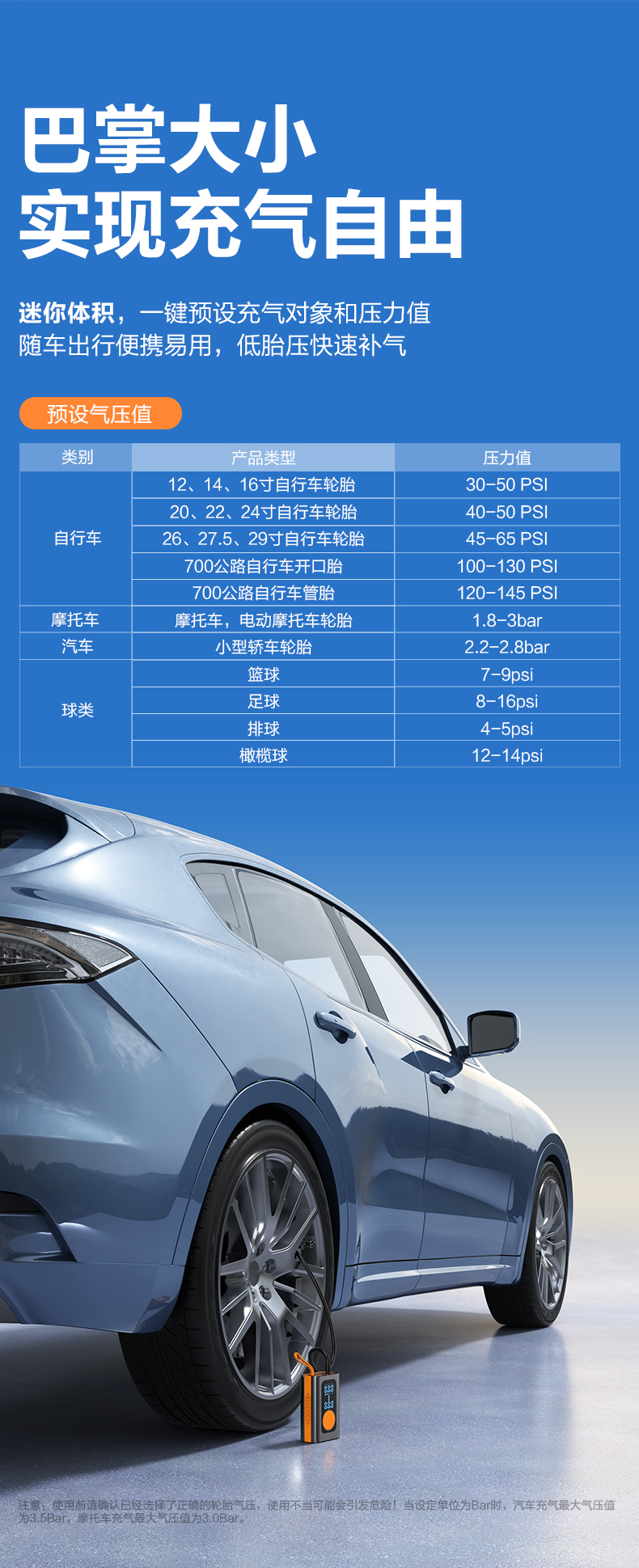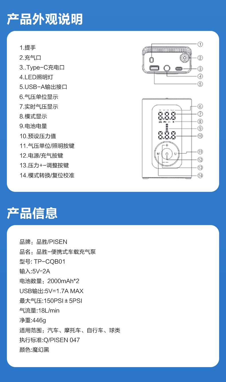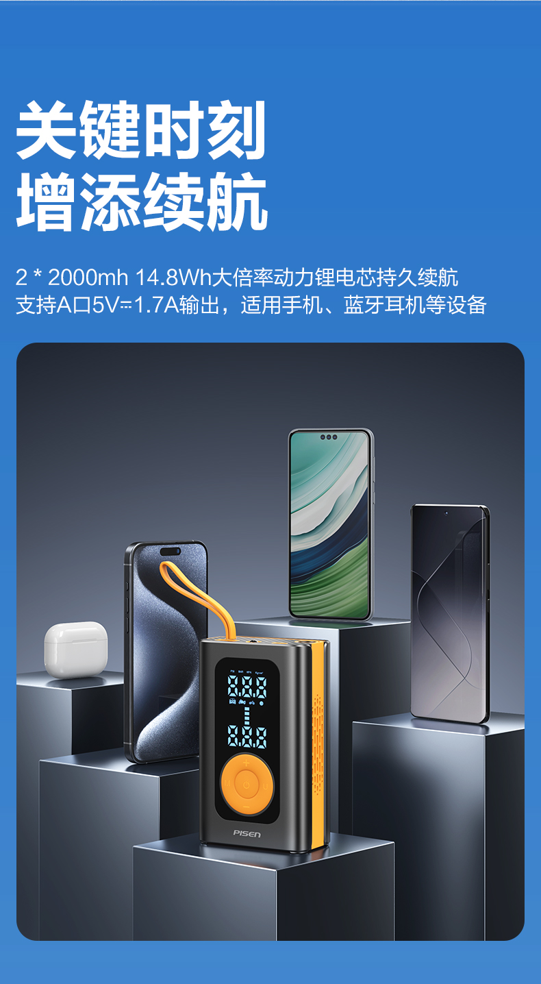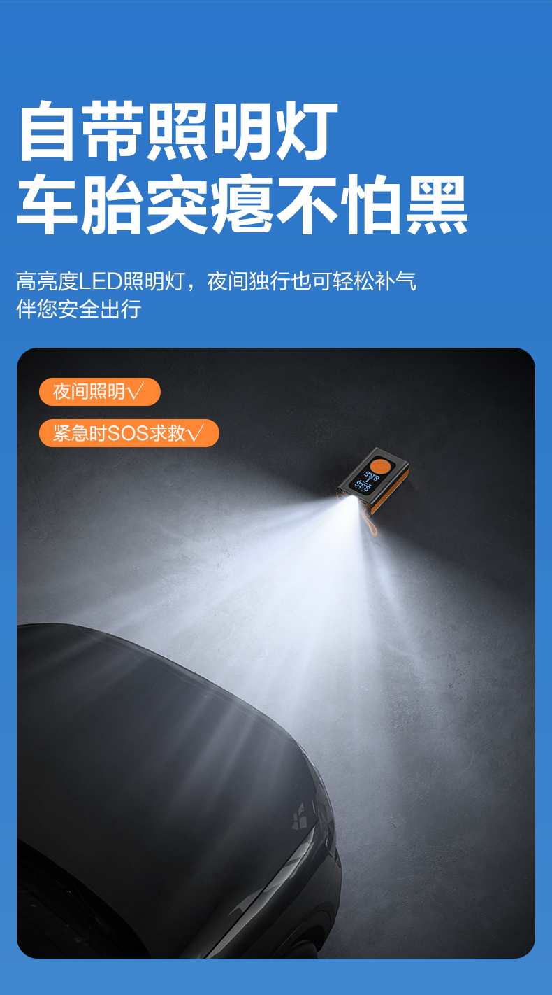 品胜 便携式车载充气泵 无线便携式 轮胎测压LED照明/汽车/摩托车/自行车适配