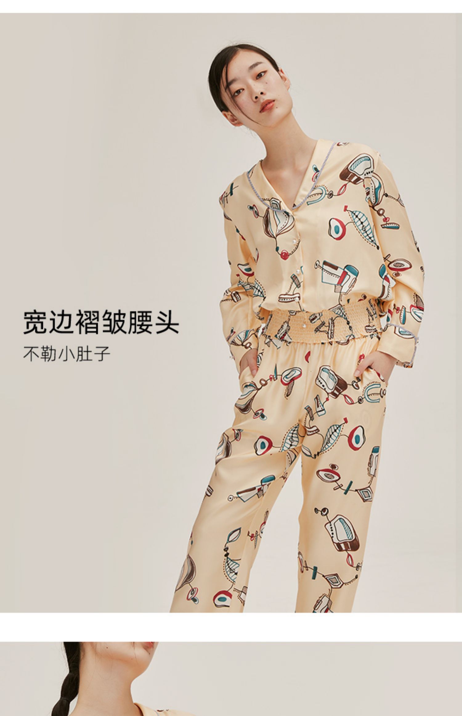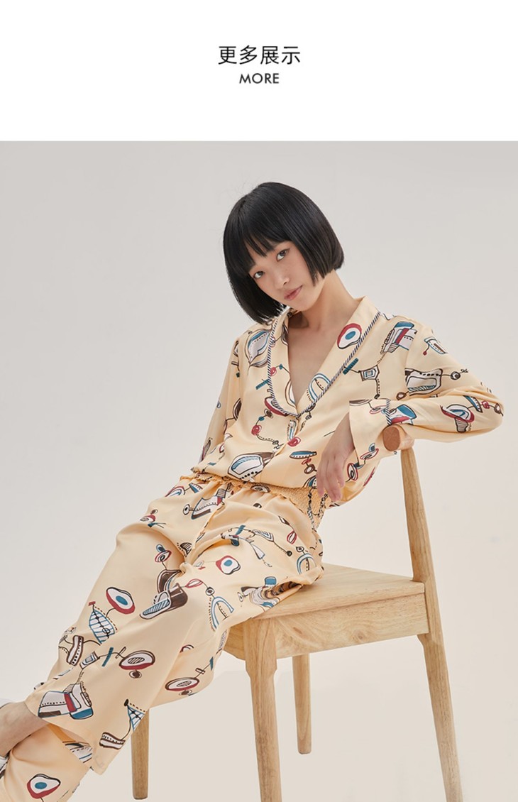 桑罗睡衣小猫印花套装外穿轻复古女睡衣套装
