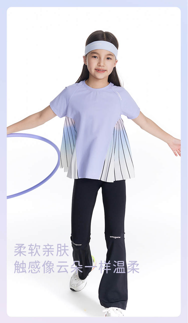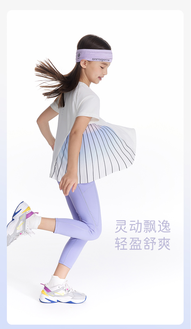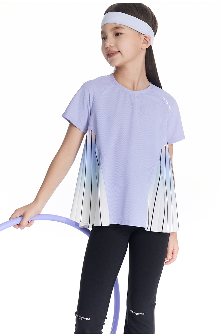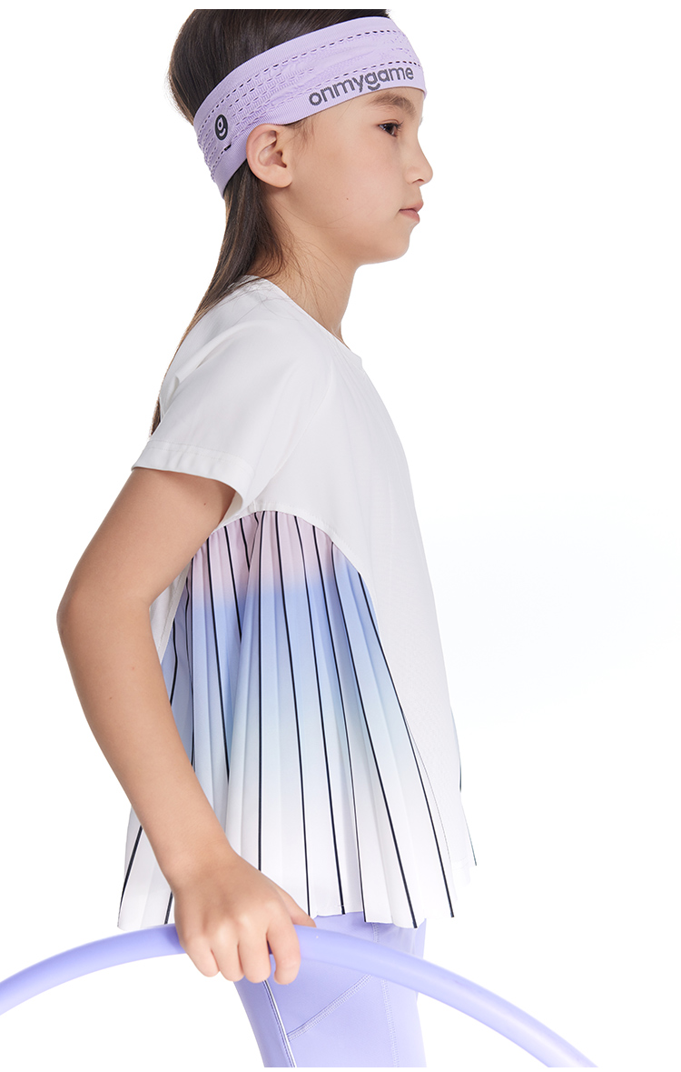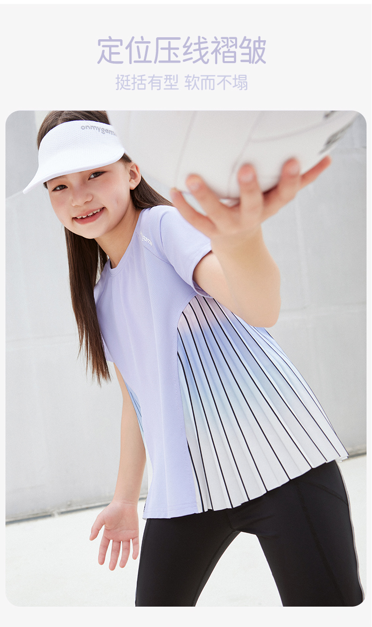 onmygame【轻舞风琴】女童短袖t恤儿童百褶运动上衣夏季2024新款
