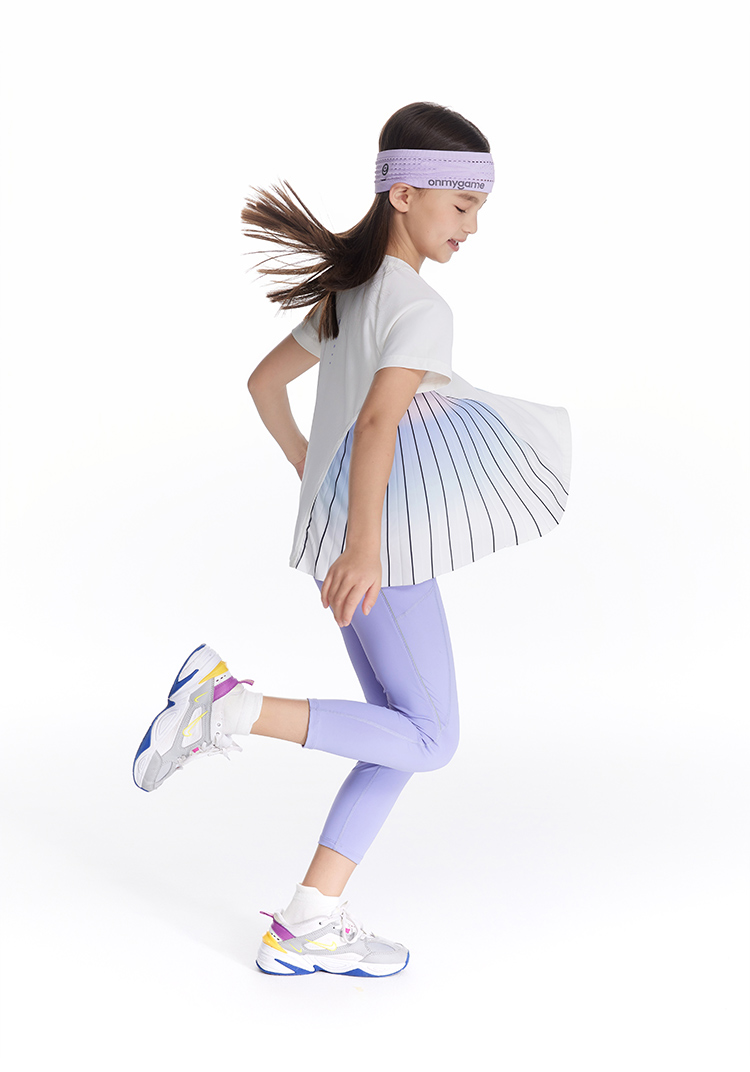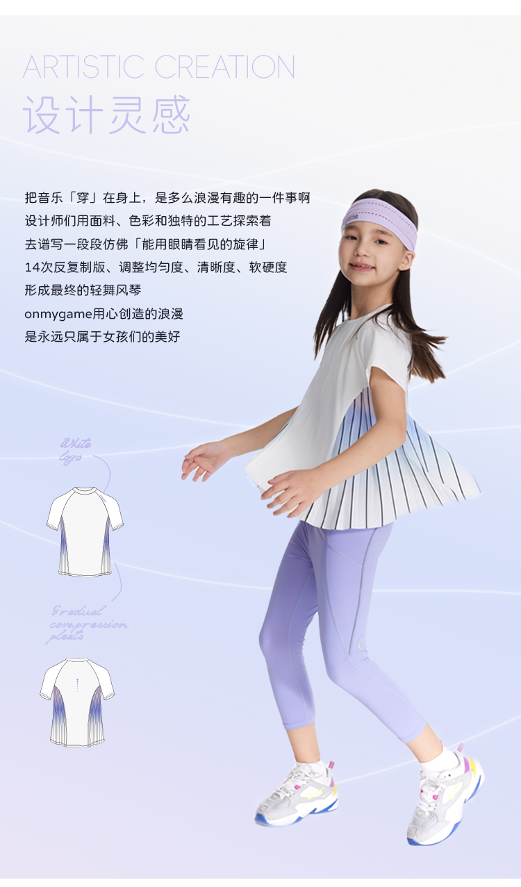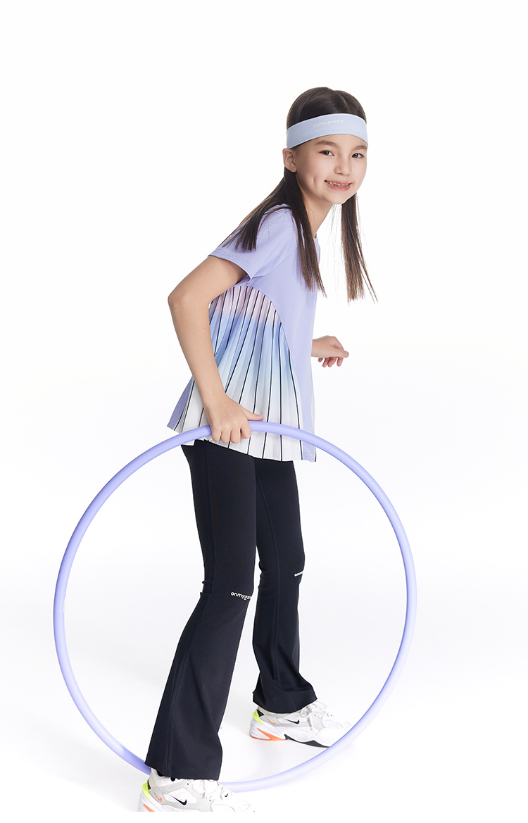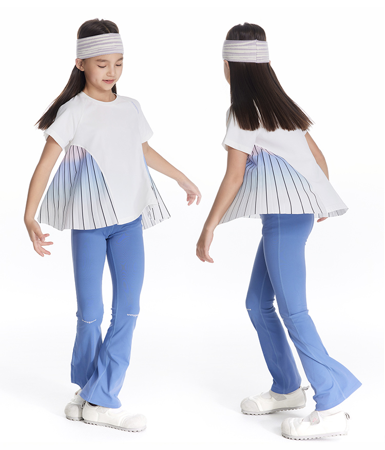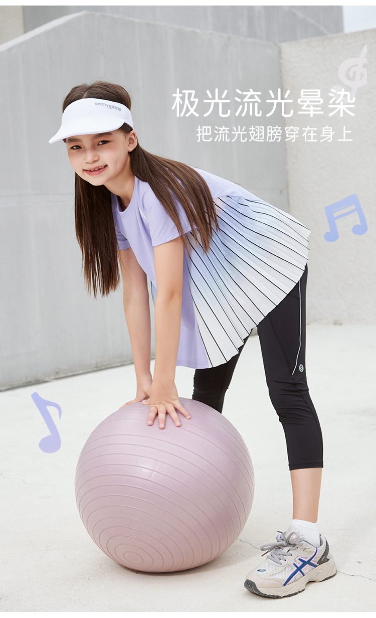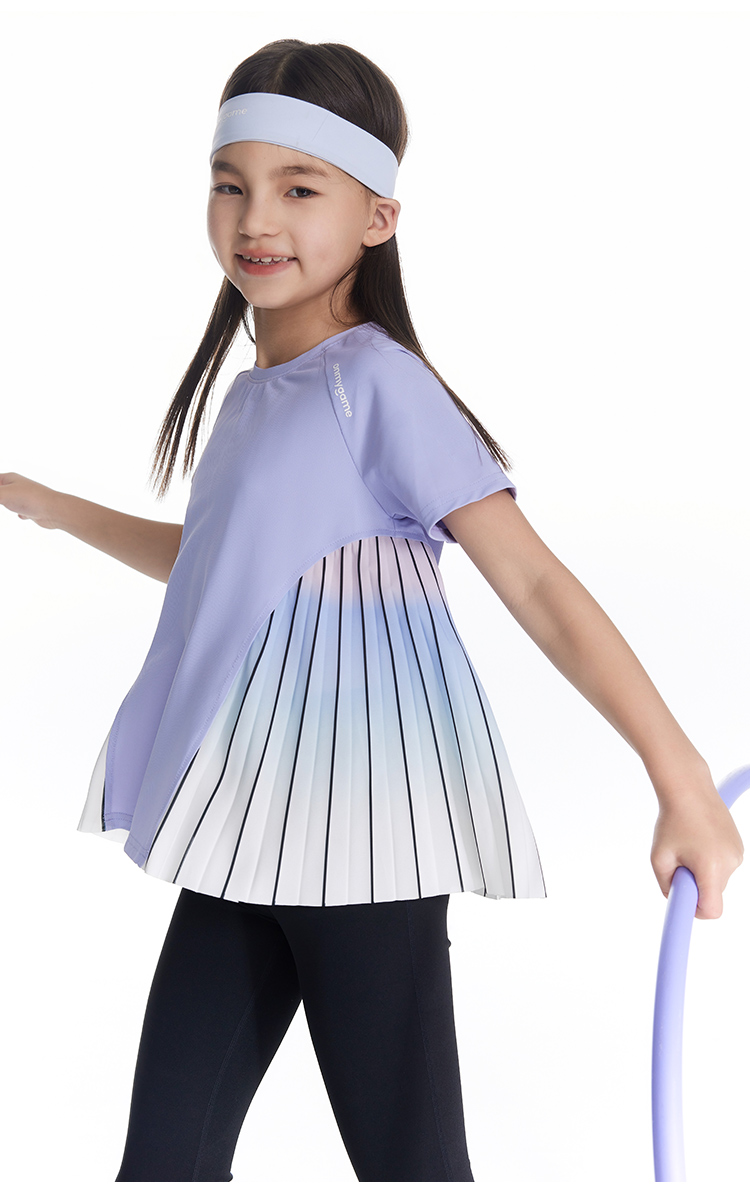 onmygame【轻舞风琴】女童短袖t恤儿童百褶运动上衣夏季2024新款