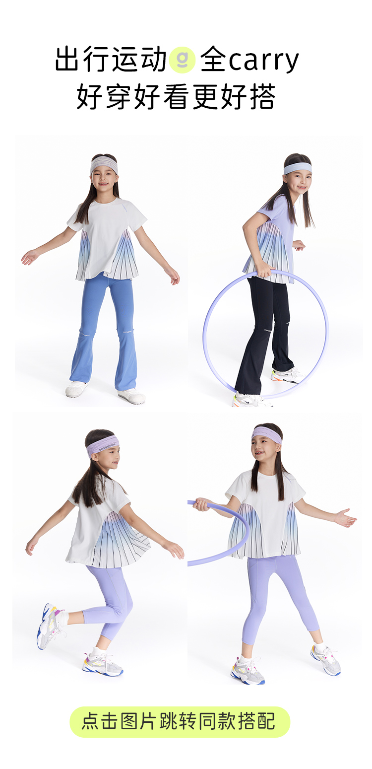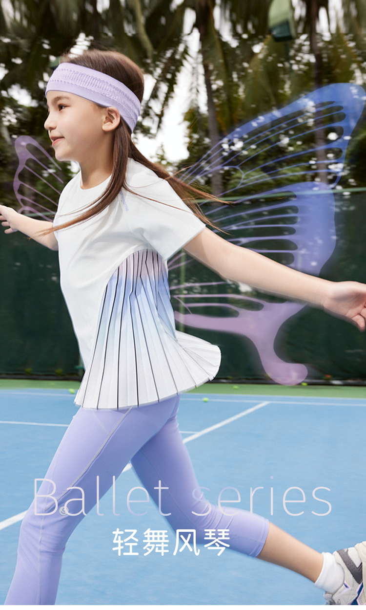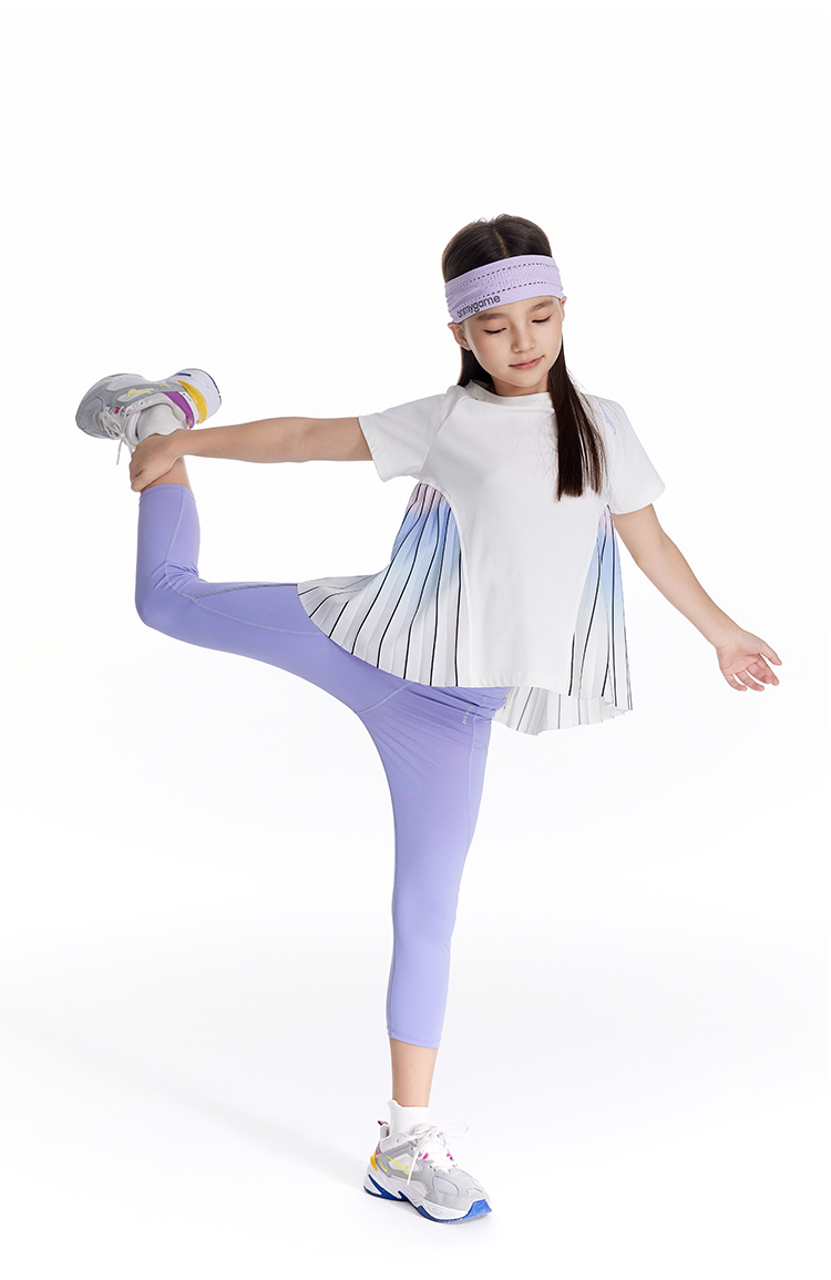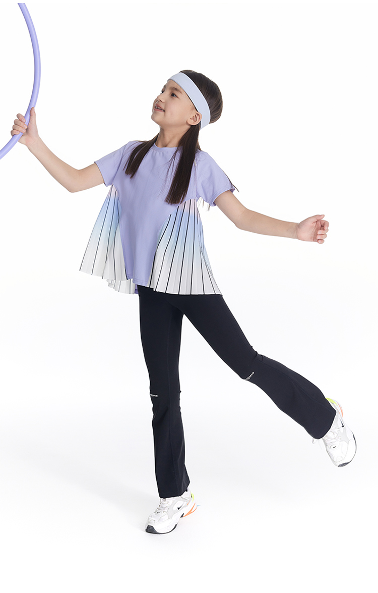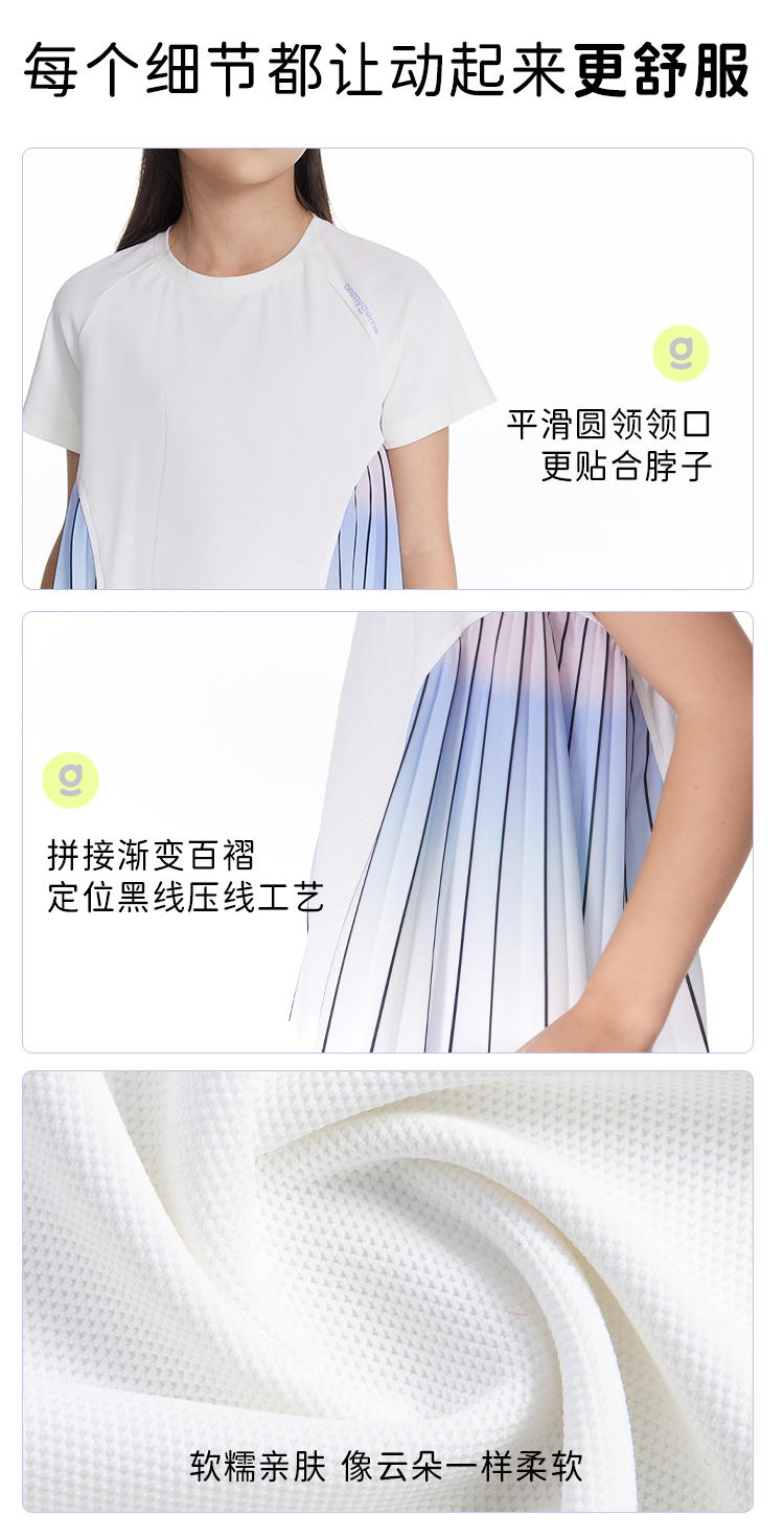onmygame【轻舞风琴】女童短袖t恤儿童百褶运动上衣夏季2024新款