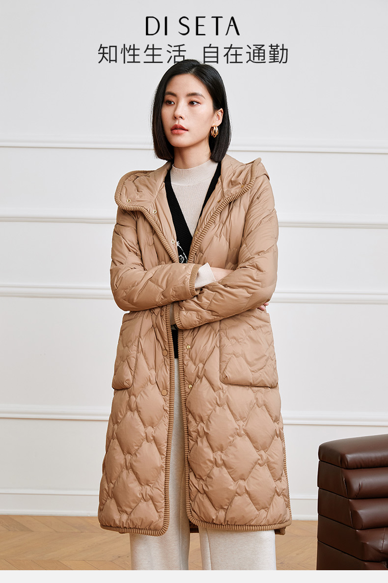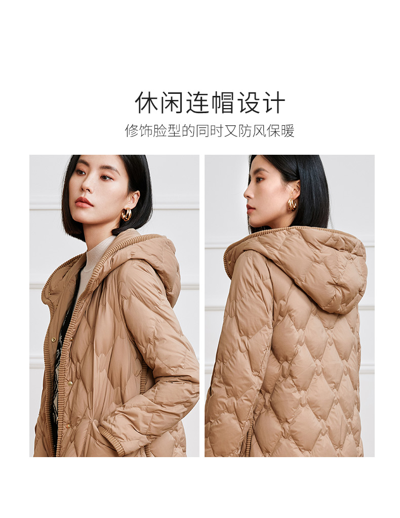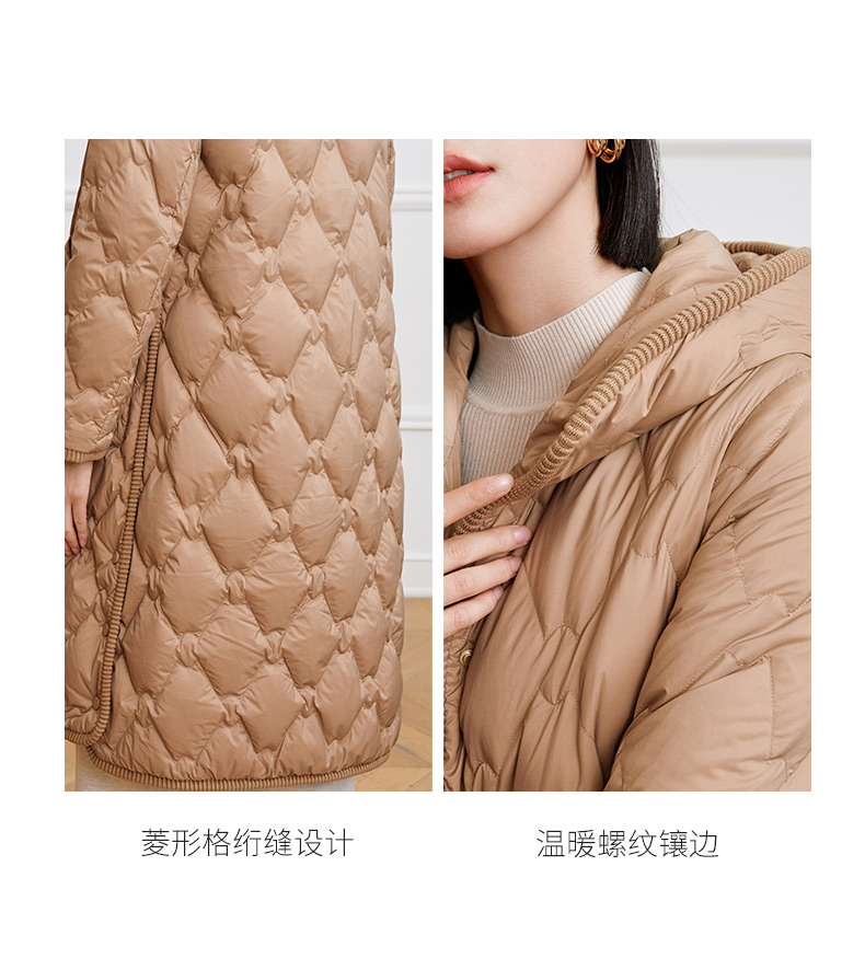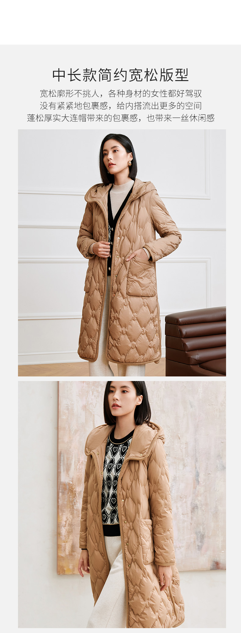 玳莎连帽轻量感羽绒服女式冬季新款休闲宽松复古中长款外套 DD41305