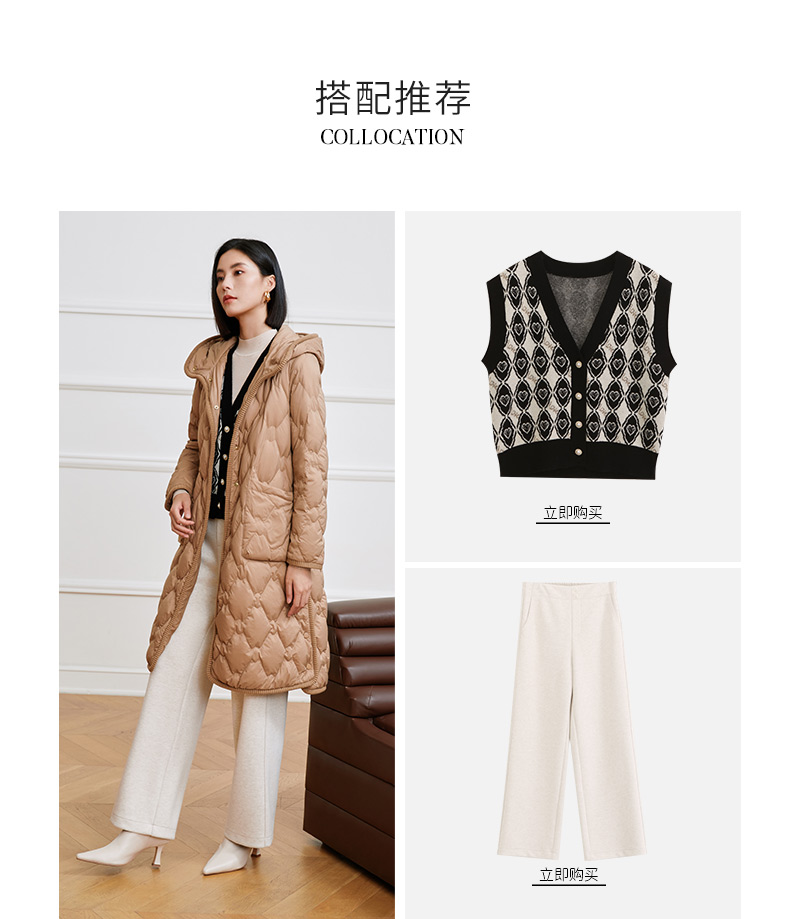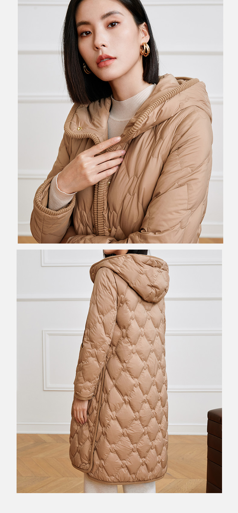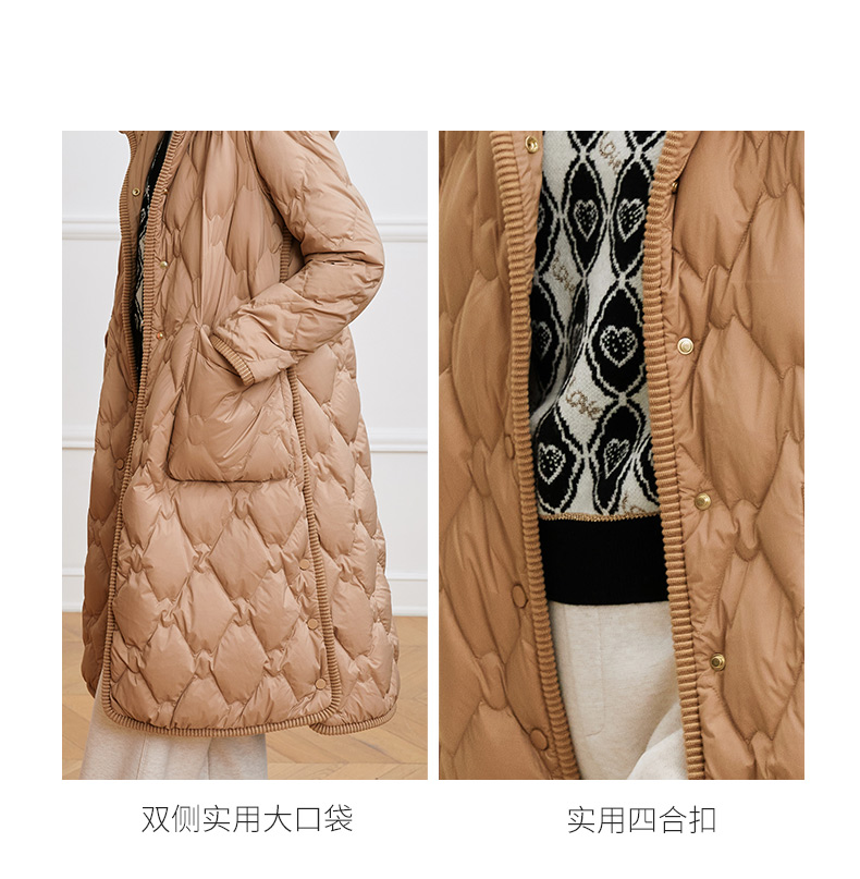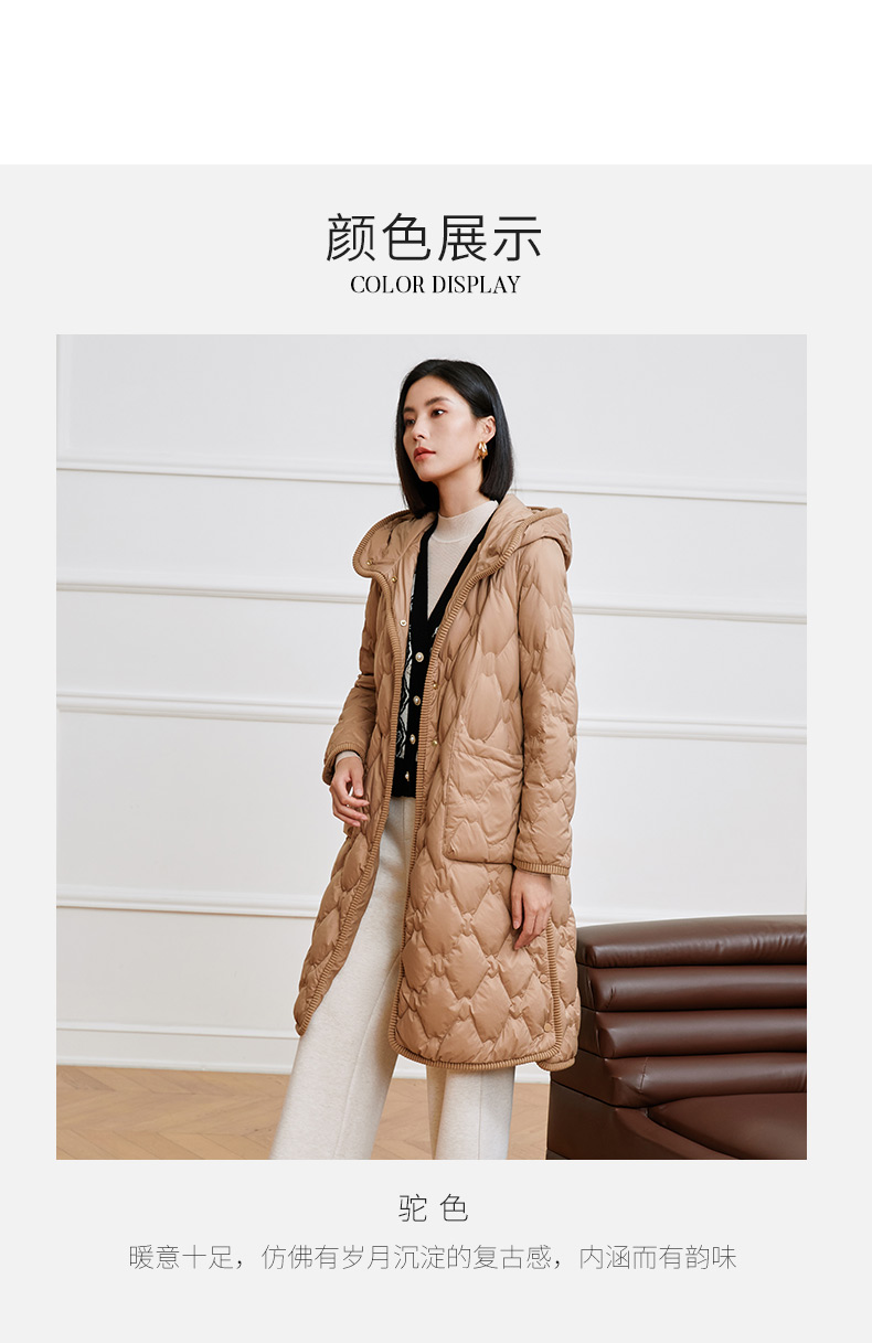 玳莎连帽轻量感羽绒服女式冬季新款休闲宽松复古中长款外套 DD41305