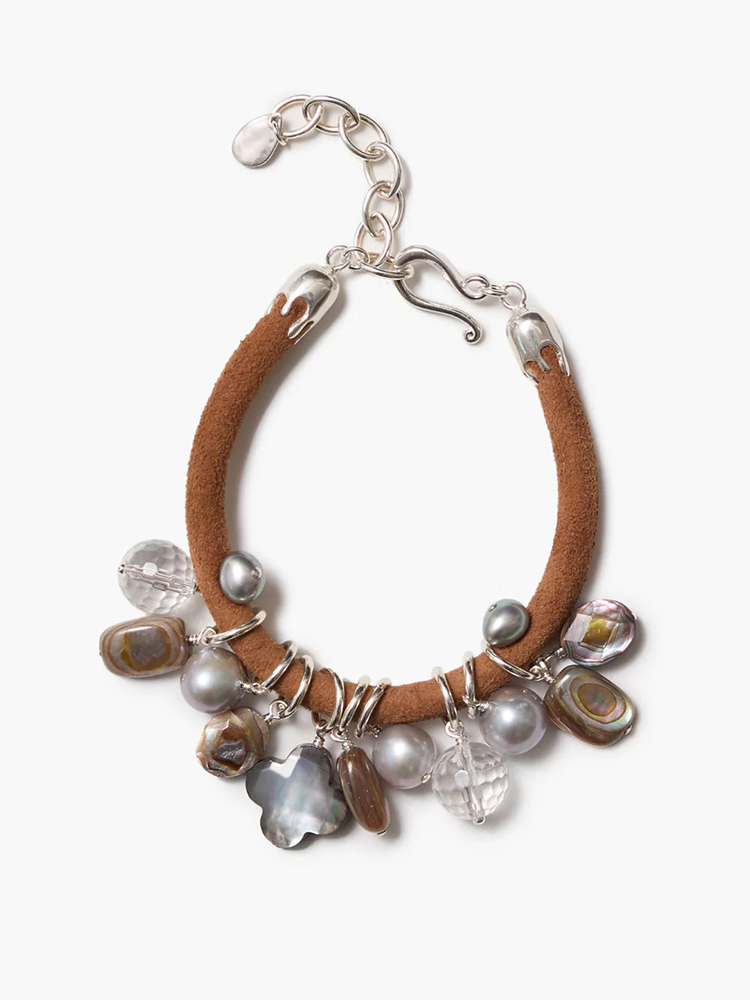 订购12周到|Chan Luu-LEA-淡水珍珠 鲍鱼贝 黑珍珠母贝 透明石英 皮革 手链[美国设计师]