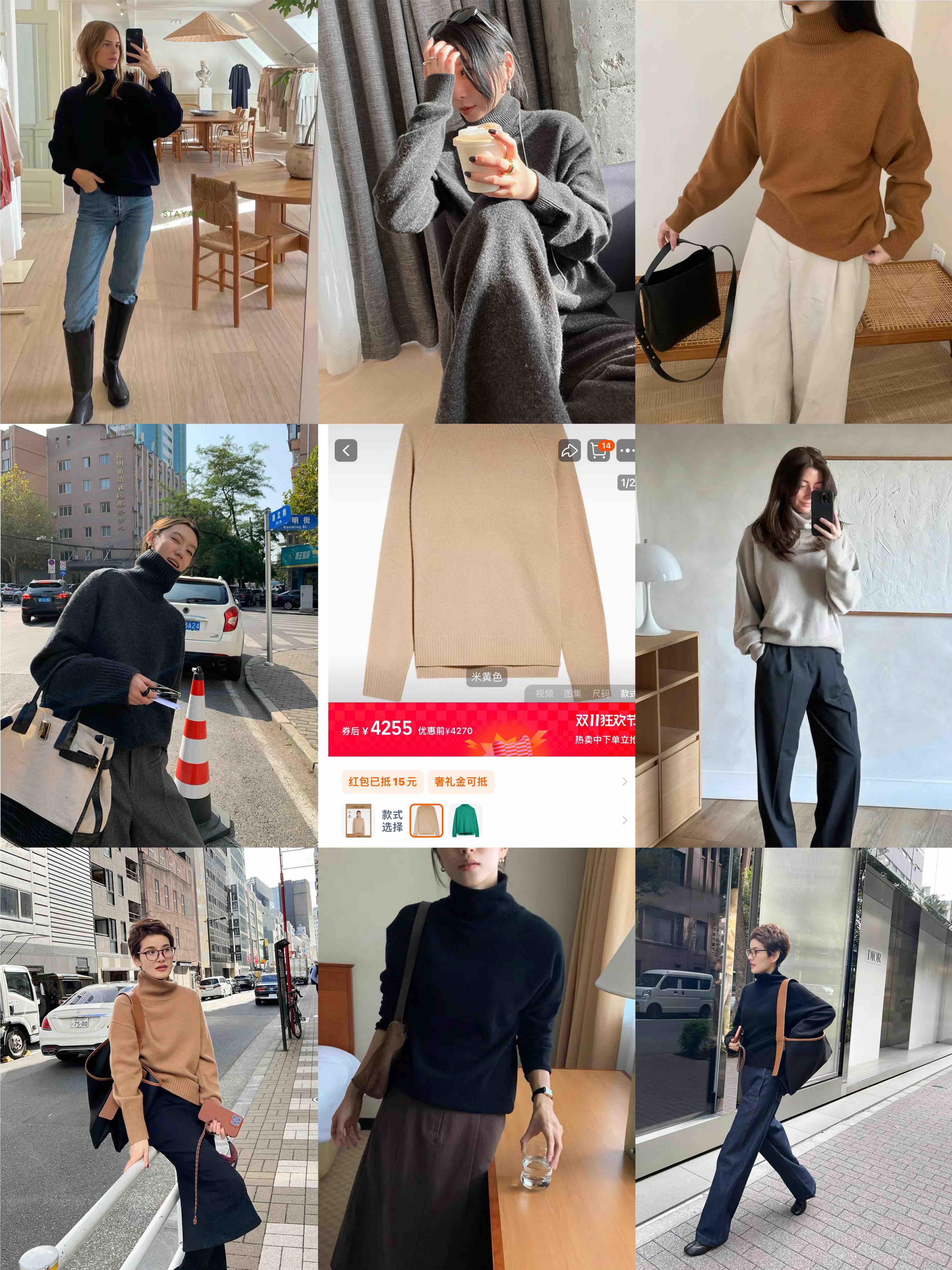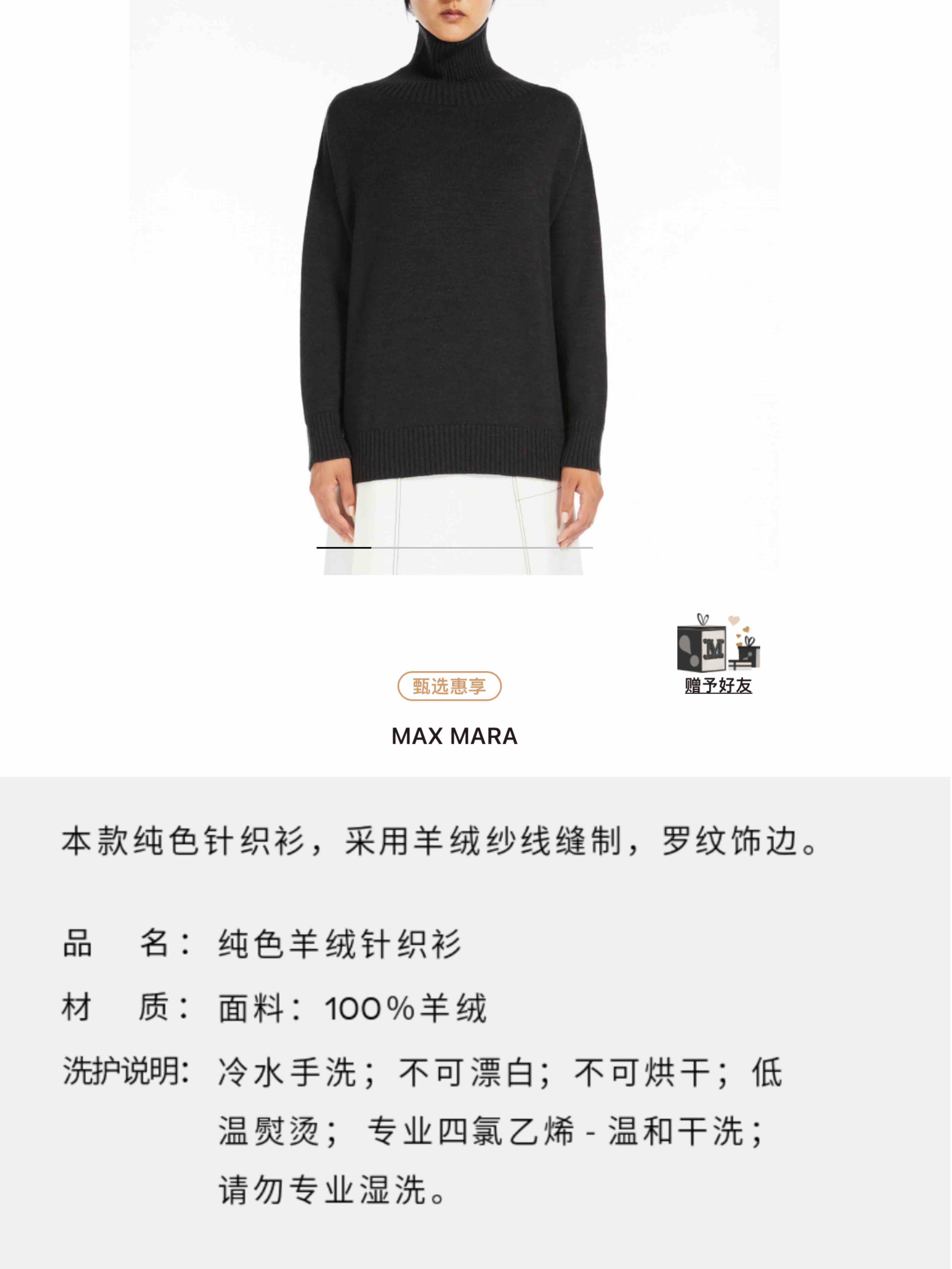 2411214 max高领 100%羊绒衫