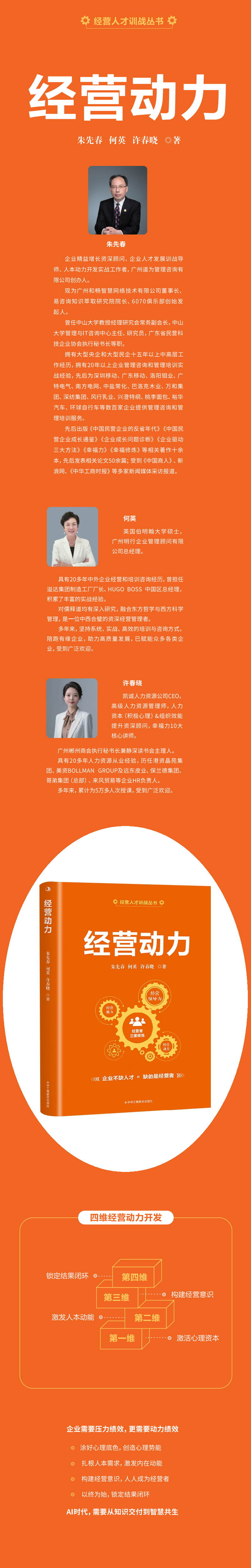 本书突破KPI管控局限,从动力绩效切入,构建四维开发模型。围绕激活心理资本、激发人本动能、构建七大经营意识、锁定VUCA时代结果闭环展开,提供从心理到组织的全链路方法,助力企业实现从;做事到;成事的认知革命,是经营动力升级的实用指南。