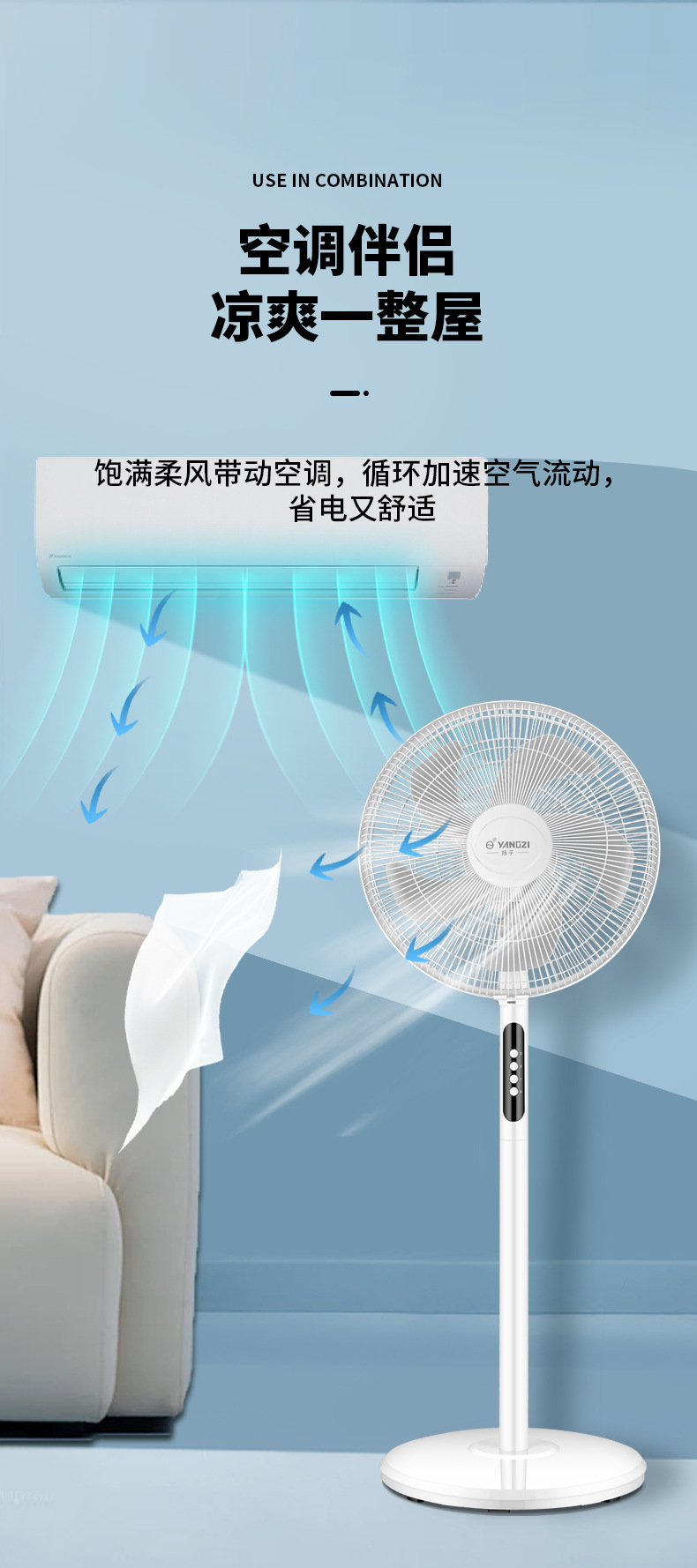 【仿生羽翼 清凉安静不扰睡】扬子新款电风扇台地式落地扇遥控立式电扇家用静音办公室摇头风扇