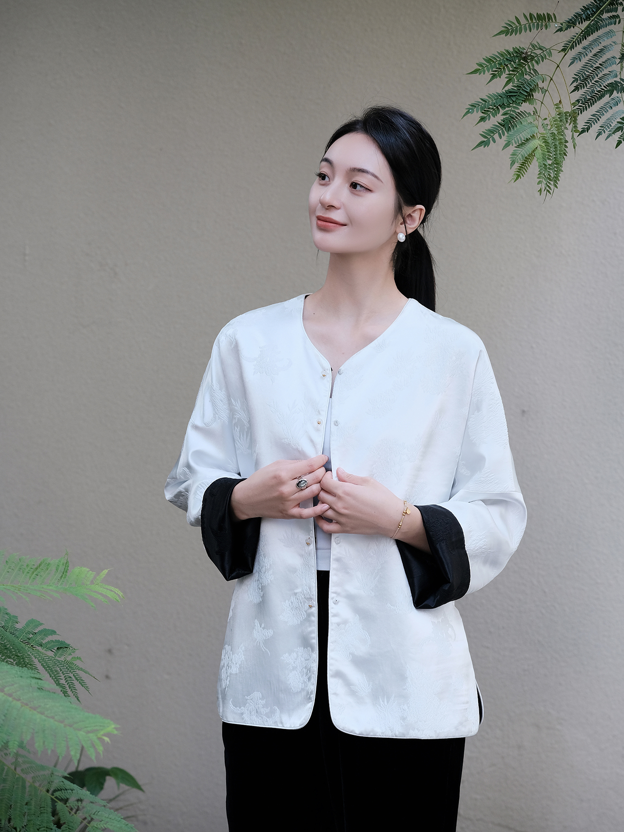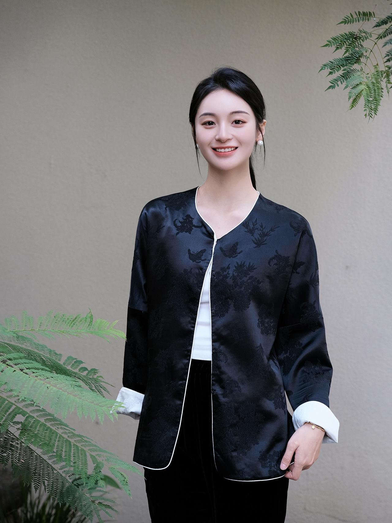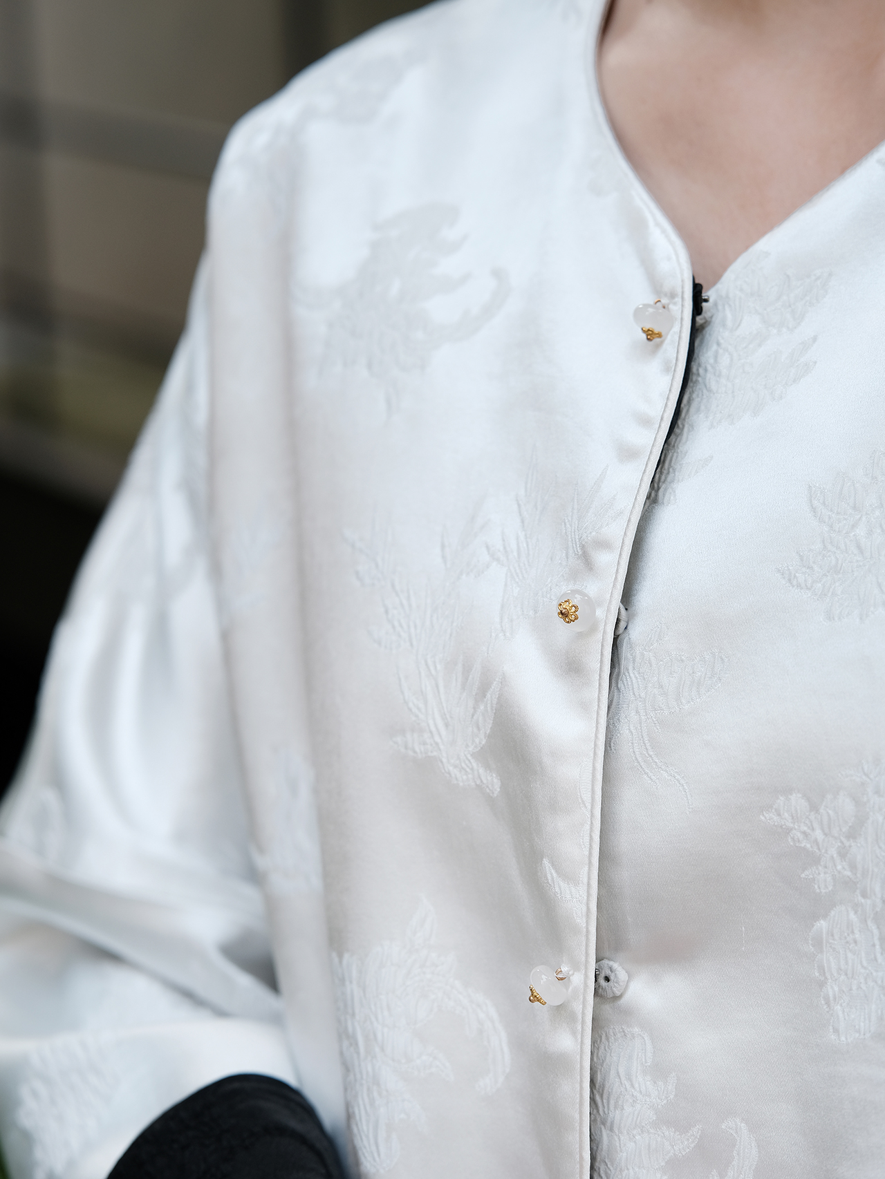 盛唐牡丹 |真丝提花梅兰竹菊偏襟上衣