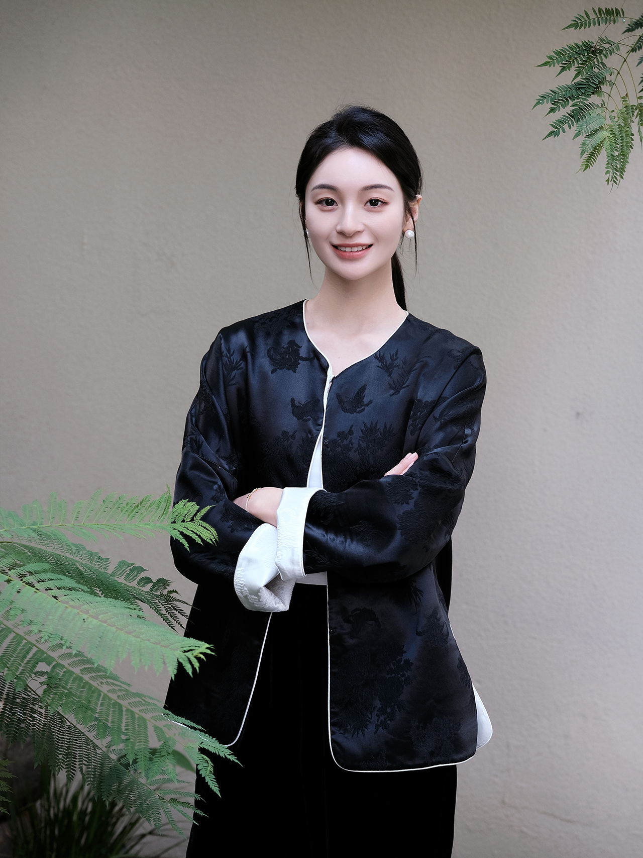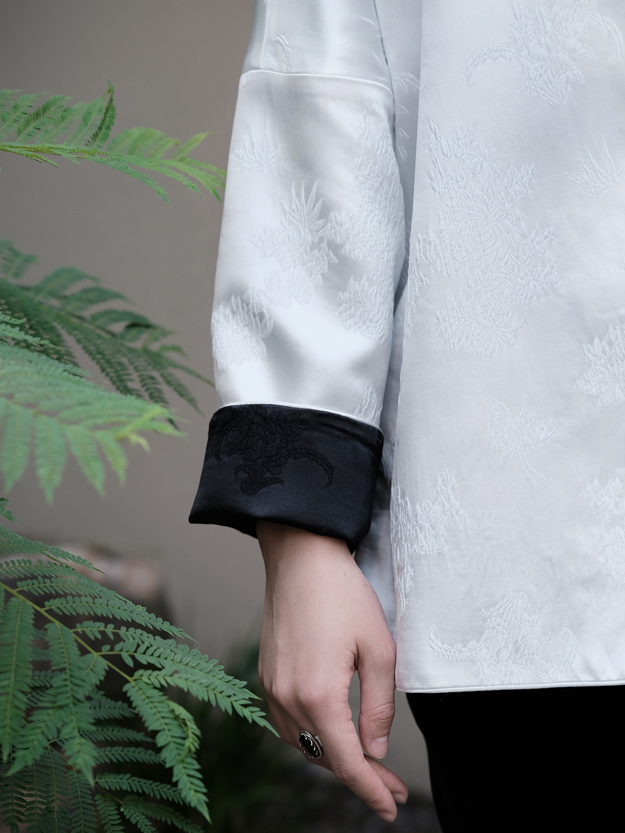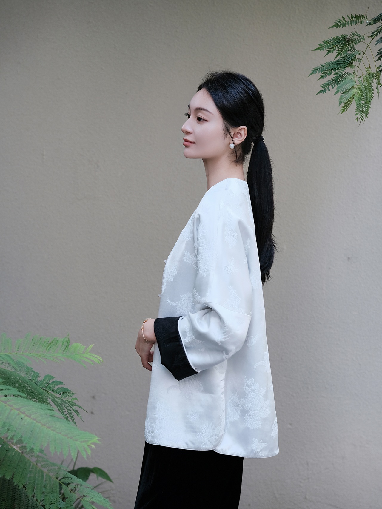 盛唐牡丹 |真丝提花梅兰竹菊偏襟上衣