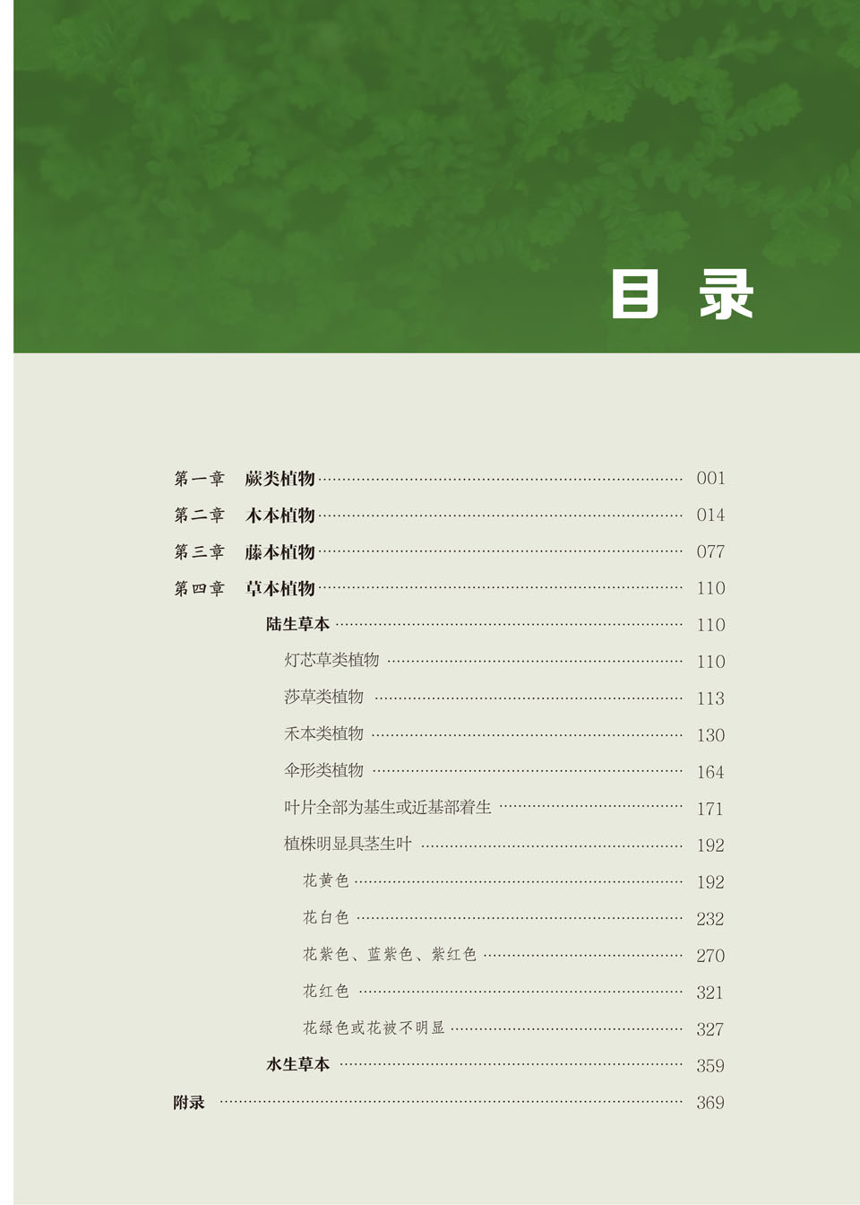本书主要参考《中国植物志》《中国高等植物》《中国高等植物图鉴》《山东植物志》《山东植物精要》《中国常见植物野外识别手册》和Flora of China 电子版等资料信息。为了方便读者查阅,本书按照植物的生活型分为蕨类植物、木本植物、藤本植物和草本植物四大类。将草本植物按照水生与陆生分开,书中的水生植物是指完全生长在水中的植物,而将生长在水边或者潮湿处的草本归类于陆生草本中。还将陆生草本按照特征进行细分,详细情况请参考目录。