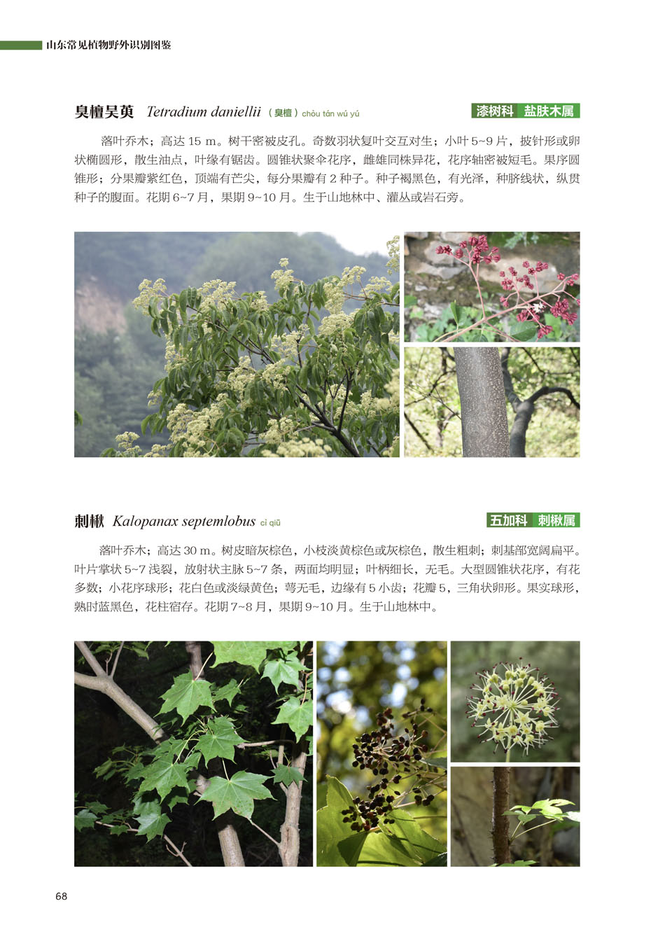在编纂体例上,我们秉持“科学性与实用性并重”的原则,对茎枝、叶片、花序、果实等部位的关键识别标志进行描述,方便读者快速锁定鉴别要点,每物种配以2~3 张具有显著识别特征的高清全彩图片,使读者能够更加精准地把握每个物种的识别要领,力求在学术准确性与视觉直观性之间达成精妙平衡。