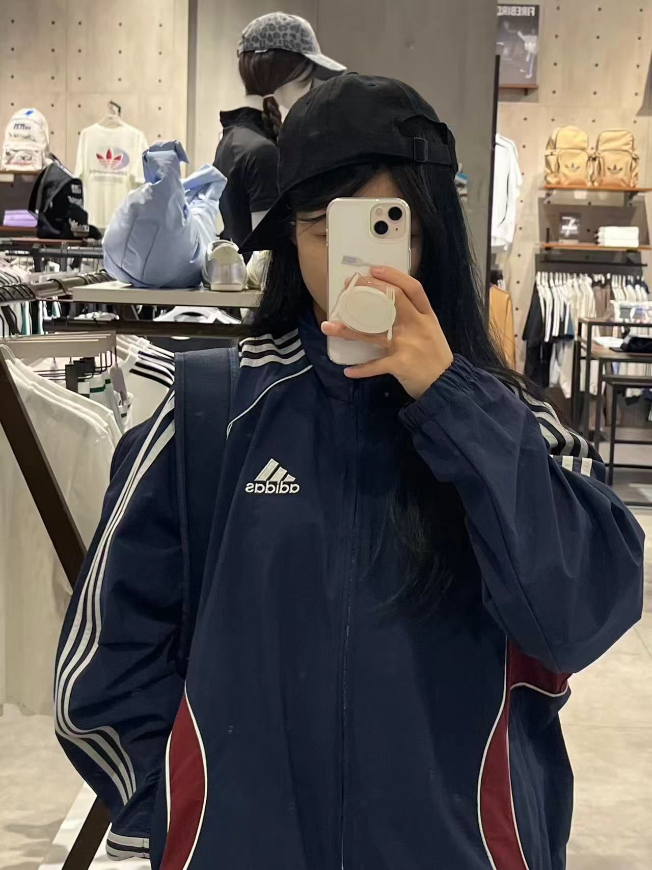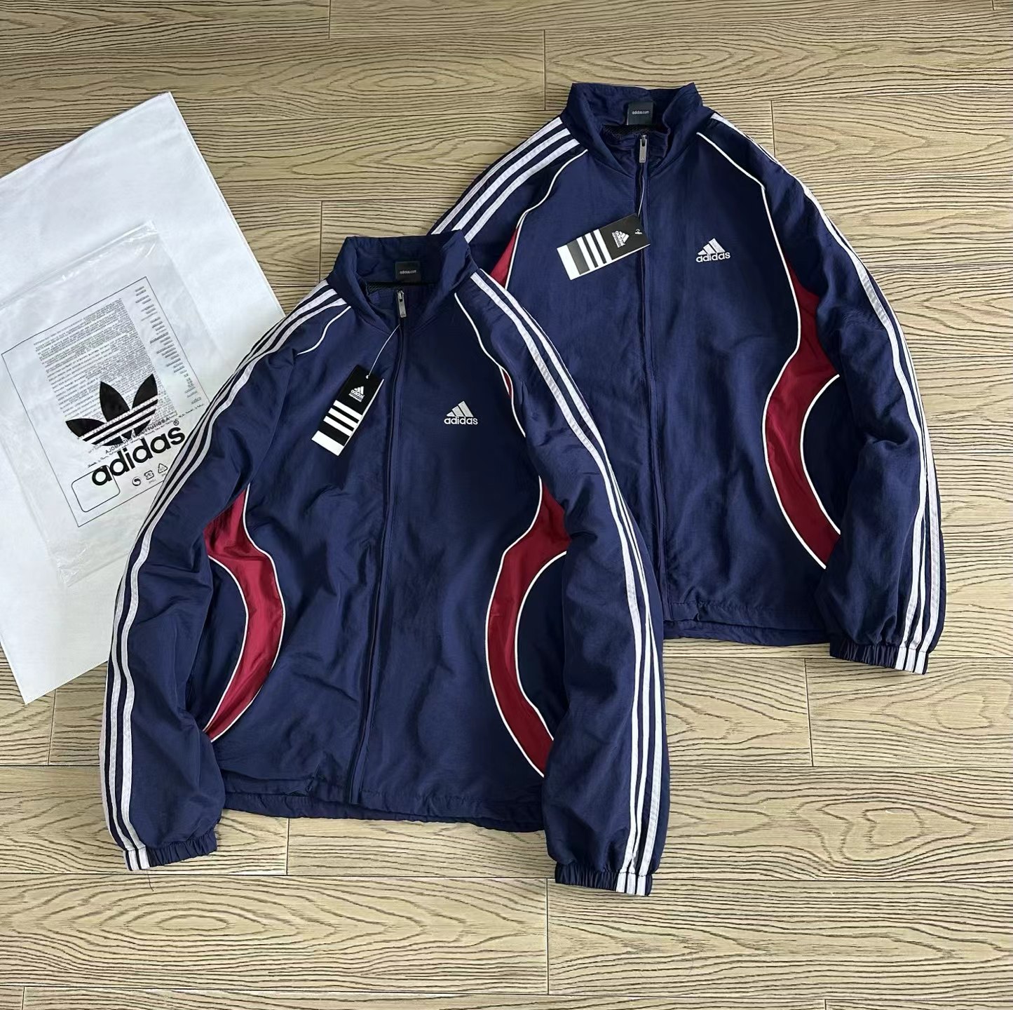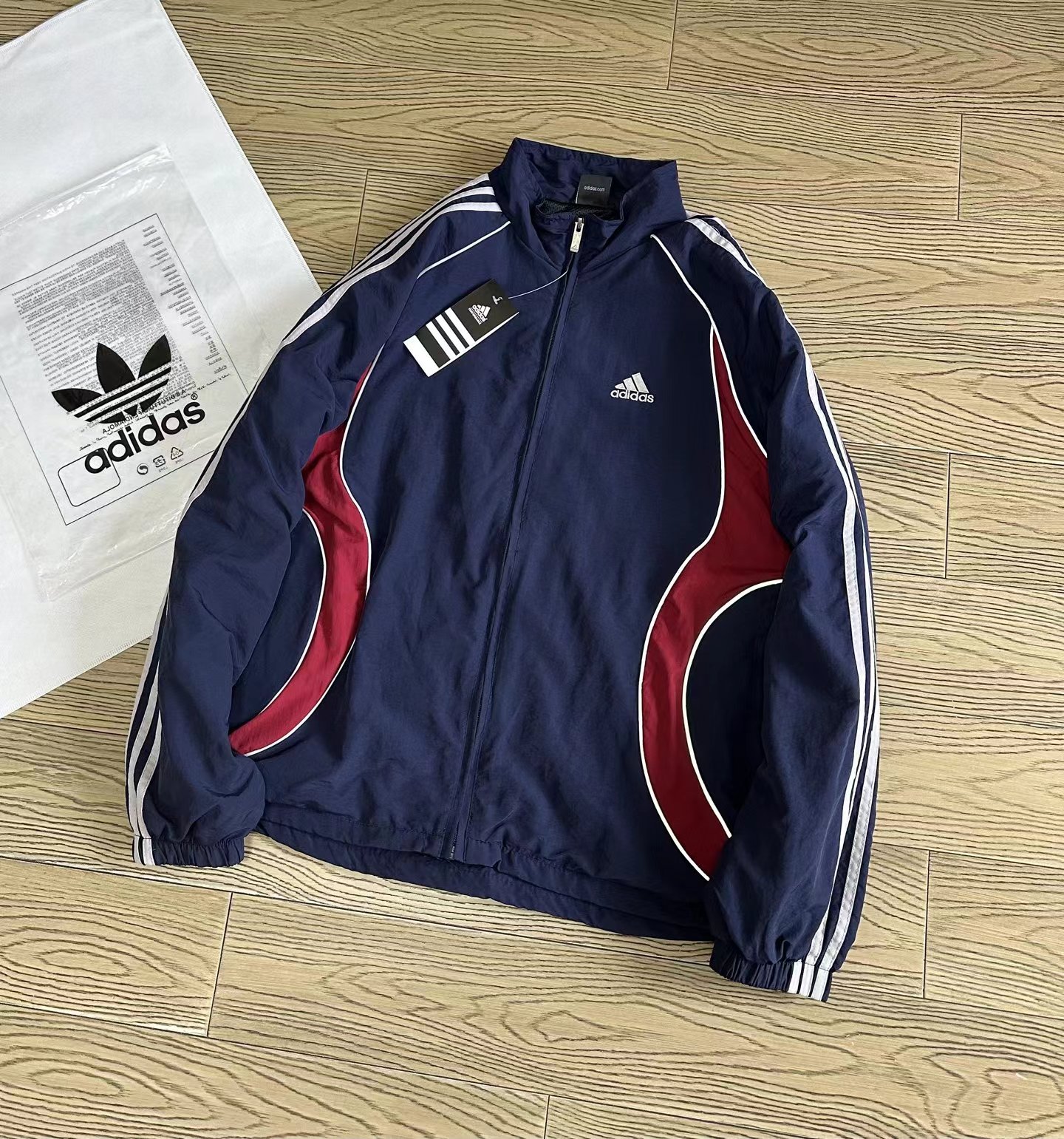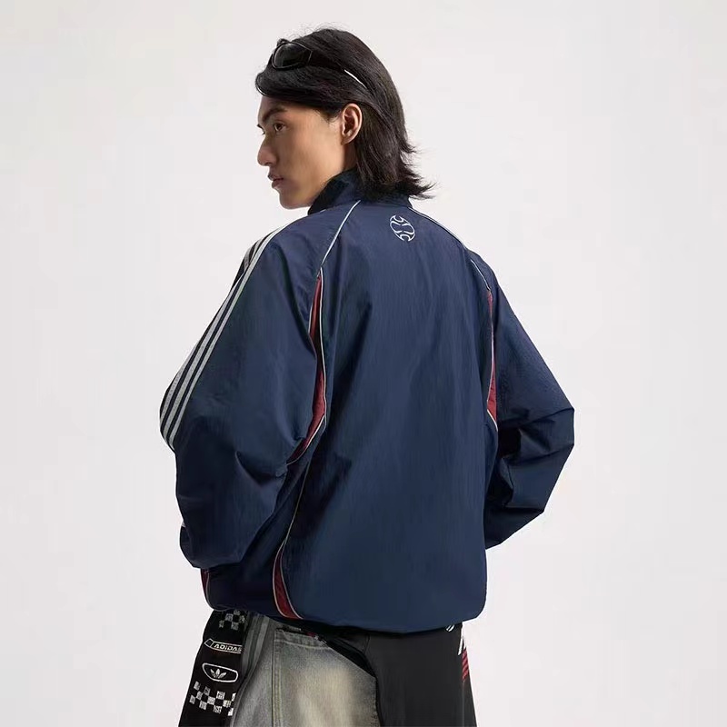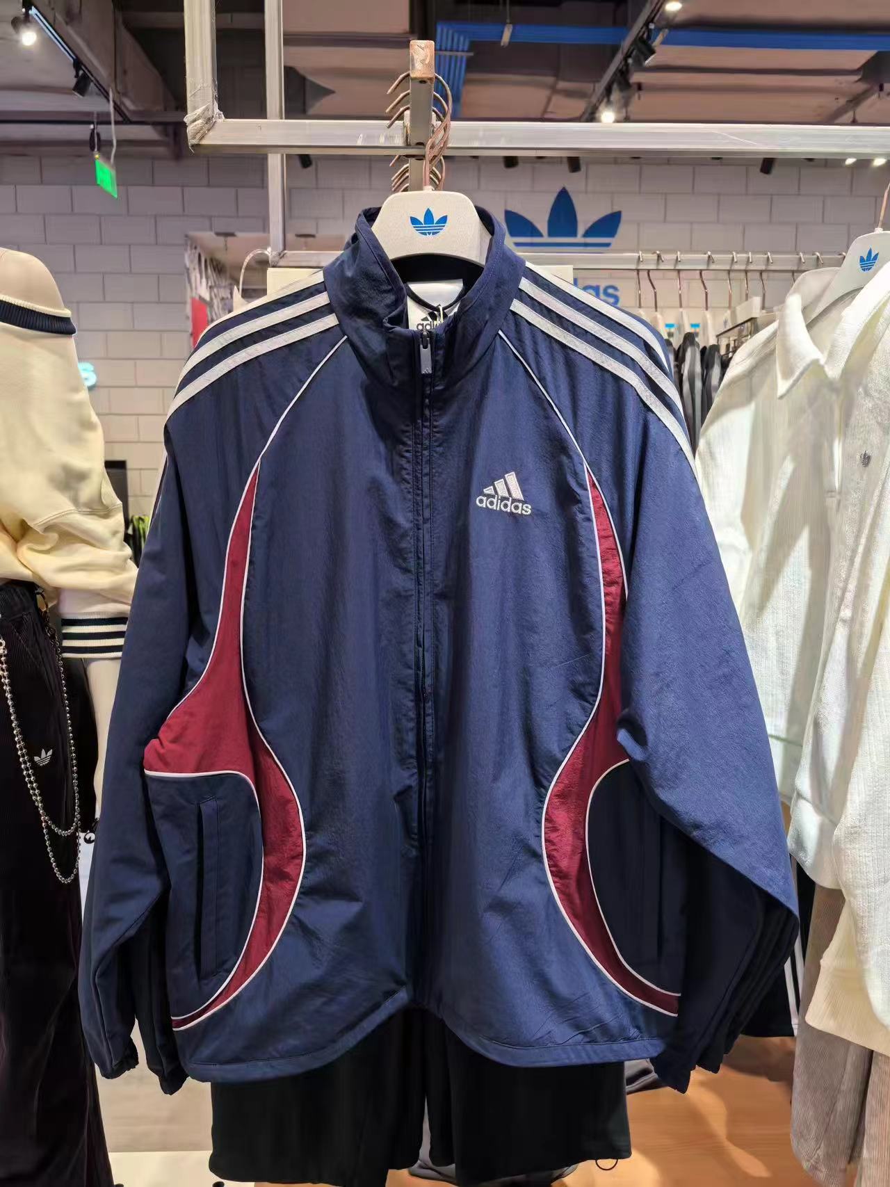 藏蓝外套,美式复古那味拉满啦!一眼锁定这件藏蓝外套!jing典三条杠+侧边酒红撞色!阿迪复古拼色外套把90年代街头感焊在身上!藏青底色配上酒红弧形拼接,再加上标志性的三条杠,复古感直接拉满。面料轻薄透气,春秋单穿刚刚好,立领干净利落!版型宽松不挑身材,藏青拼色低调又耐看!春秋通勤、跑步遛弯都能穿的外套来啦~版型超藏肉,肩宽背厚、有小肚腩都能遮。面料轻薄不闷汗,还能防风,立领+抽绳超实用。