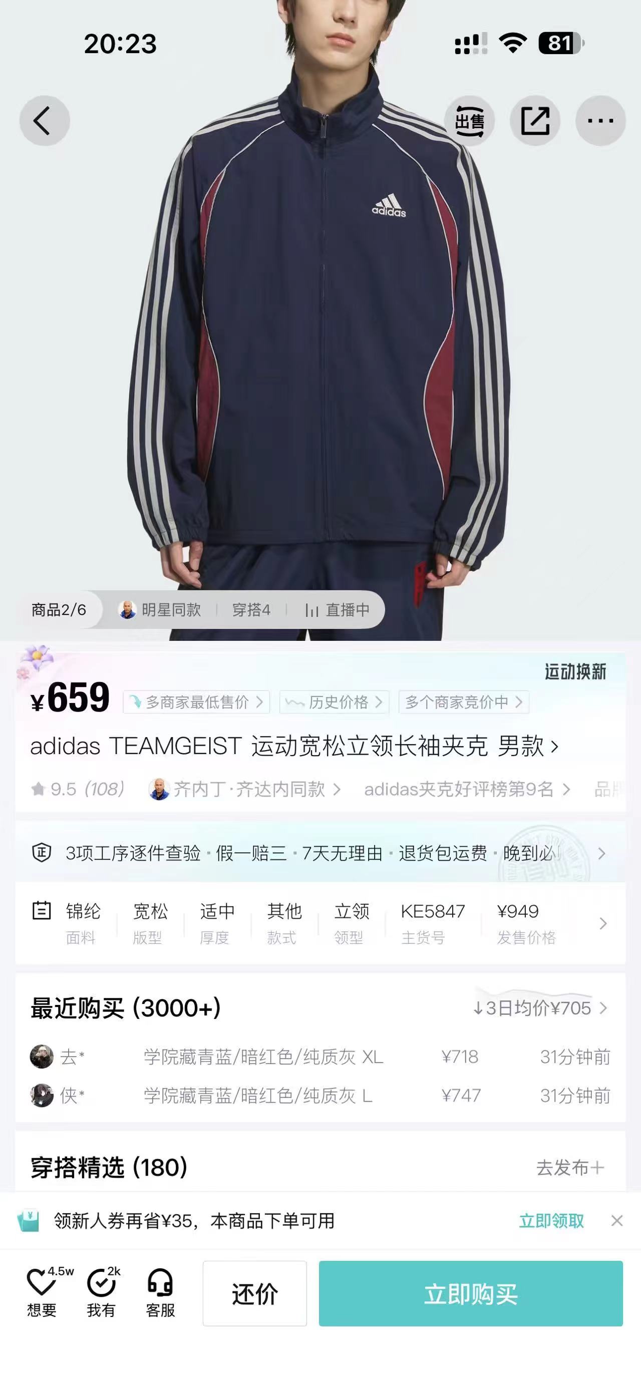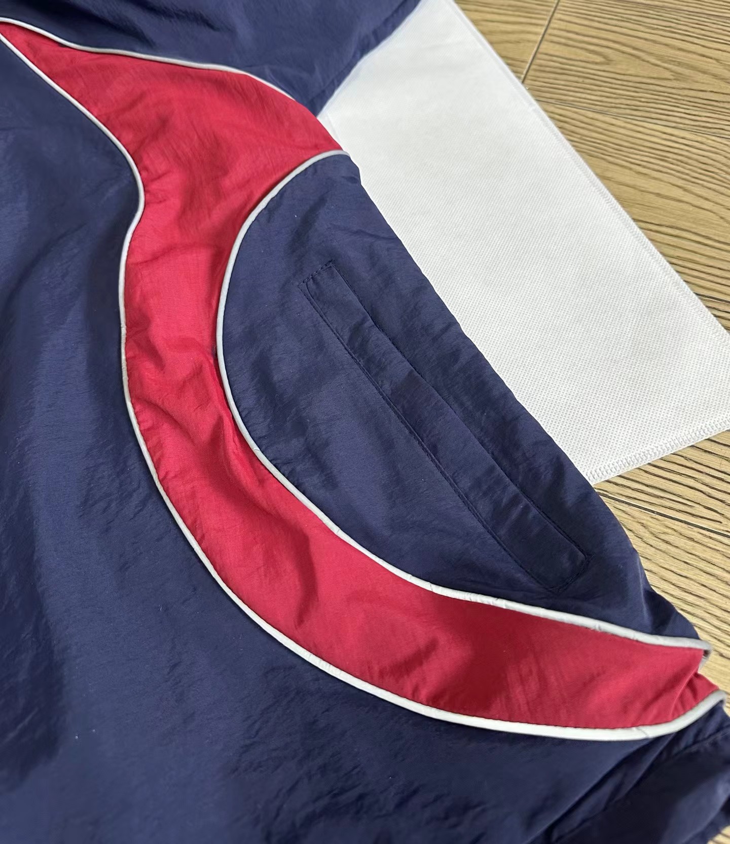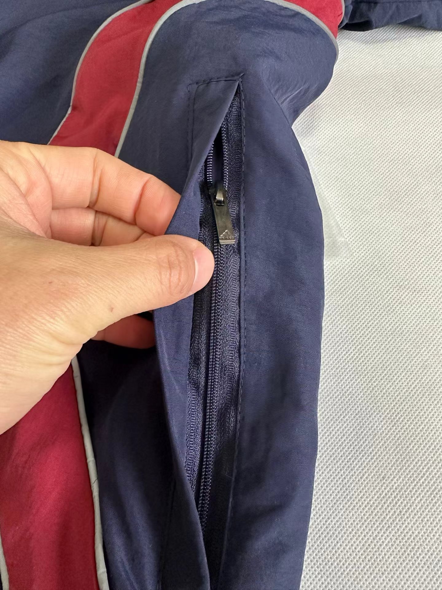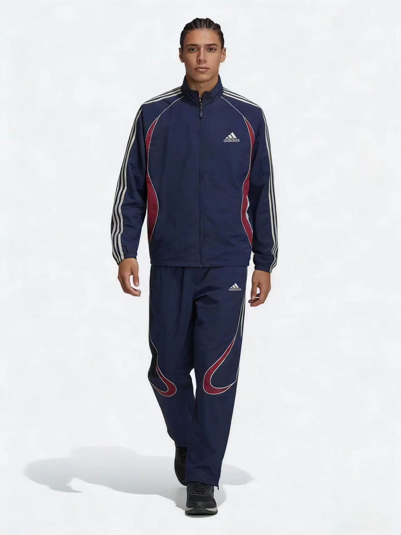 藏蓝外套,美式复古那味拉满啦!一眼锁定这件藏蓝外套!jing典三条杠+侧边酒红撞色!阿迪复古拼色外套把90年代街头感焊在身上!藏青底色配上酒红弧形拼接,再加上标志性的三条杠,复古感直接拉满。面料轻薄透气,春秋单穿刚刚好,立领干净利落!版型宽松不挑身材,藏青拼色低调又耐看!春秋通勤、跑步遛弯都能穿的外套来啦~版型超藏肉,肩宽背厚、有小肚腩都能遮。面料轻薄不闷汗,还能防风,立领+抽绳超实用。