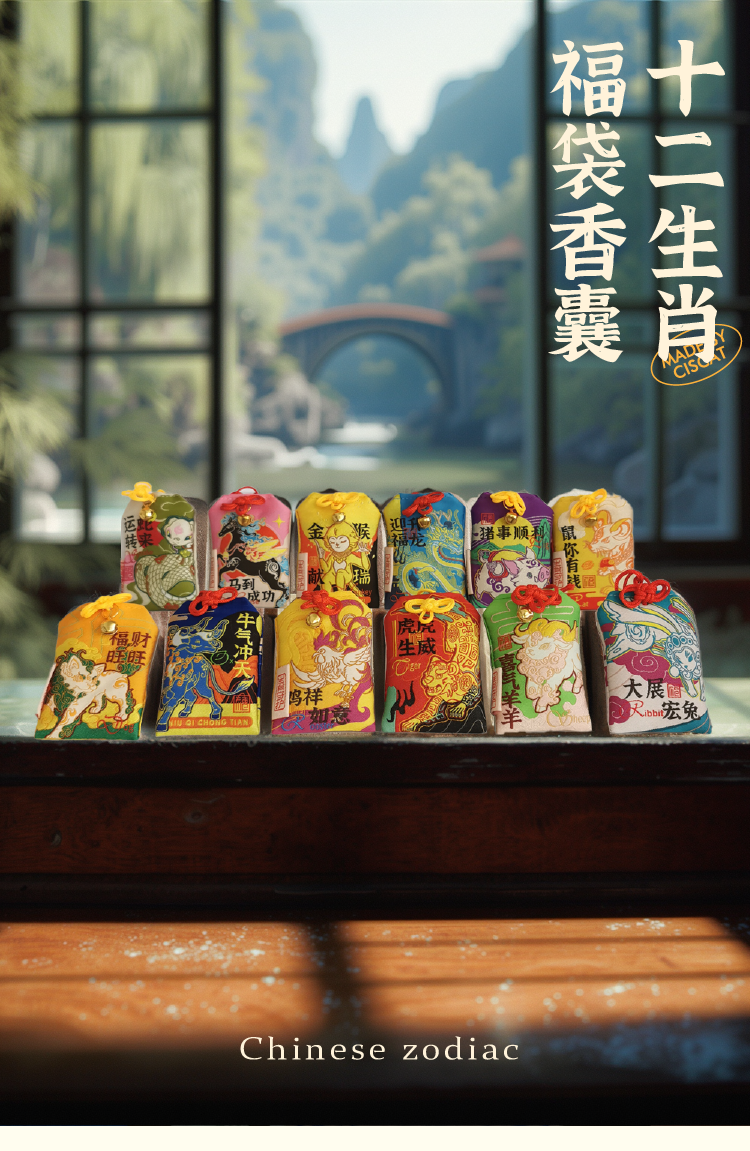杭州西湖灵隐启福十二生肖系列福袋新品礼物包挂件