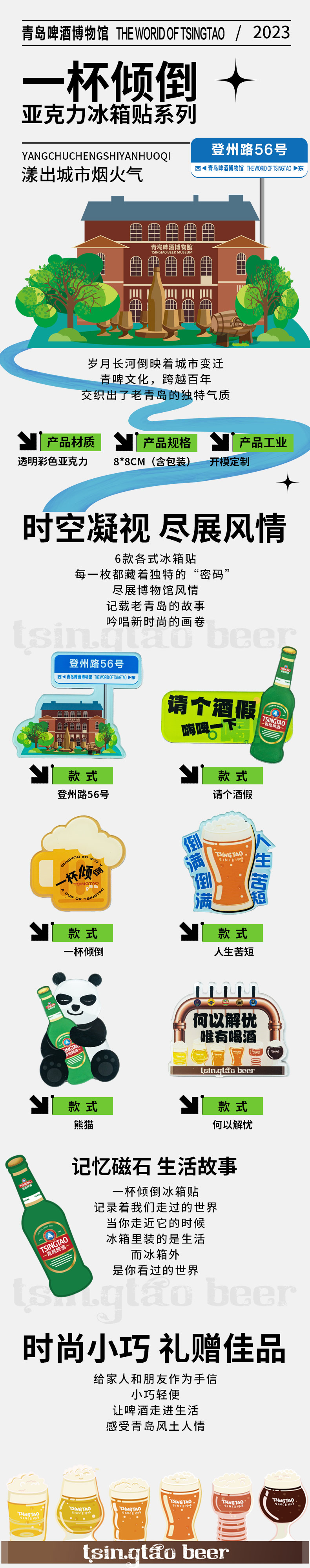 【青岛啤酒博物馆】一杯倾倒城市亚克力冰箱贴系列 青岛啤酒 官方文创