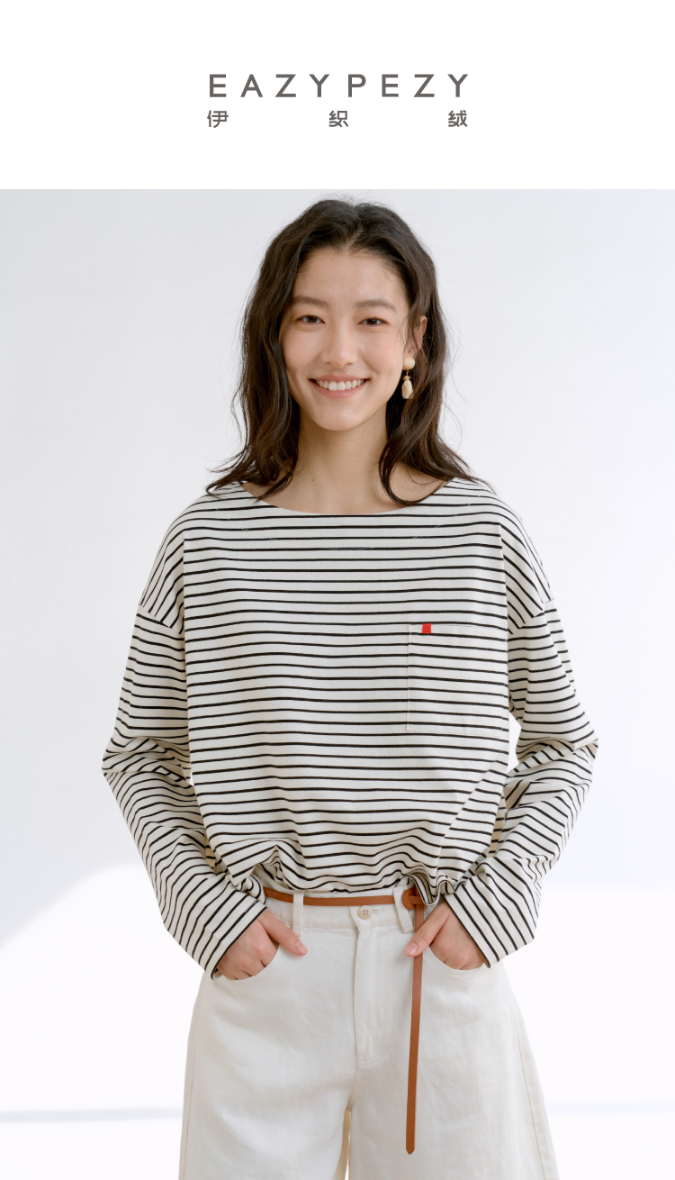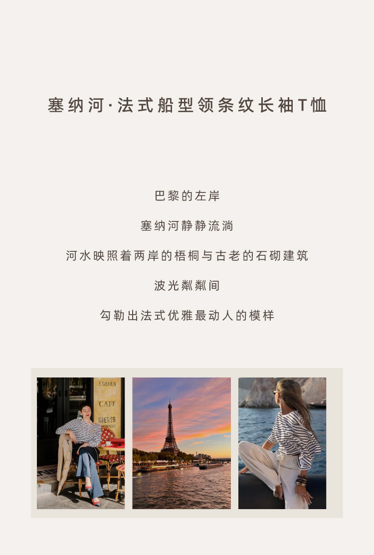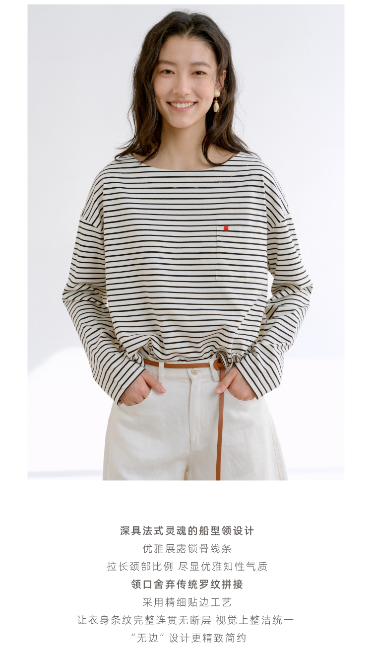 塞纳河·法式船型领条纹长袖T恤