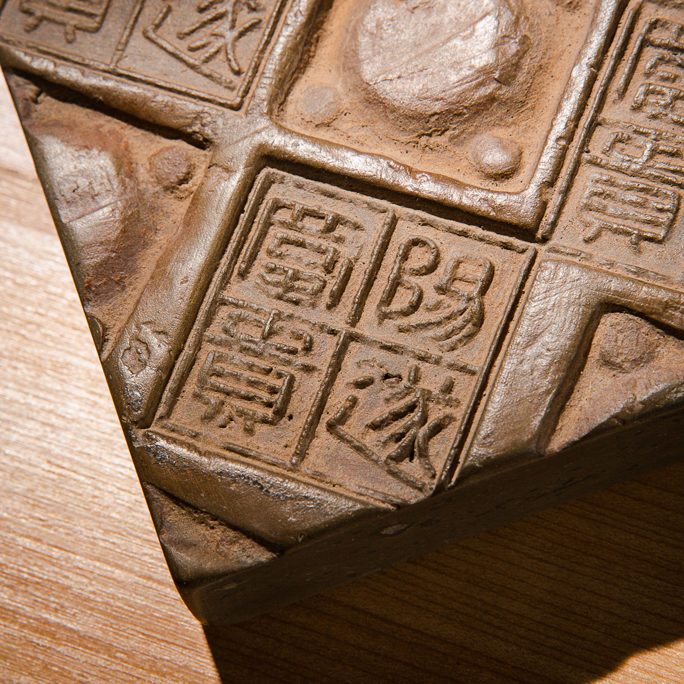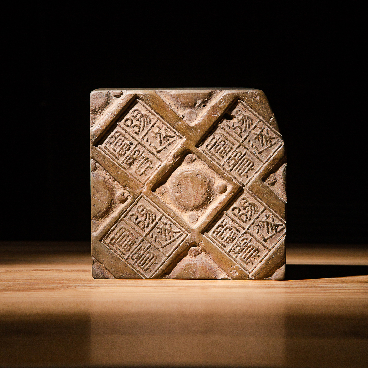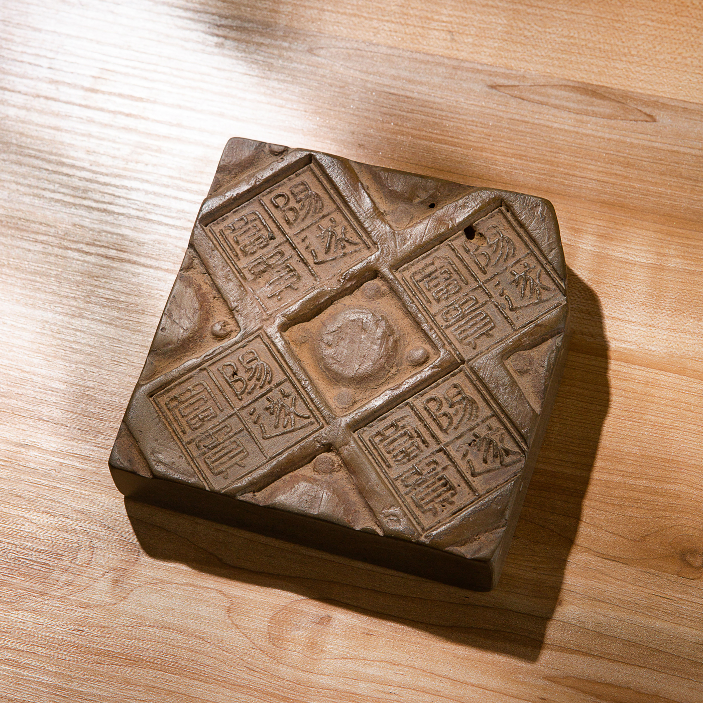 “阳遂富贵”古砖制砚。砖上铭文精美古朴,字口清晰。砚膛胎质细腻,下发墨极佳。此砖极稀有,用此砖制砚极为珍贵。