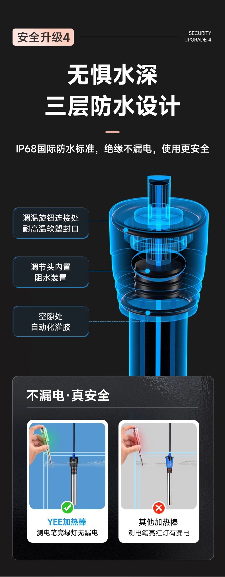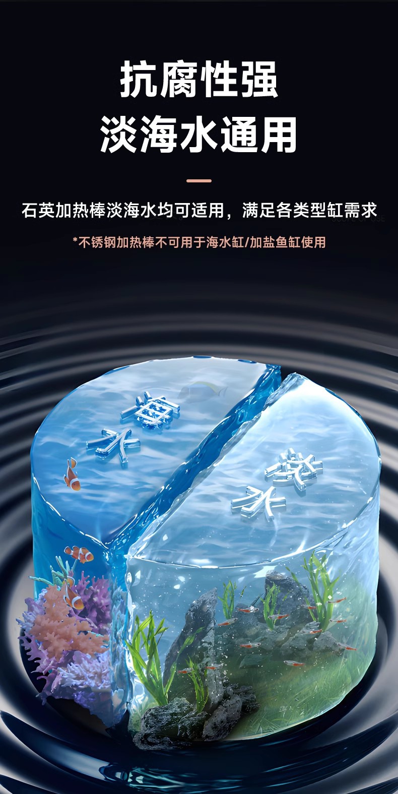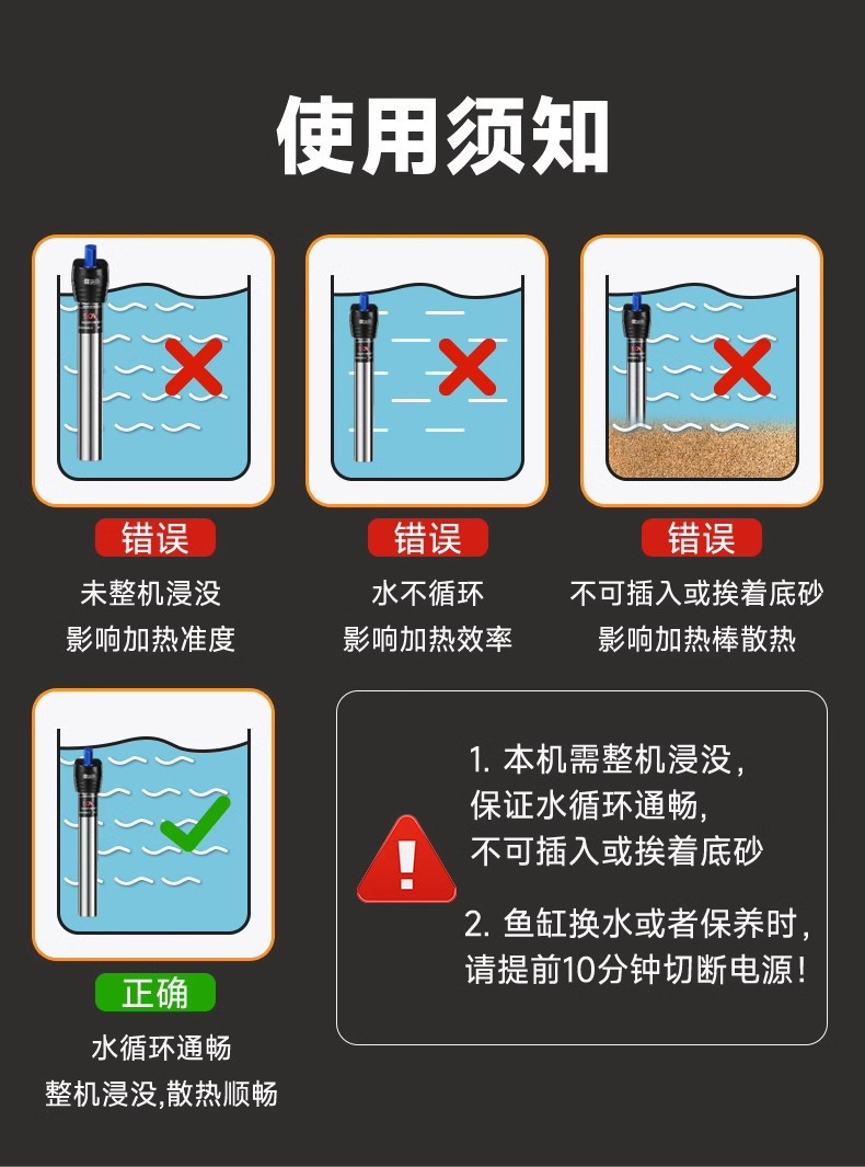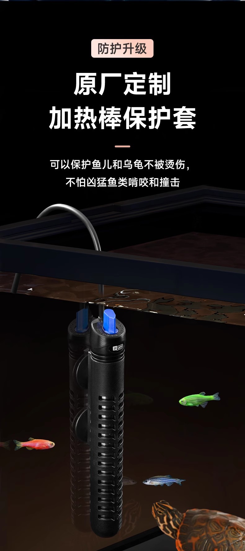 严选【100W特硬石英防爆】YEE不锈钢自动恒温器乌龟缸水族小型加热棒1个