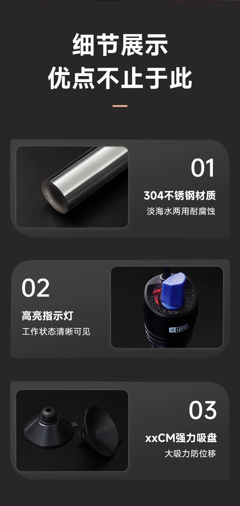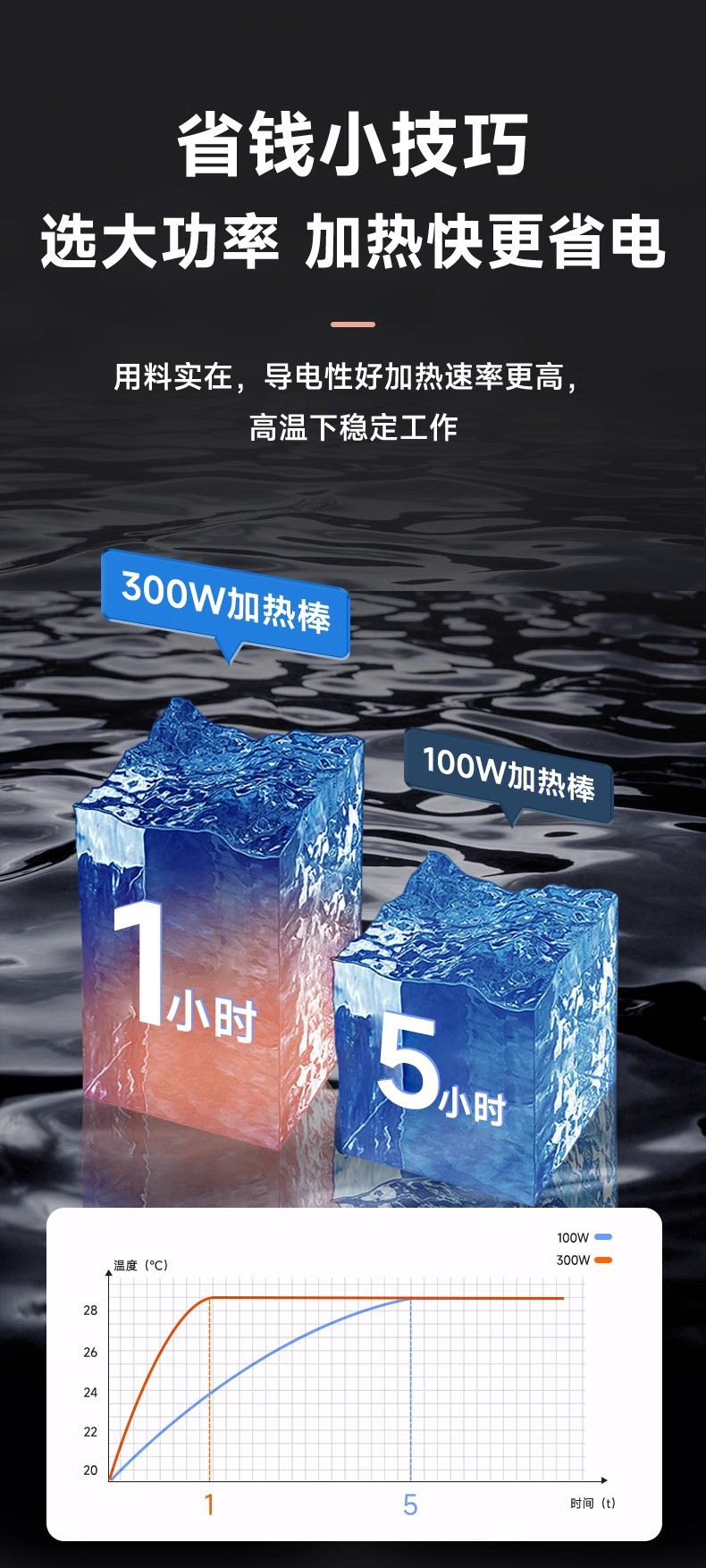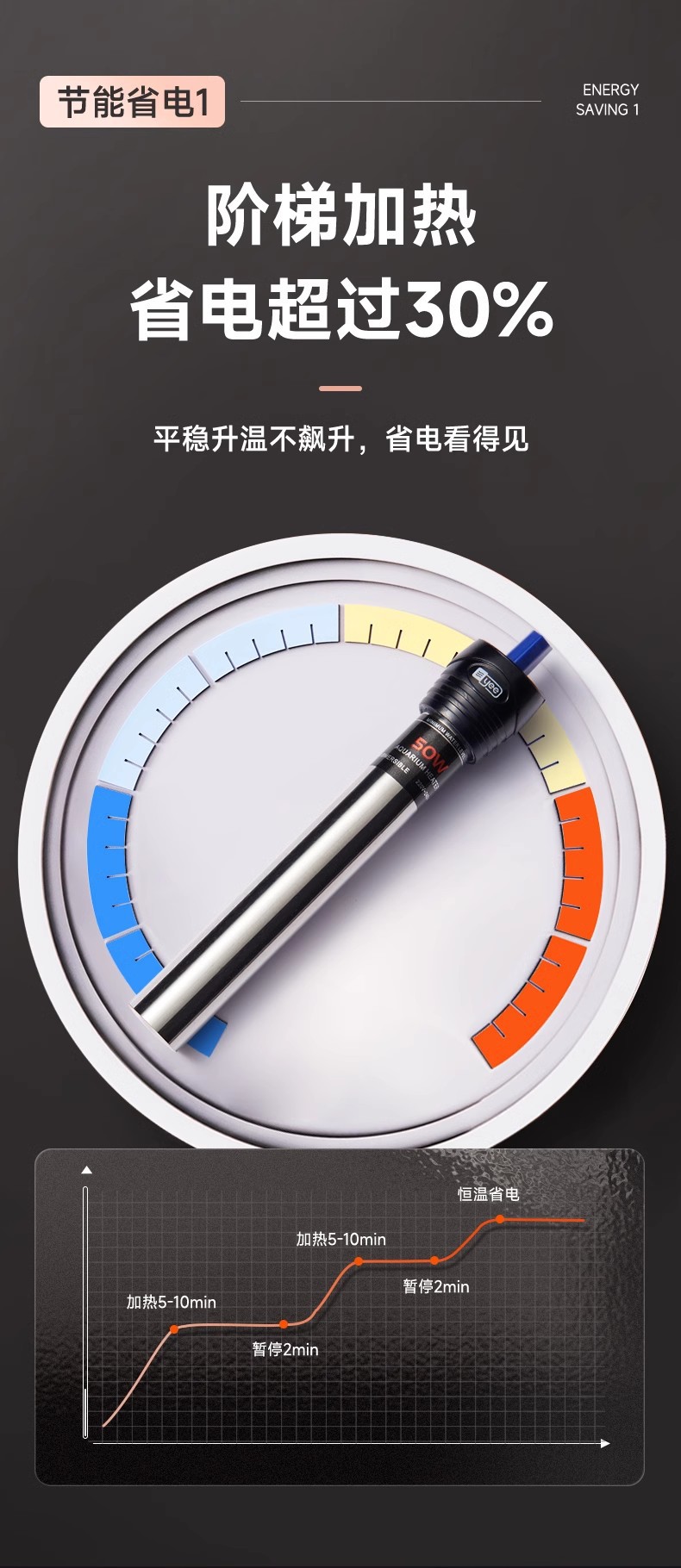 严选【100W特硬石英防爆】YEE不锈钢自动恒温器乌龟缸水族小型加热棒1个