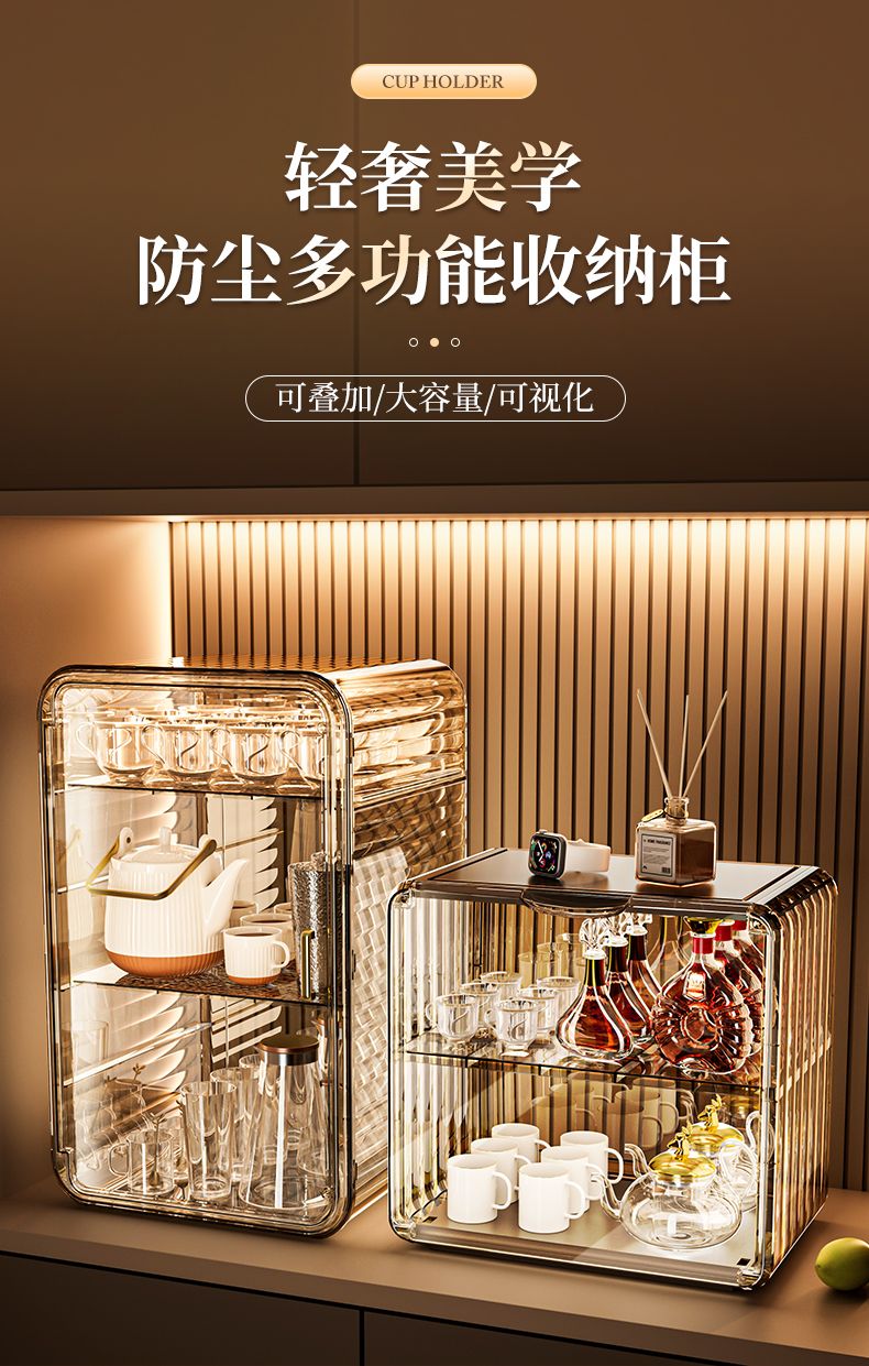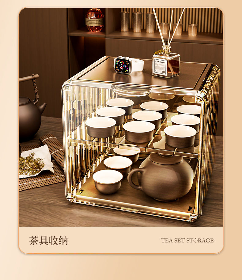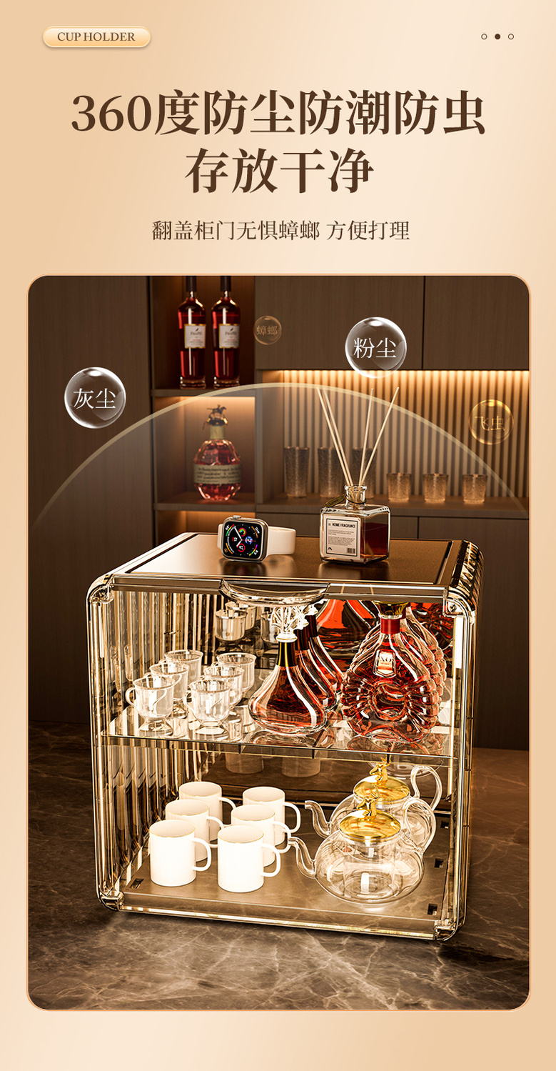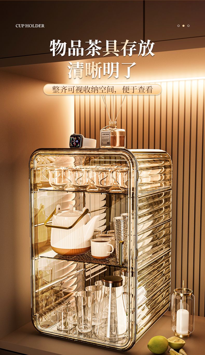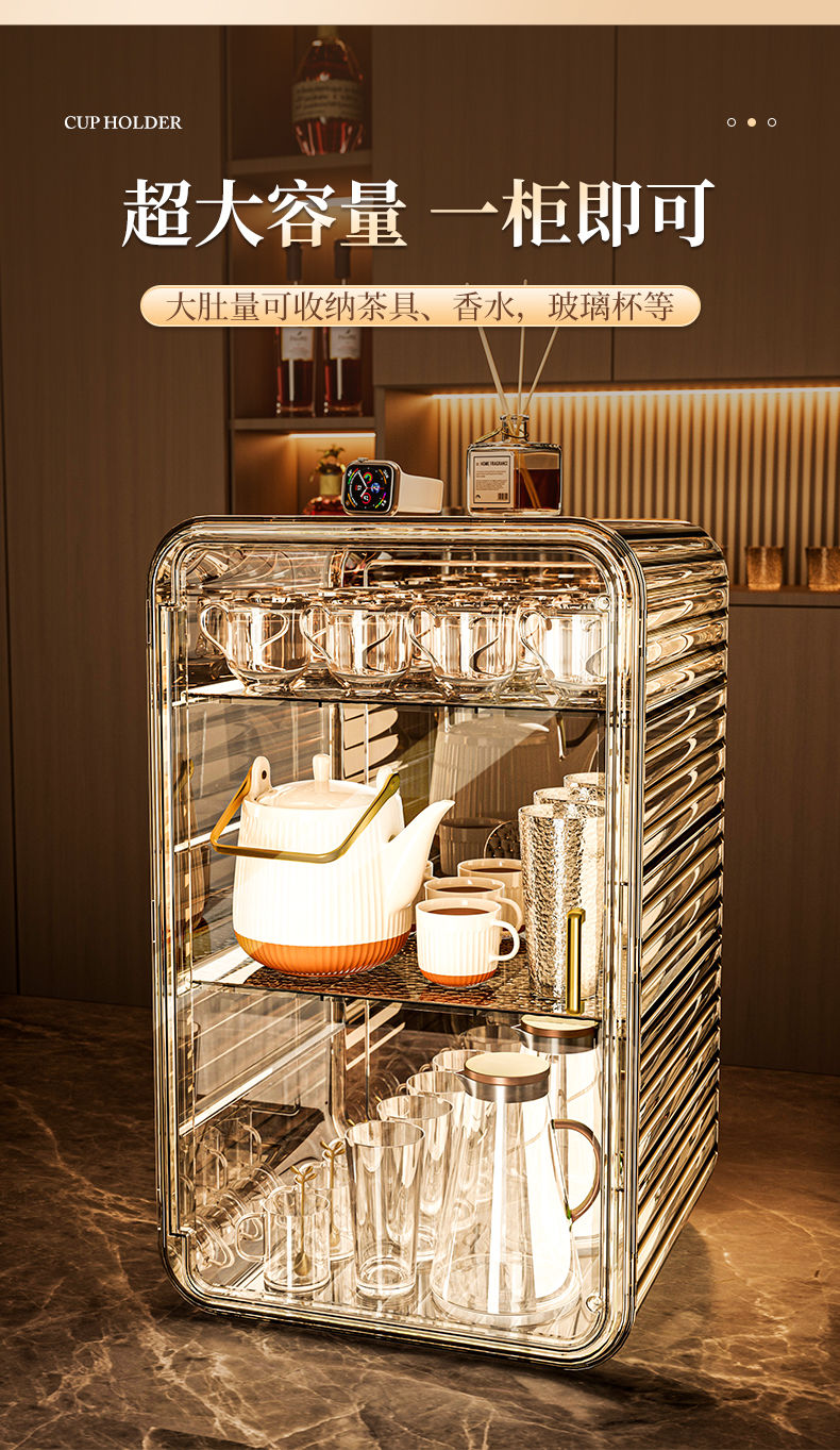 杯子收纳架家用透明防尘茶具整理架茶桌分层茶壶杯子存放柜高颜值