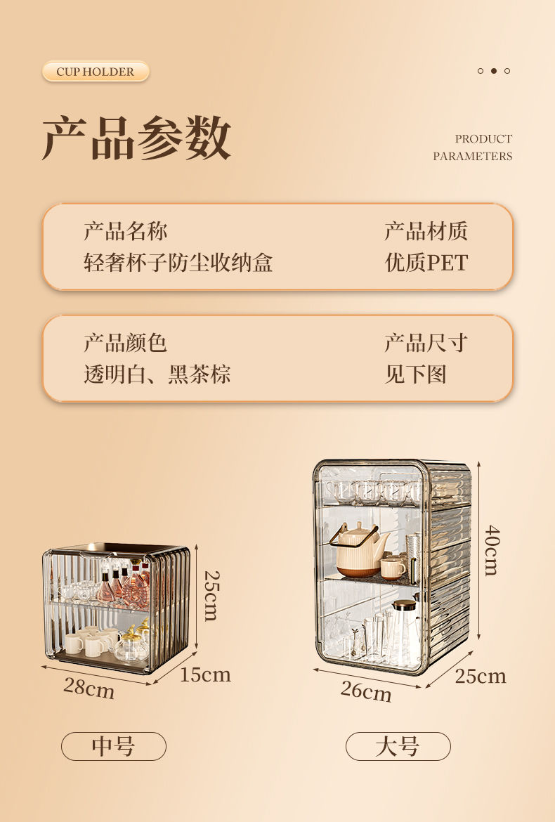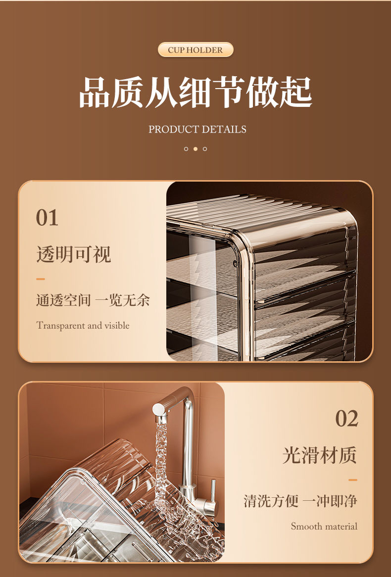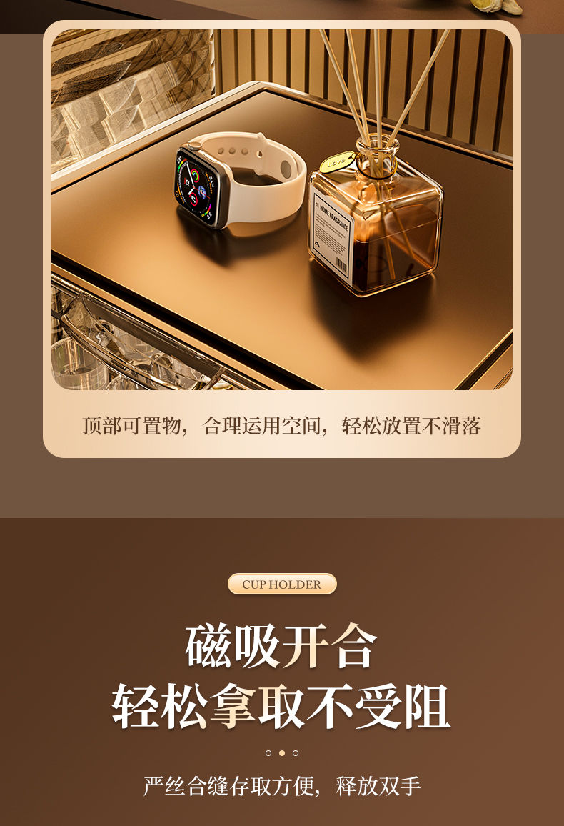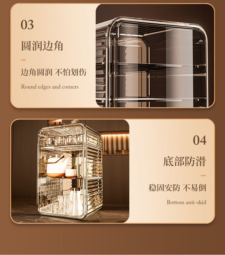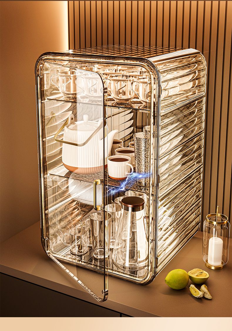 杯子收纳架家用透明防尘茶具整理架茶桌分层茶壶杯子存放柜高颜值