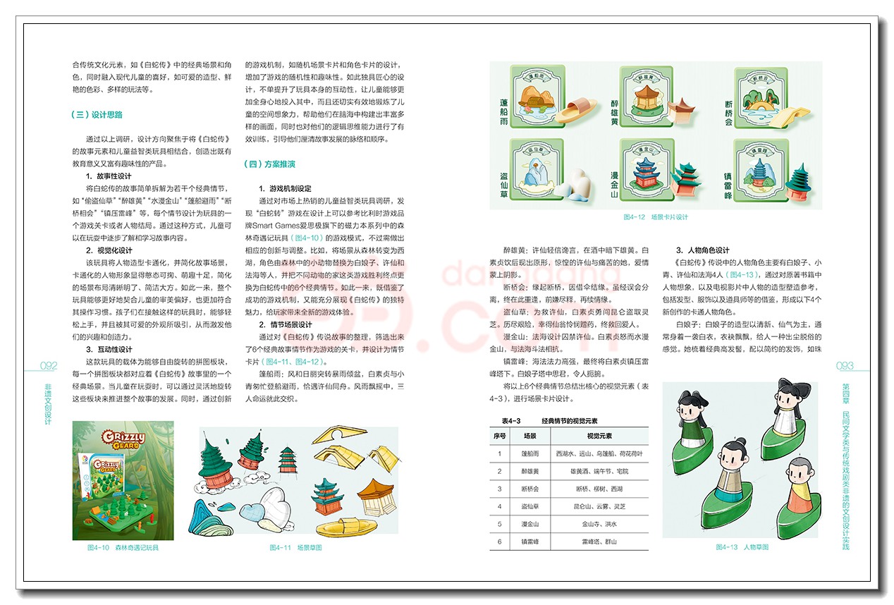 第四章 民间文学类与传统戏剧类非遗的文创设计实践085 一、民间文学类与传统戏剧类非遗概述085 (一)民间文学类与传统戏剧类非遗的定义与分类086 (二)民间文学类与传统戏剧类非遗的保护与传承087 (三)民间文学类与传统戏剧类非遗的代表性实例089 (四)民间文学类与传统戏剧类非遗文创设计的方法090 二、;白蛇转主题玩具文创设计实践090 (一)确定主题090 (二)开展调研092 (三)设计思路092 (四)方案推演095 (五)模型制作095 (六)成品展示096 三、仓颉传说汉字拼图印章启蒙玩具设计实践096 (一)确定主题096 (二)开展调研097 (三)设计思路097 (四)方案推演099 (五)模型制作099 (六)成品展示099 四、;闻花鼓花鼓戏香薰文创设计实践099 (一)确定主题100 (二)开展调研101 (三)设计思路101 (四)方案推演102 (五)成品展示103 五、;戏出东方系列皮影文创礼盒设计实践103 (一)确定主题103 (二)开展调研104 (三)设计思路105 (四)方案推演106 (五)制作过程107 (六)成品展示107 六、;偶遇布袋木偶戏的玩偶套装设计实践107 (一)确定主题107 (二)开展调研108 (三)设计思路109 (四)方案推演112 (五)制作过程112 (六)成品展示113 习题