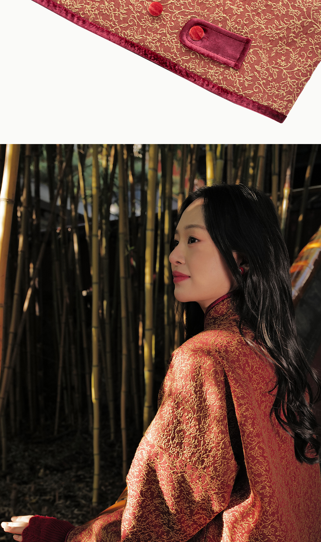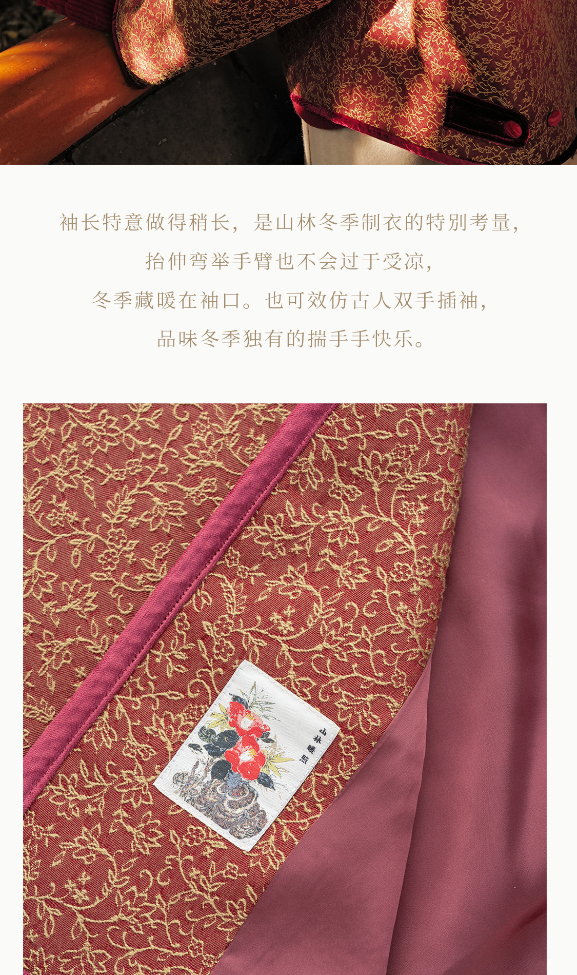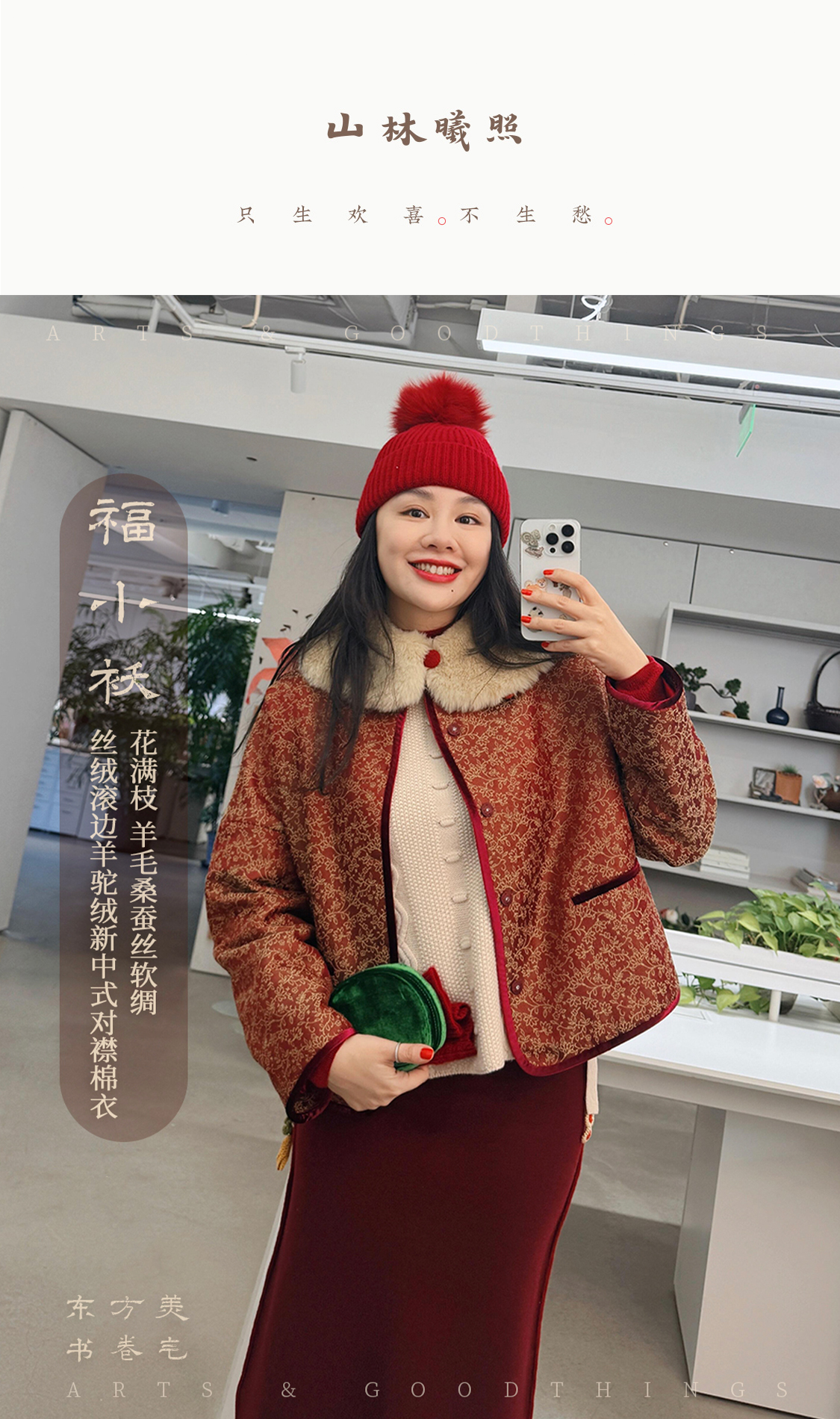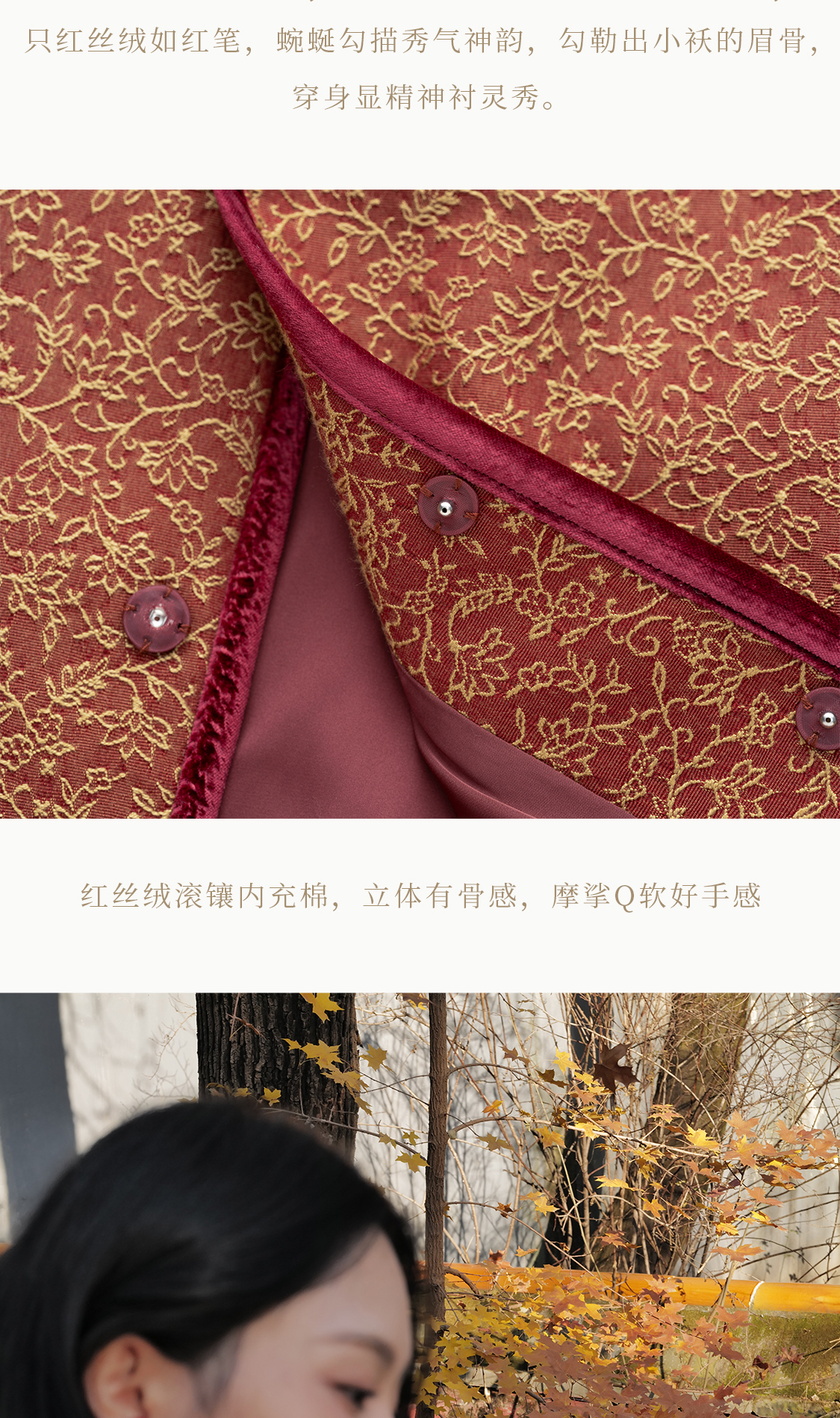 福小袄 花满枝 羊毛桑蚕丝软绸 丝绒滚边羊驼绒新中式对襟棉衣