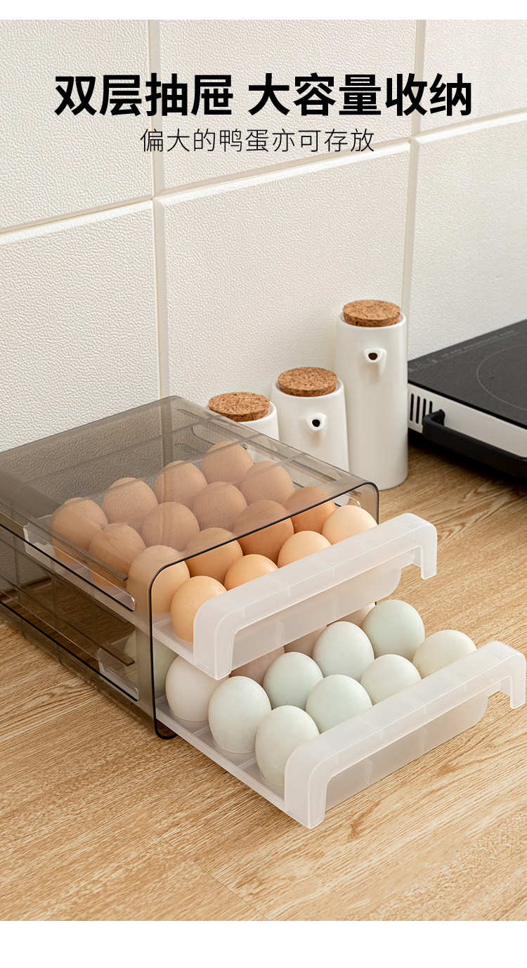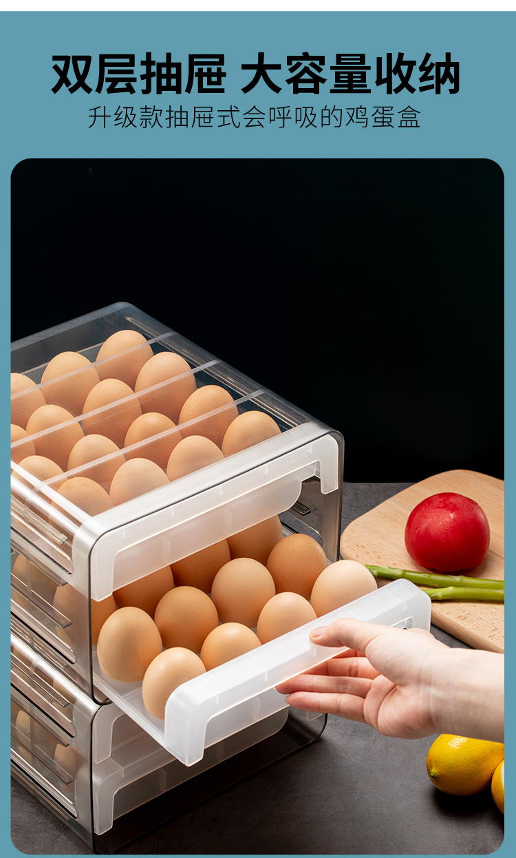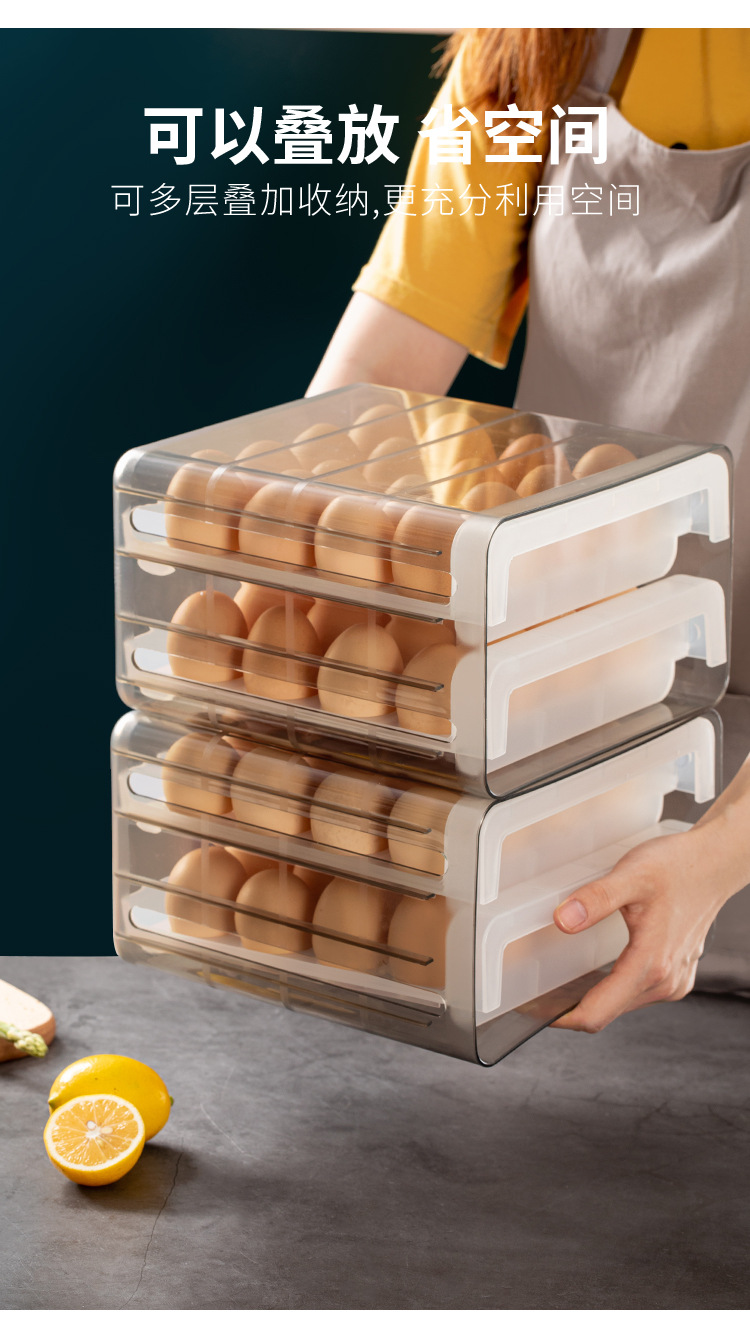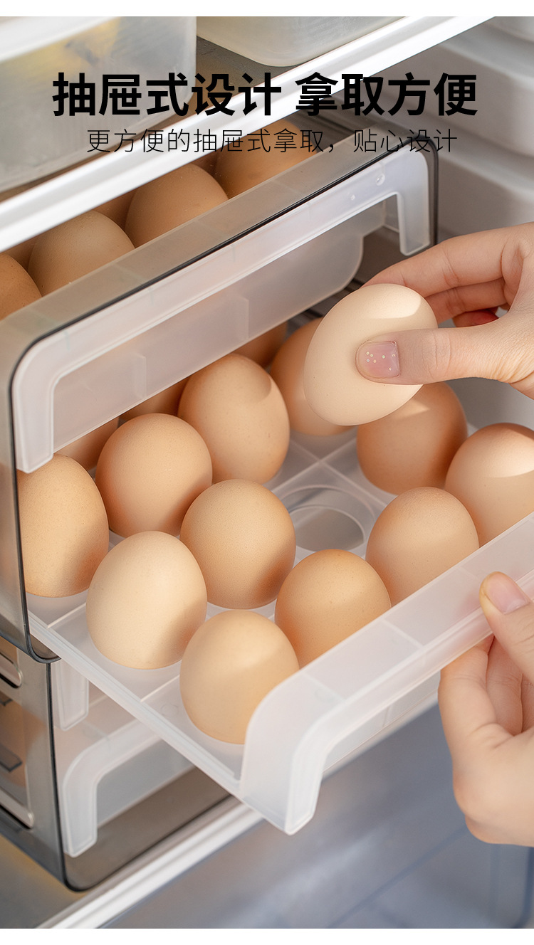 双层冰箱鸡蛋收纳盒抽屉式保鲜盒收纳带盖密封鸡蛋盒蛋架蛋托