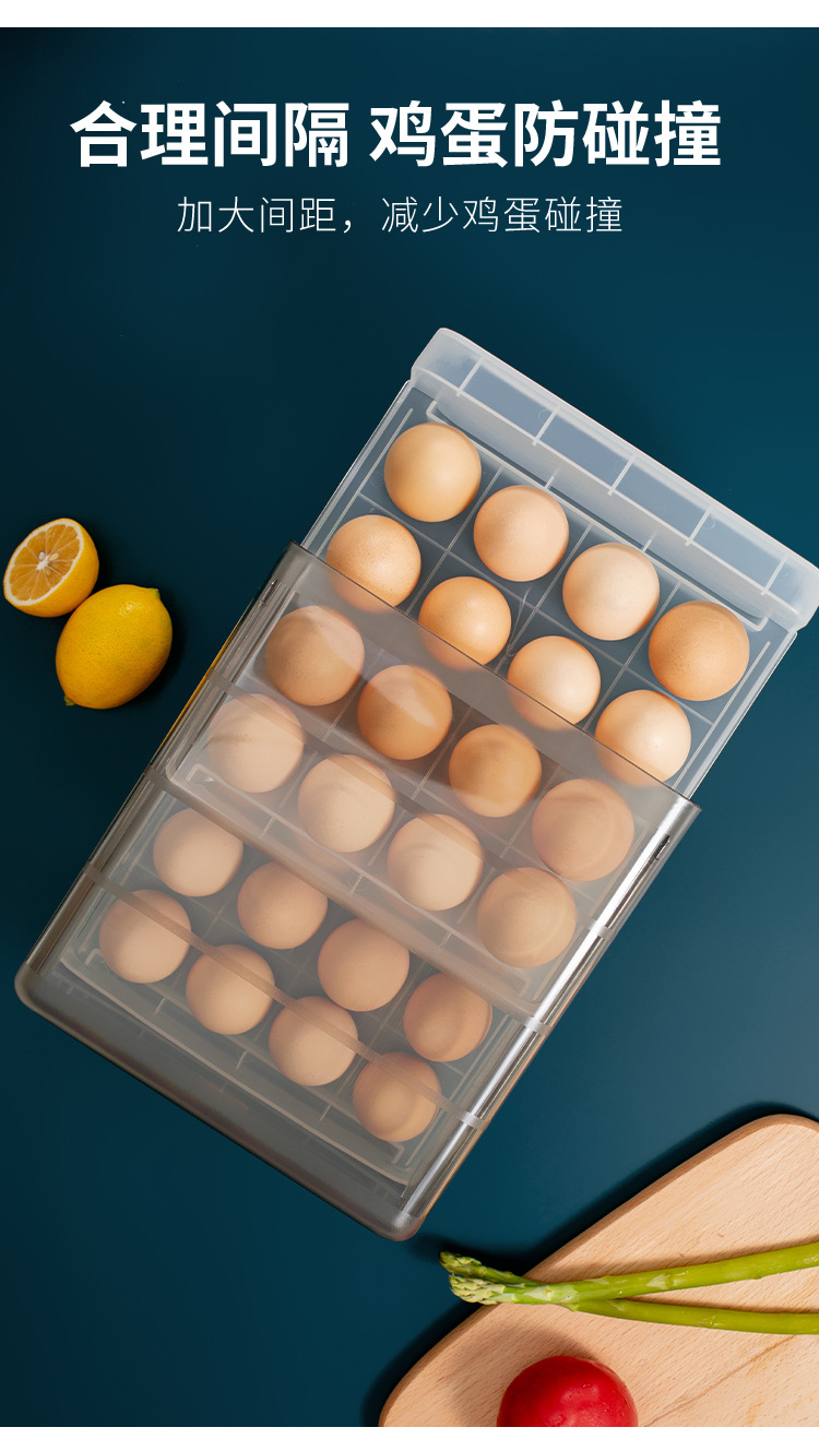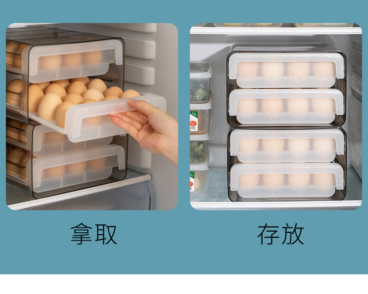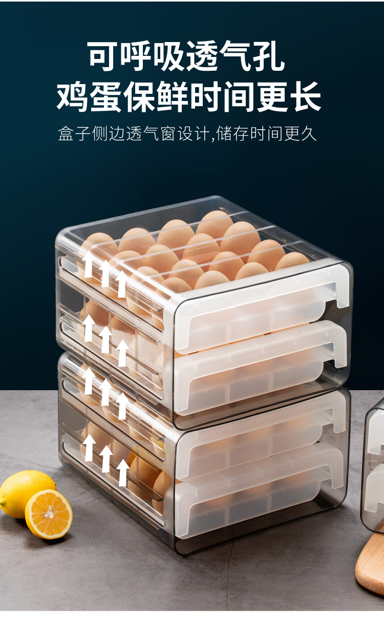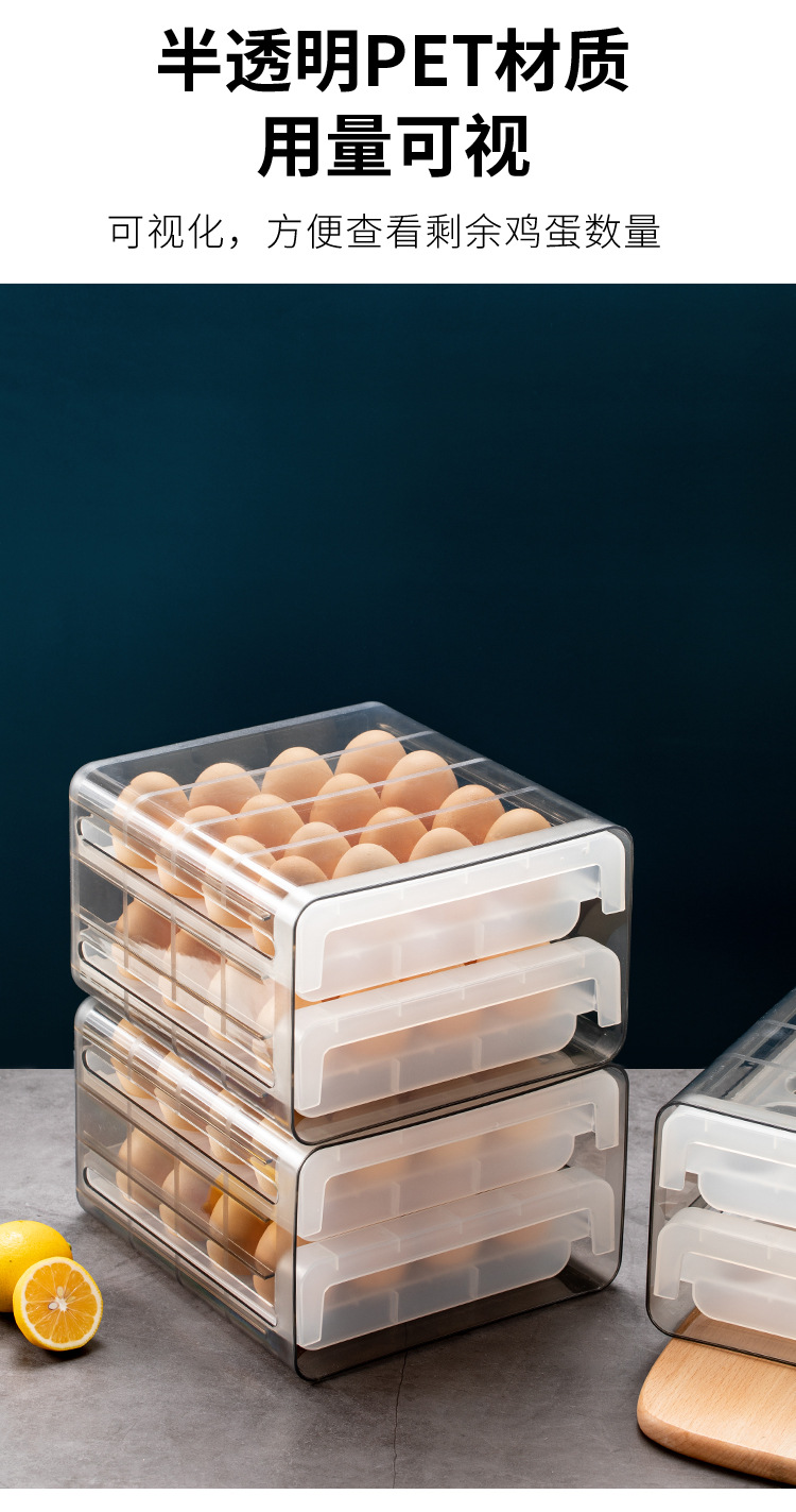 双层冰箱鸡蛋收纳盒抽屉式保鲜盒收纳带盖密封鸡蛋盒蛋架蛋托