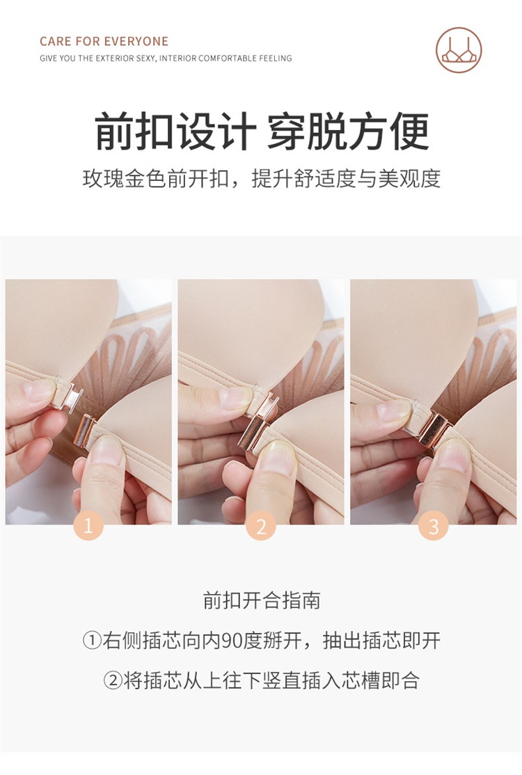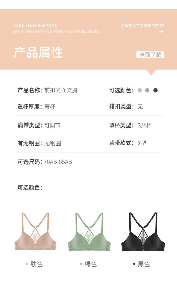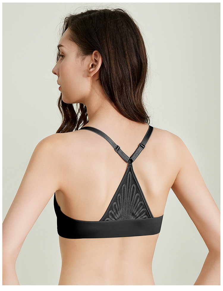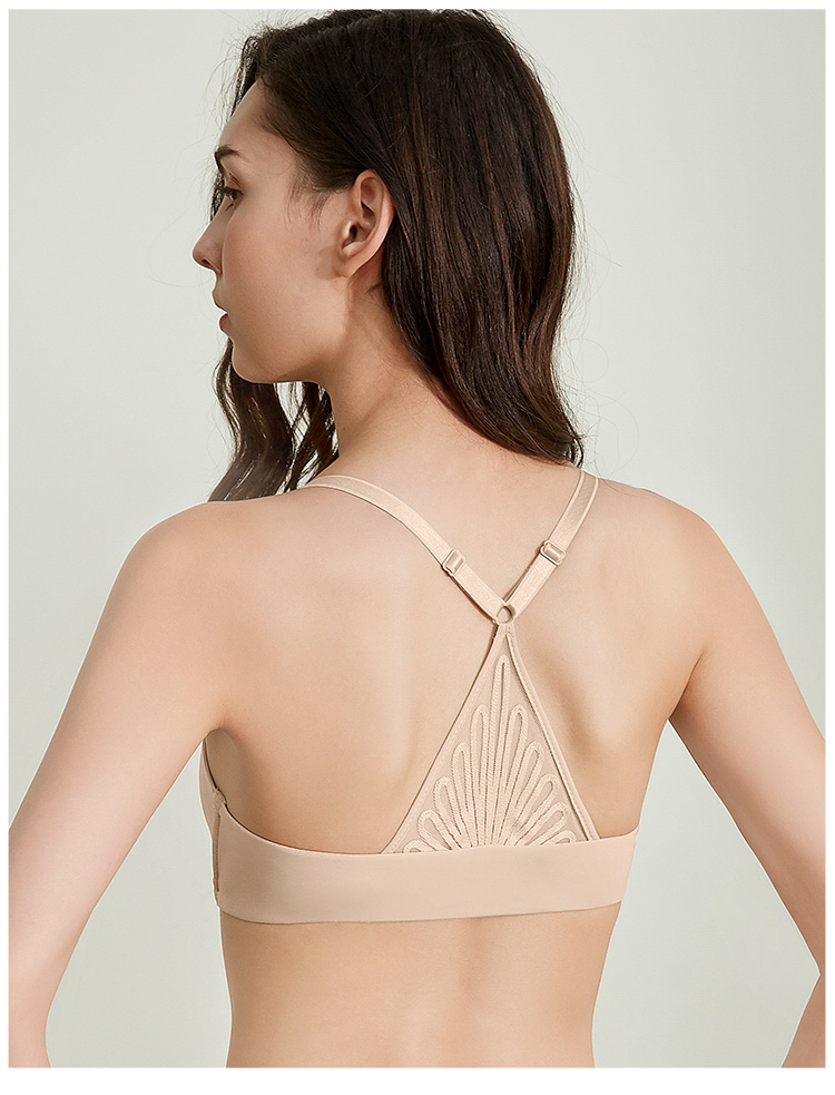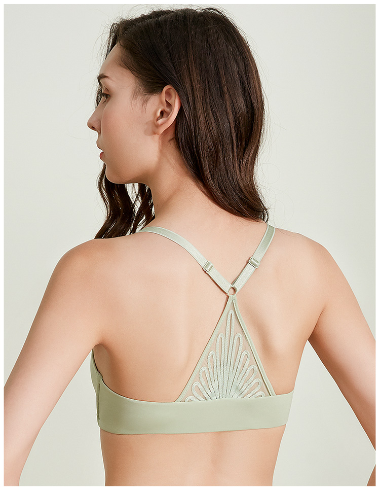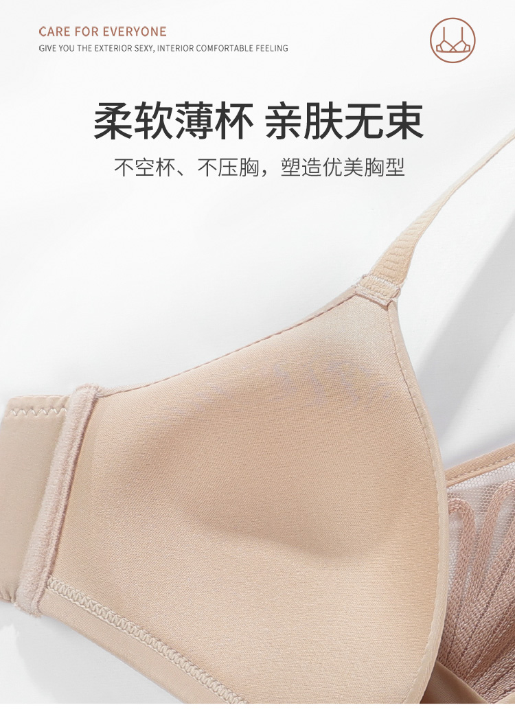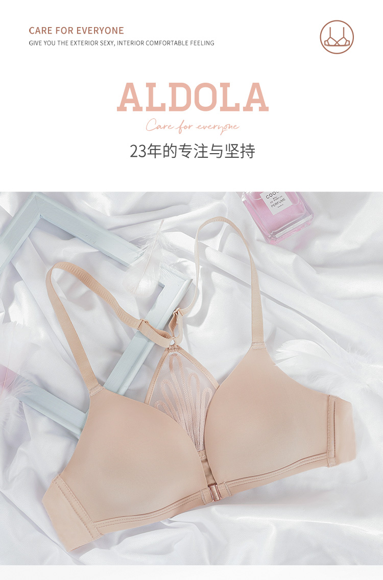 雅黛丽女士光面蕾丝美背无钢圈可调节薄杯前扣内衣文胸