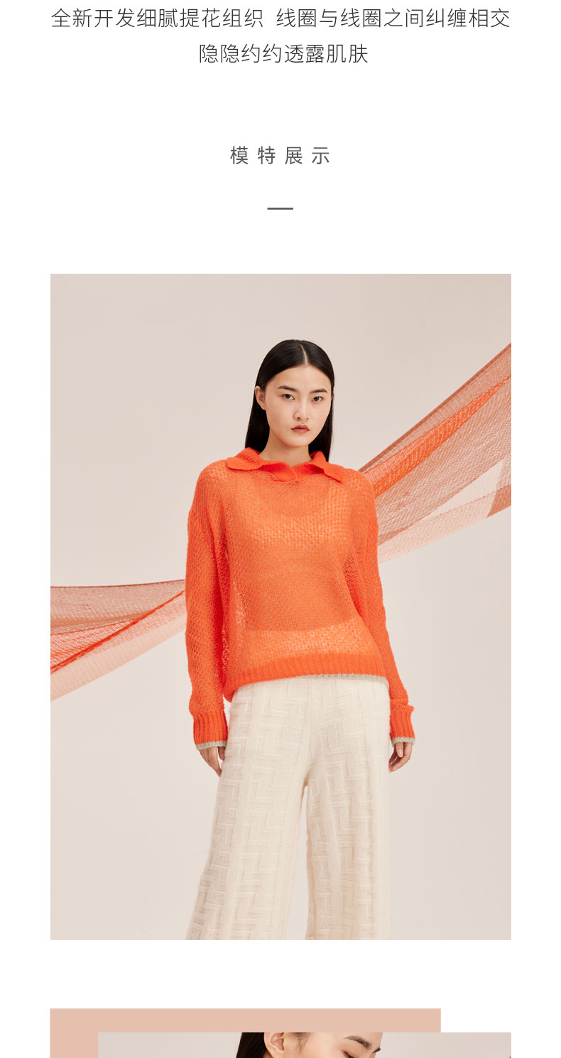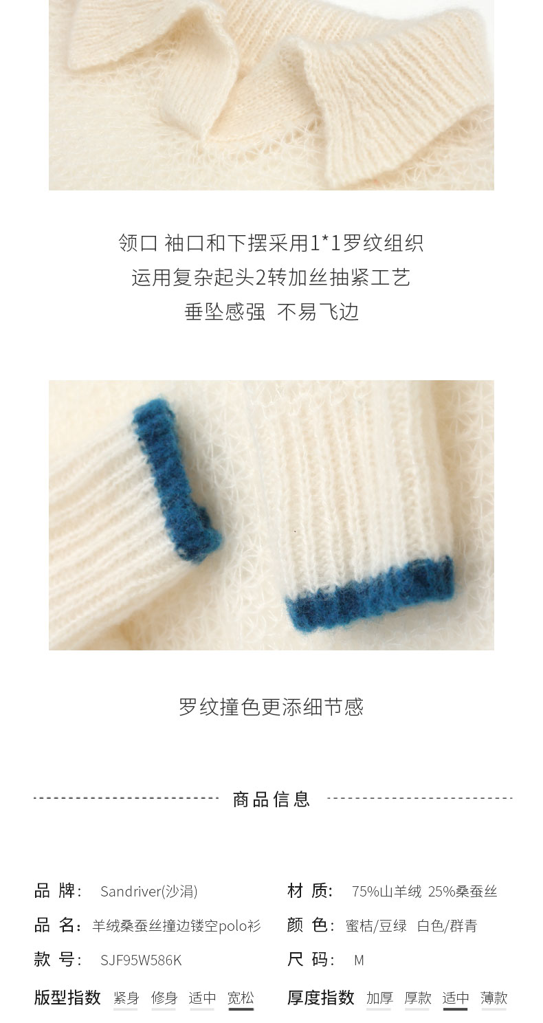 羊绒桑蚕丝撞边镂空polo衫SJF95W586K