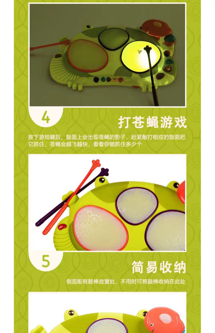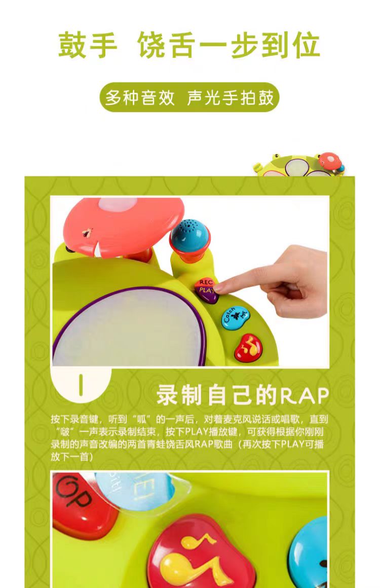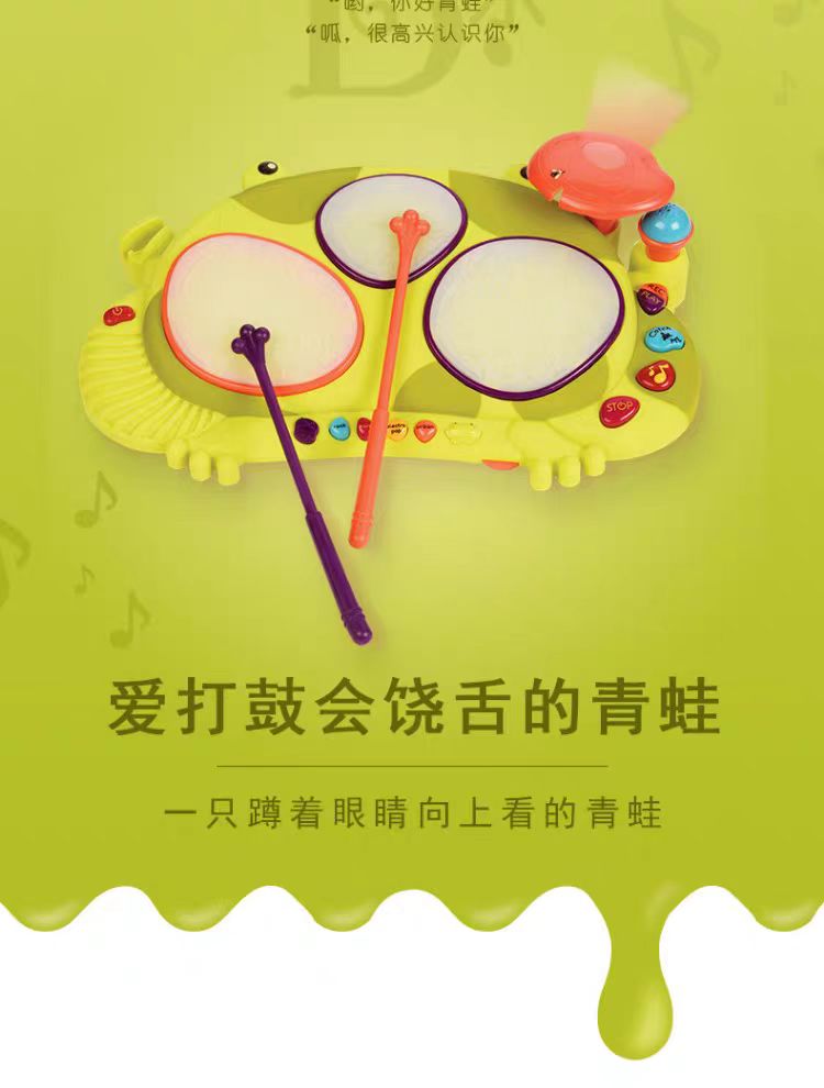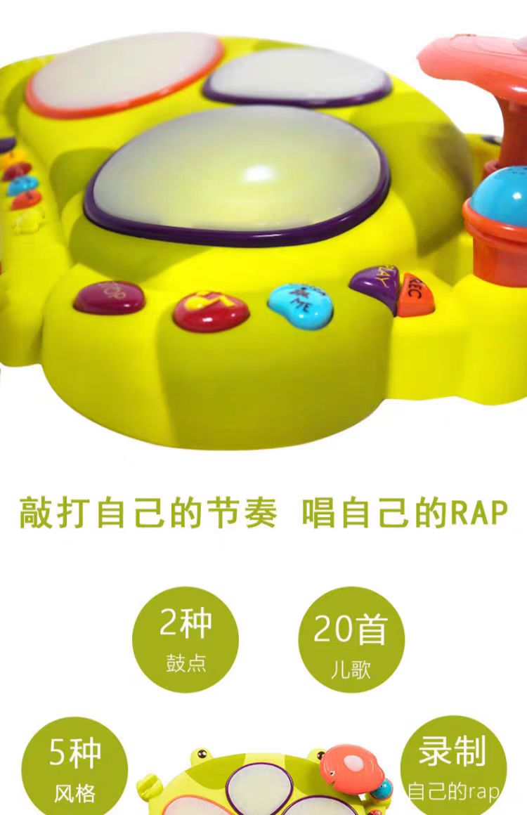 4楼Eubelle欧蓓 比乐B.Toys饶舌青蛙电子鼓儿童架子鼓 宝宝手拍玩具打击敲击乐器 吊牌价:439元 活动价:130元