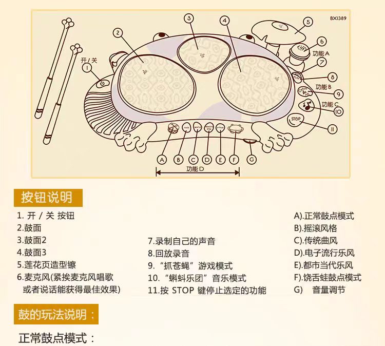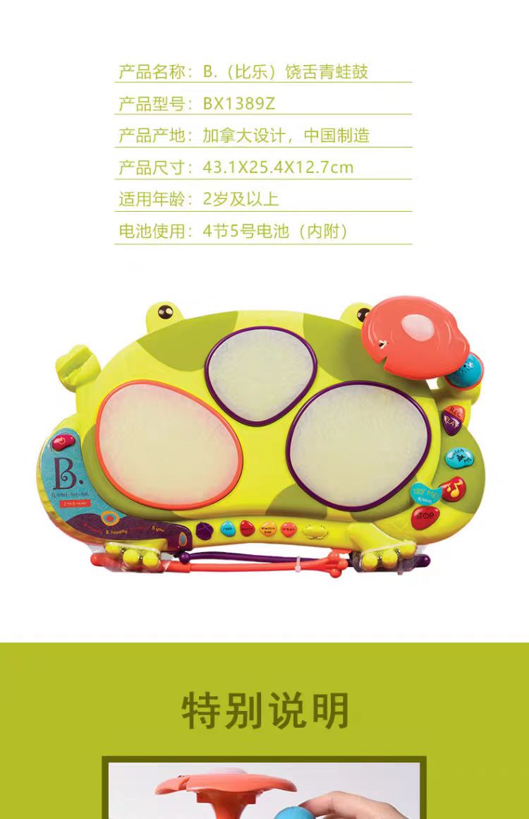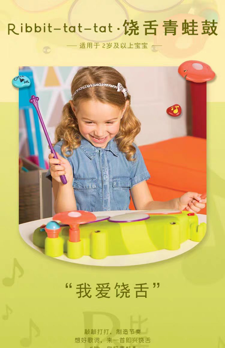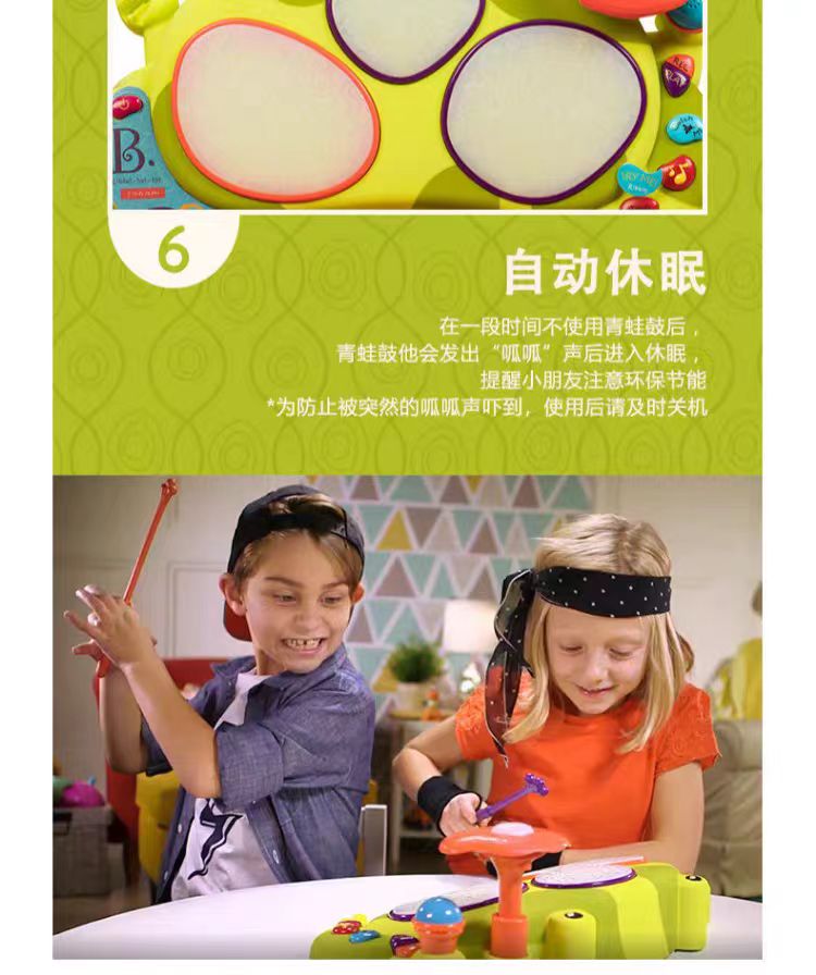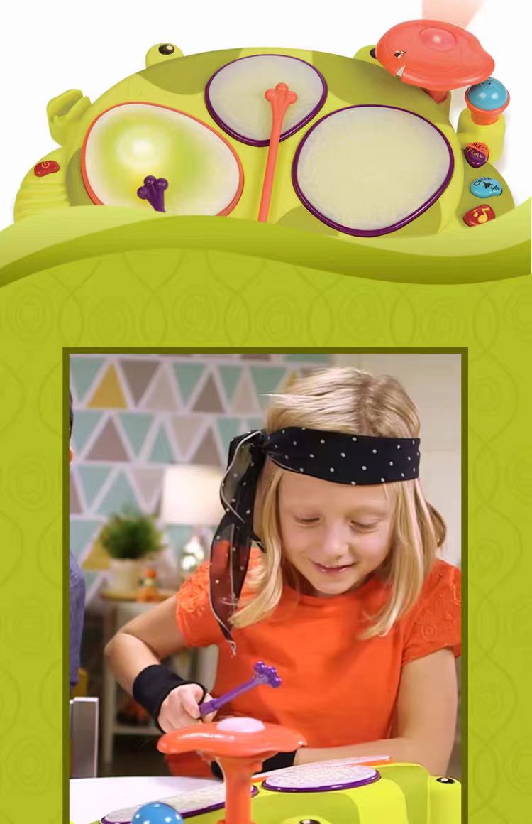 4楼Eubelle欧蓓 比乐B.Toys饶舌青蛙电子鼓儿童架子鼓 宝宝手拍玩具打击敲击乐器 吊牌价:439元 活动价:130元