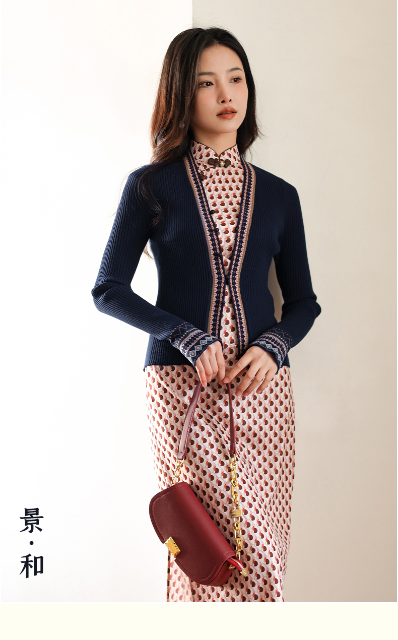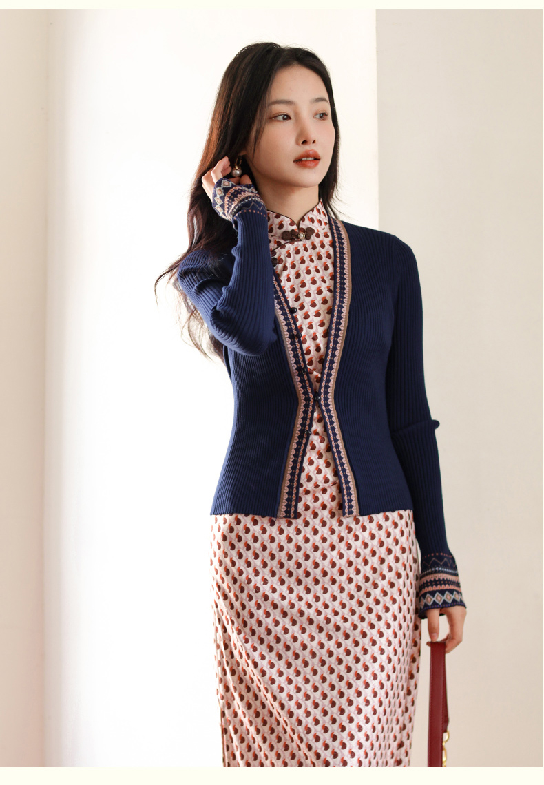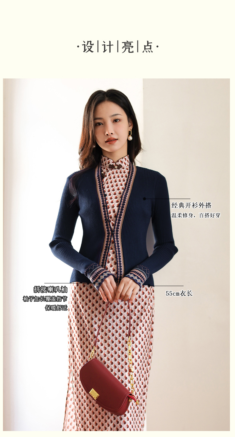 上海逸红颜景和2025秋新款民族风元素针织毛衣开衫旗袍外套女装