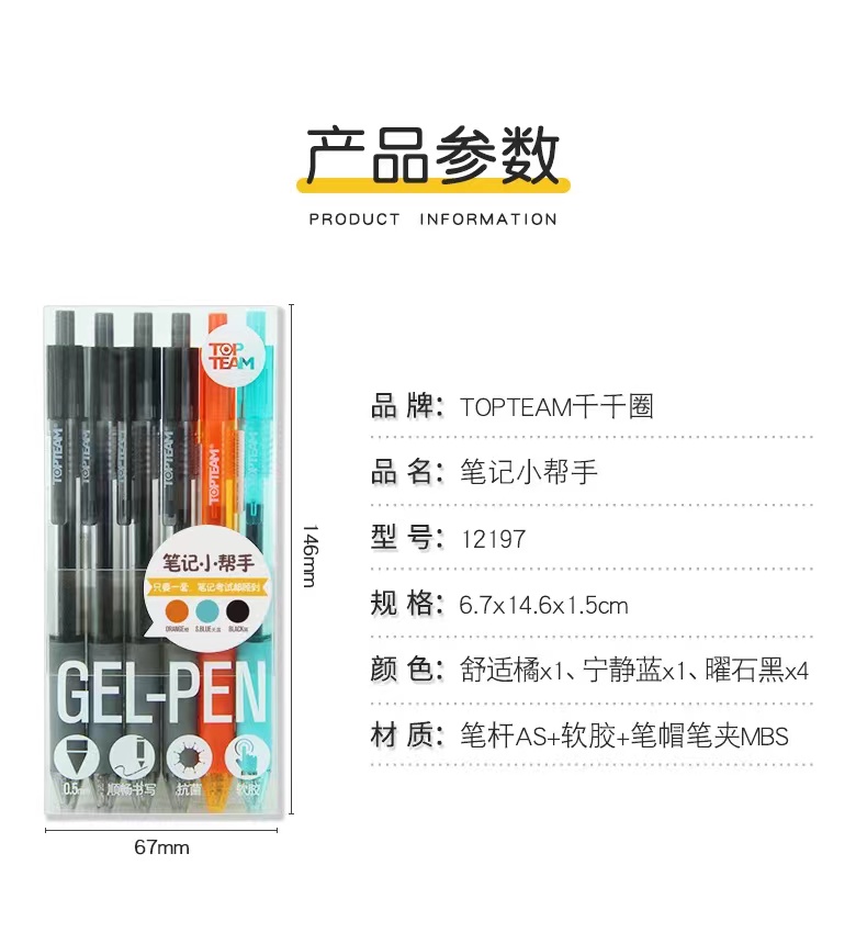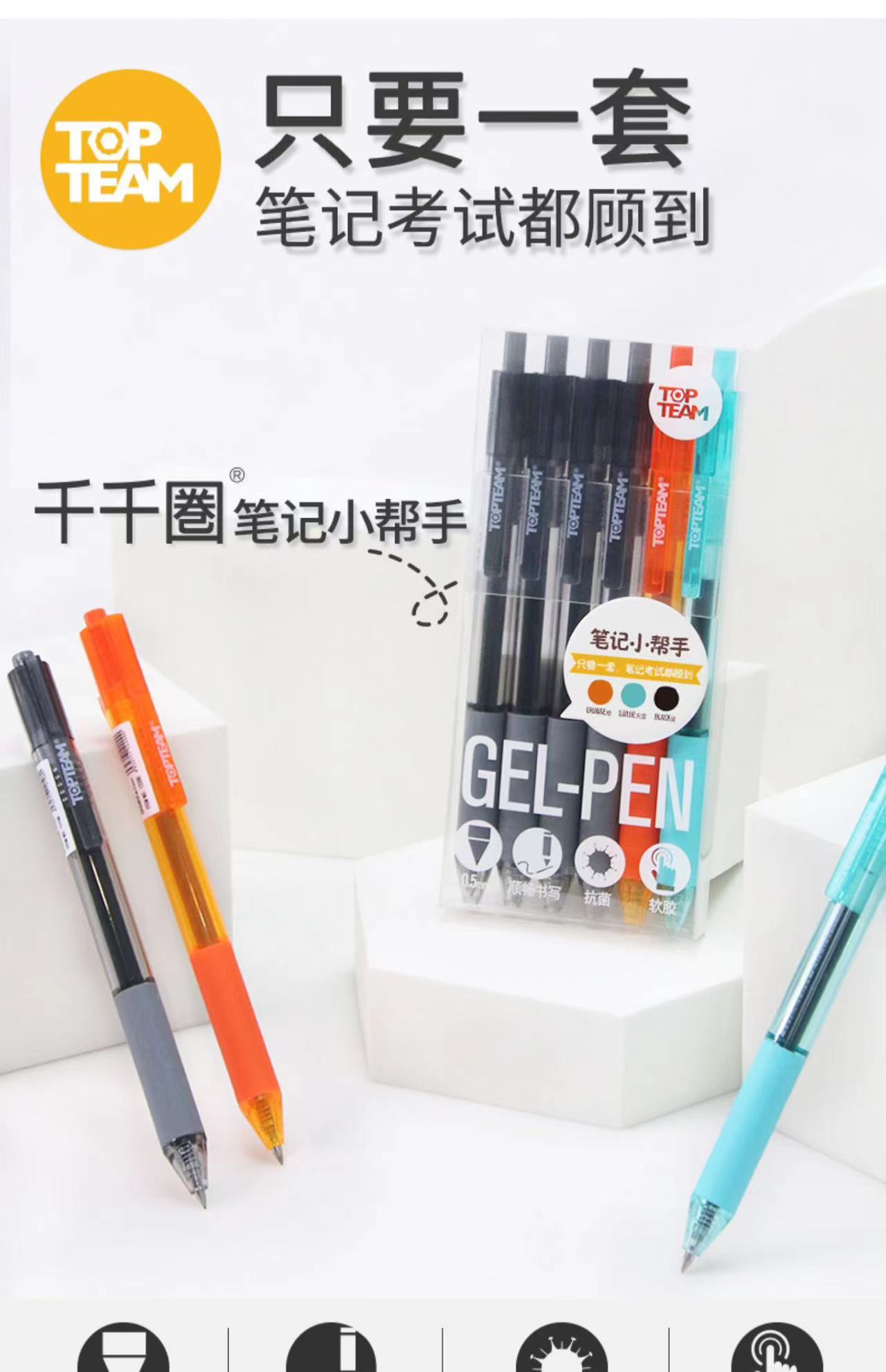 4楼Eubelle欧蓓 千千圈中性笔(黑色4支+橙1支+天蓝1支)0.5巨能写按压套装速干 活动价:29元