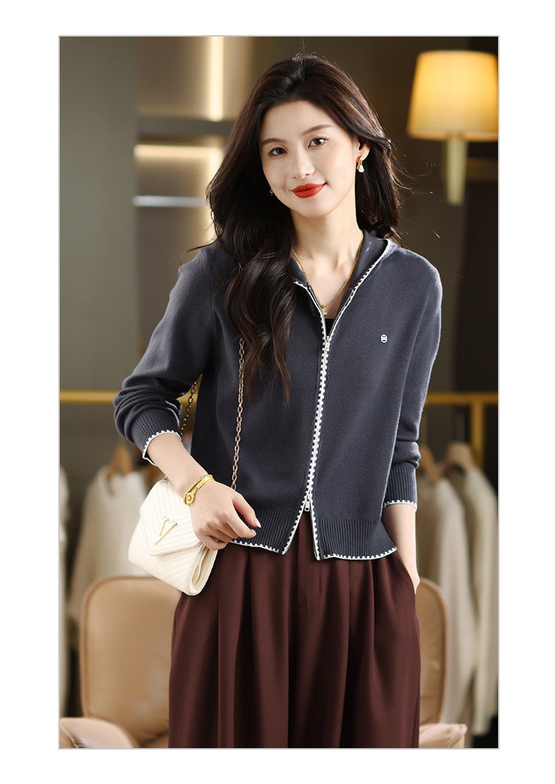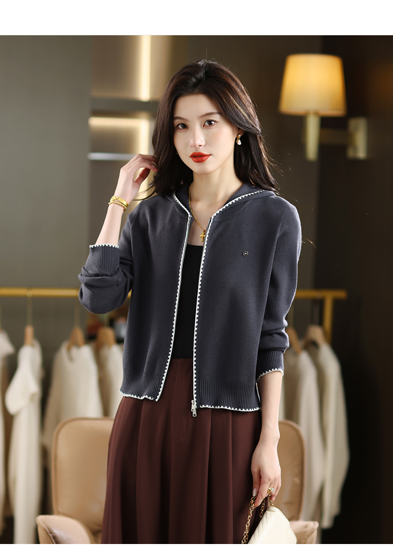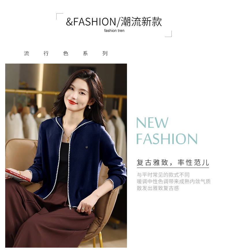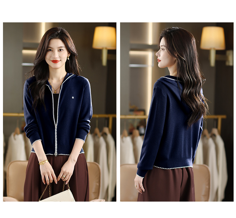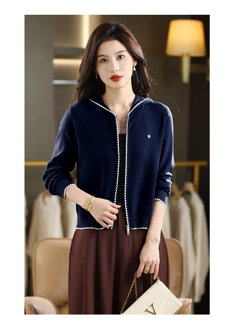 CC 101-9501连帽卫衣针织开衫时尚休闲慵懒拼色毛衣