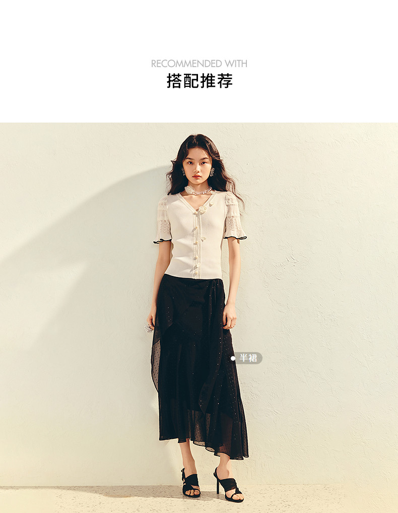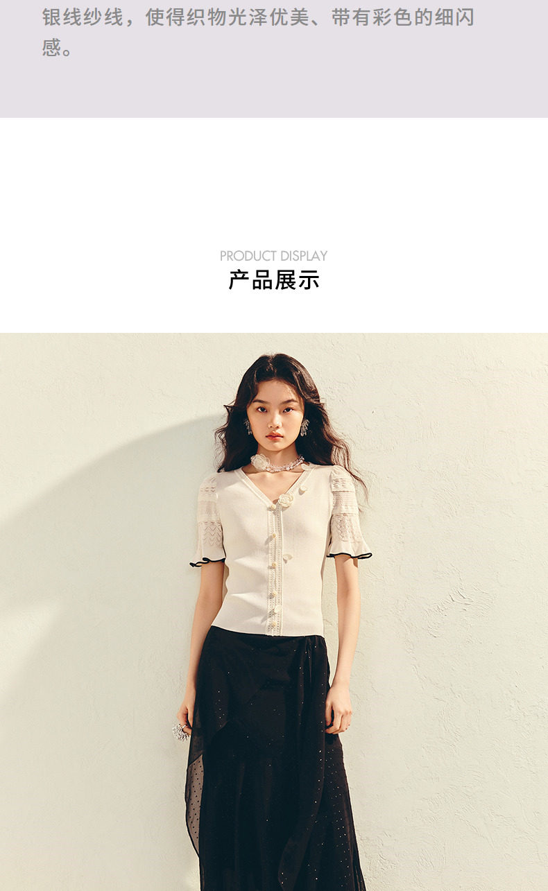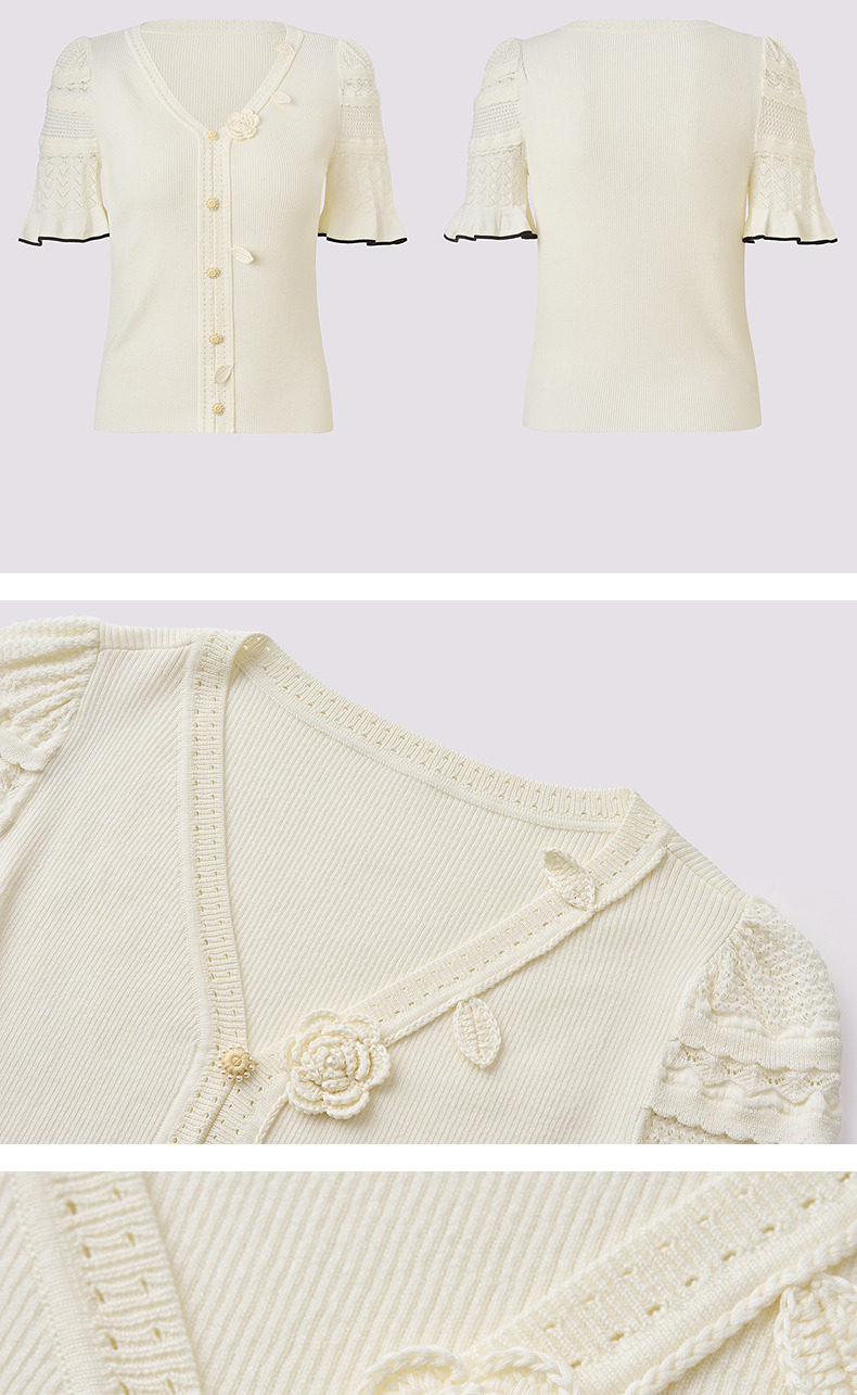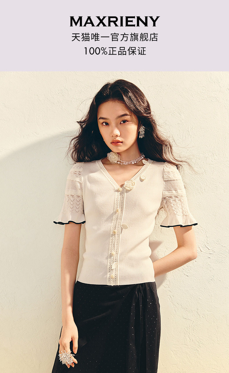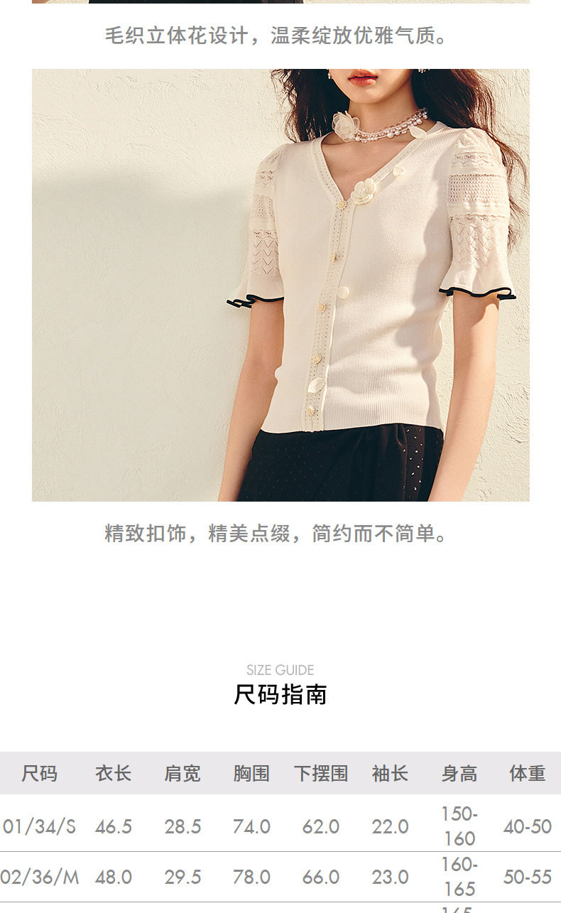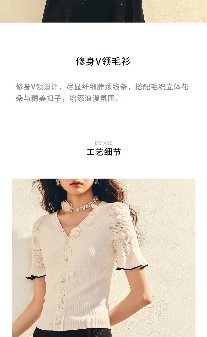MAXRIENY春日氛围感v领套头毛针织衫修身显瘦立体花小众设计上衣(货号:MS86SW042)