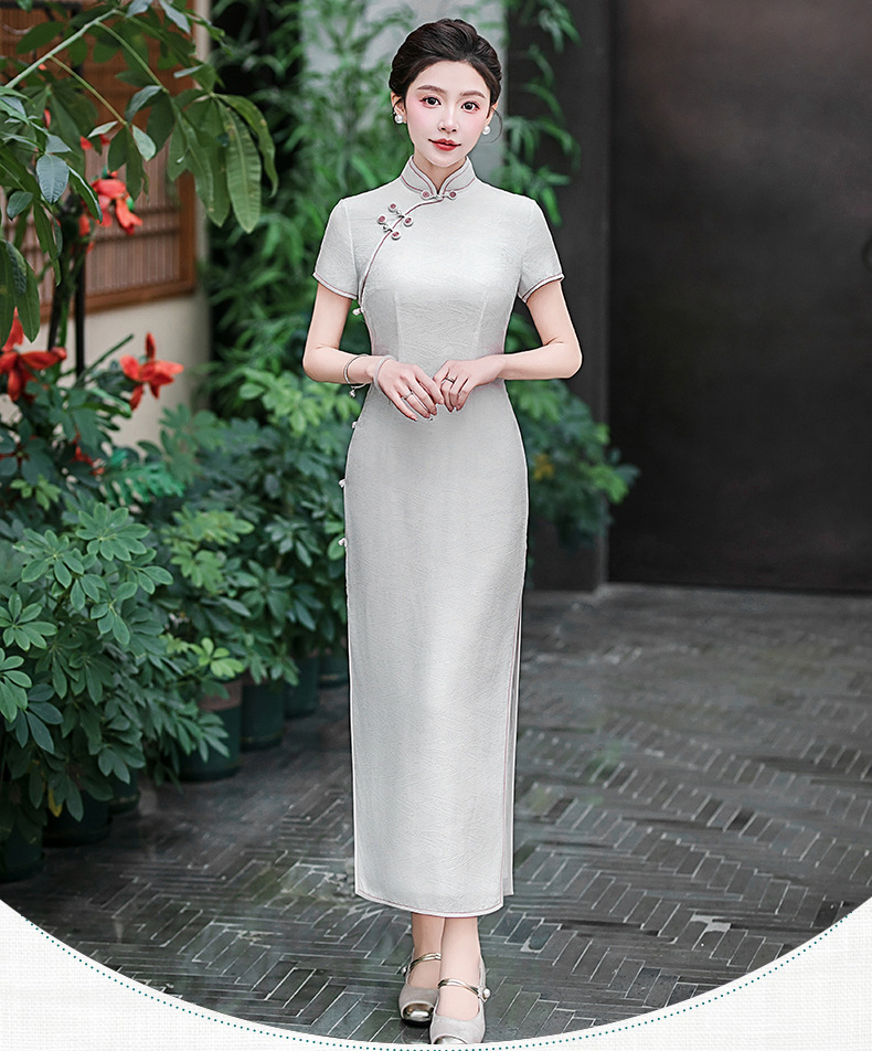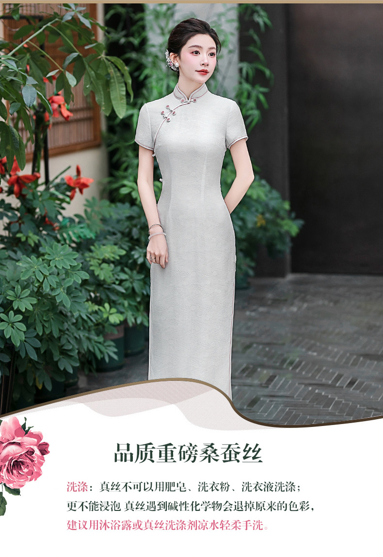 WX-2025春季新款真丝旗袍中式桑蚕丝连衣裙手工缝制送考宴席日常可穿