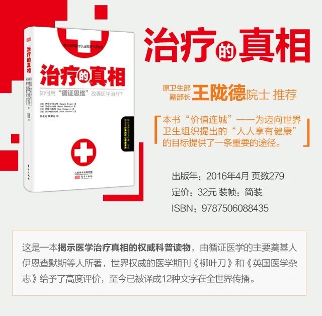 这是一本揭示医学治疗真相的权威科普读物,由循证医学的主要奠基人伊恩•查默斯等人所著,世界权威的医学期刊《柳叶刀》和《英国医学杂志》给予了高度评价,至今已被译成12种文字在全世界传播。作者以公众容易知晓的知识、词汇和语言,以及深入浅出的方法,揭示医学治疗和研究的真相。本书通过详实的数据、鲜活的例子和通俗易懂的语言来揭示医学诊断和治疗领域不为人知的真相,适合医务人员及任何对健康感兴趣的人阅读。本书帮助读者拨开迷雾,学会甄别哪些医学信息值得信任,哪些是原以为有效和正确的诊疗方法,其实会对健康带来弊端;帮助读者认识医学研究在设计、实施和发表过程中可能存在的问题和偏倚;还鼓励读者,通过主动参与医学研究和临床试验,用科学的医学知识防治疾病,促进健康。原卫生部副部长王陇德院士推荐本书,认为它“价值连城”——为迈向世界卫生组织提出的“人人享有健康”的目标提供了一条重要的途径,也是普通百姓最容易掌握的途径。