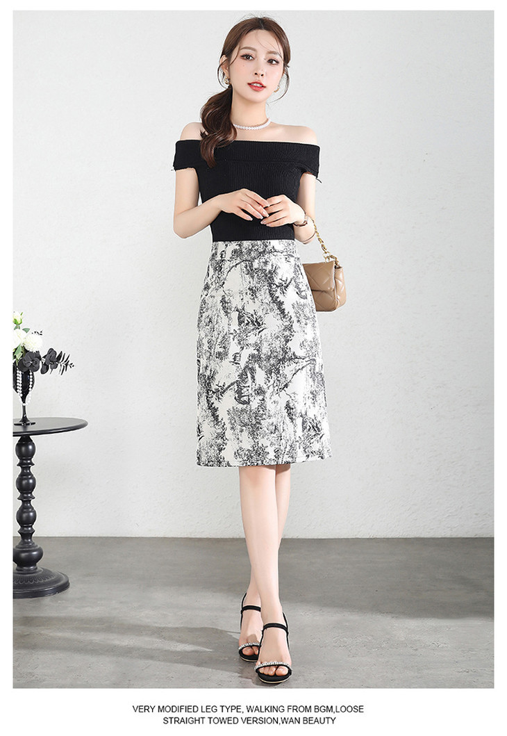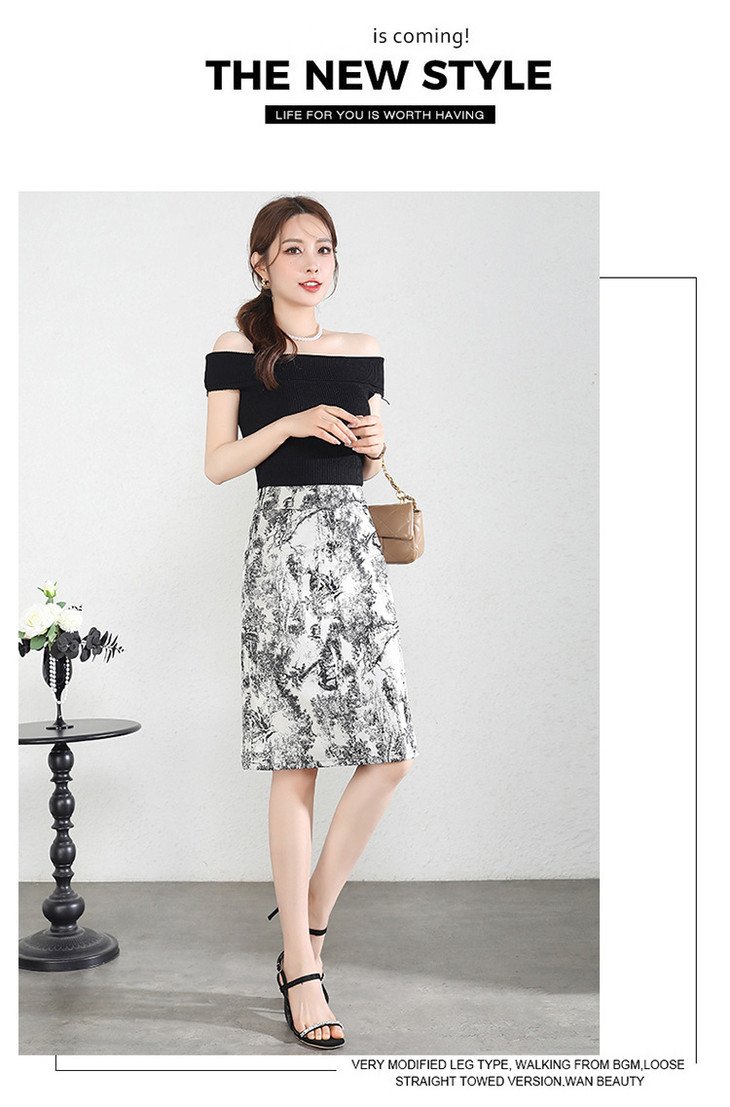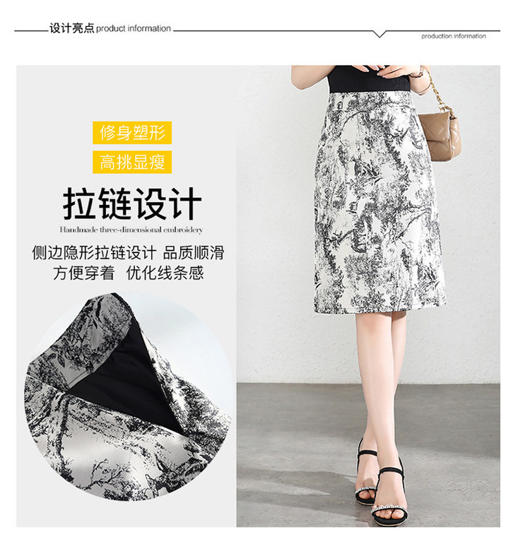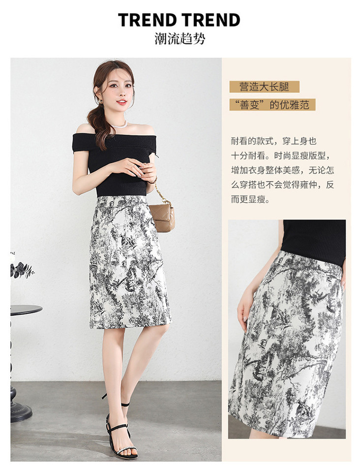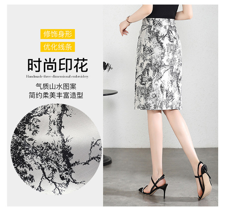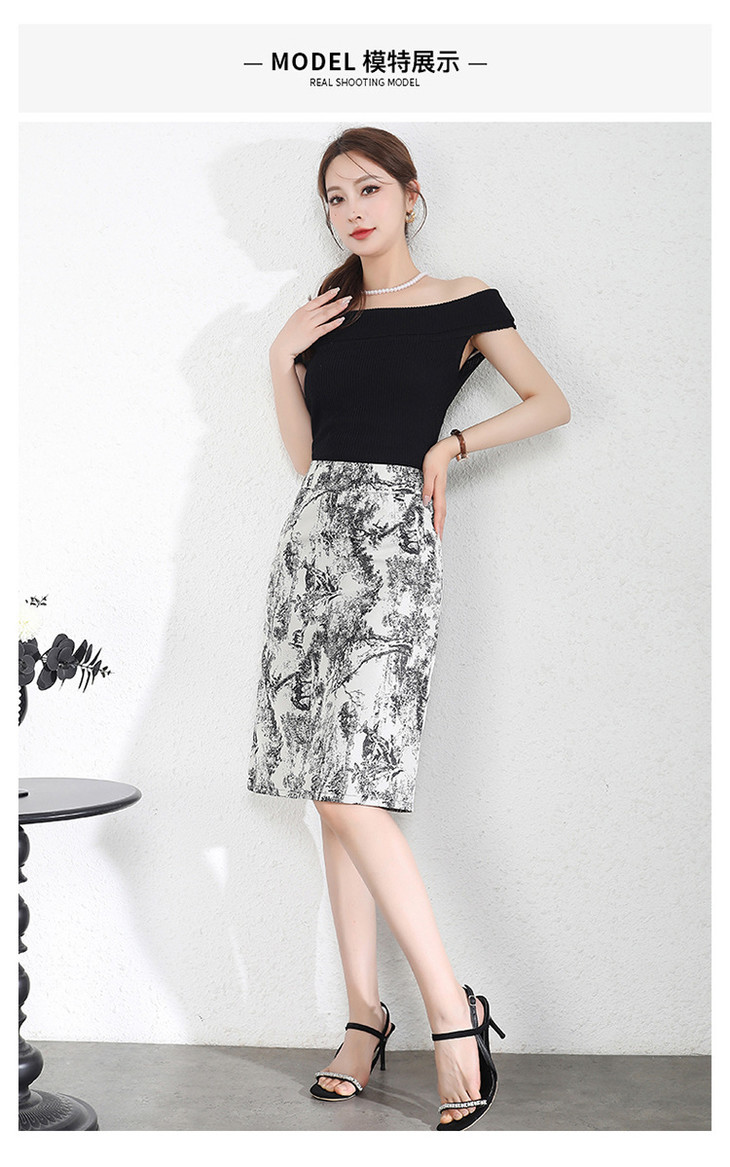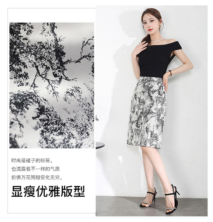 MYXNDLB-A192-Y新款时尚水墨花复古高腰半身裙2024年夏季印花包臀裙中裙