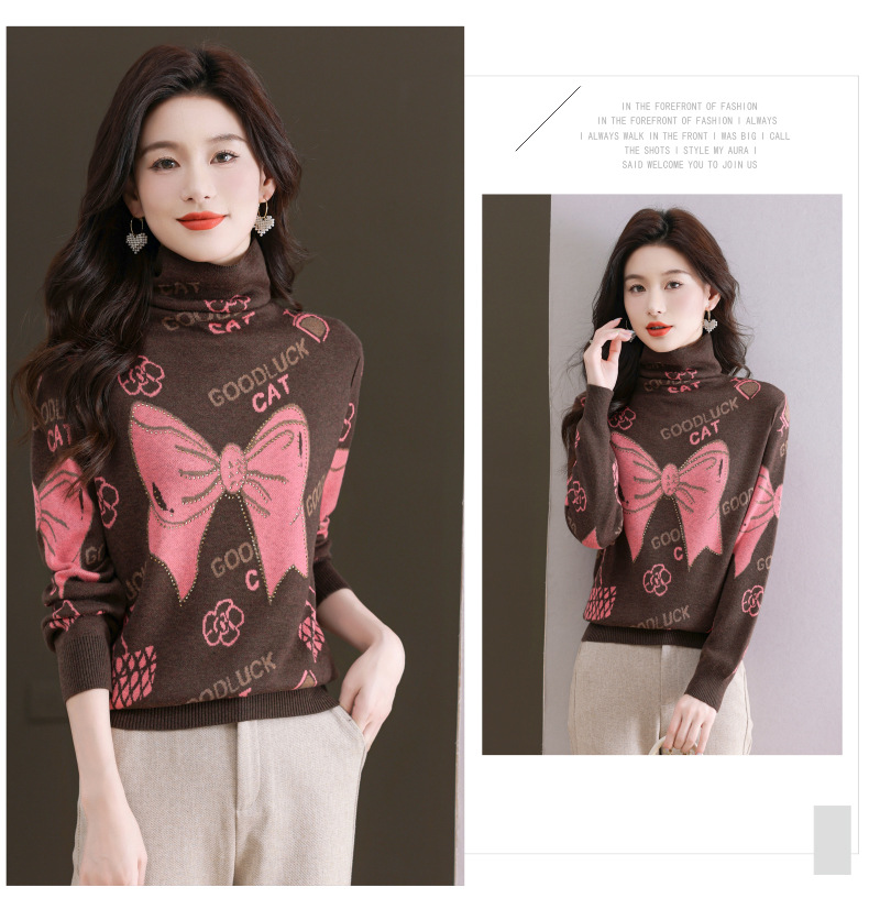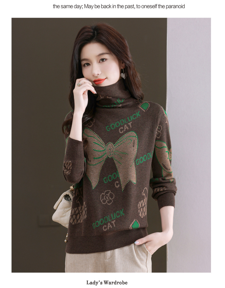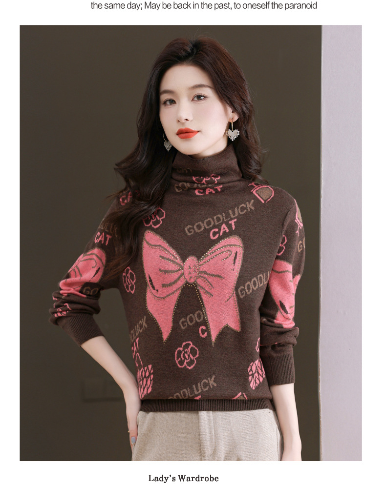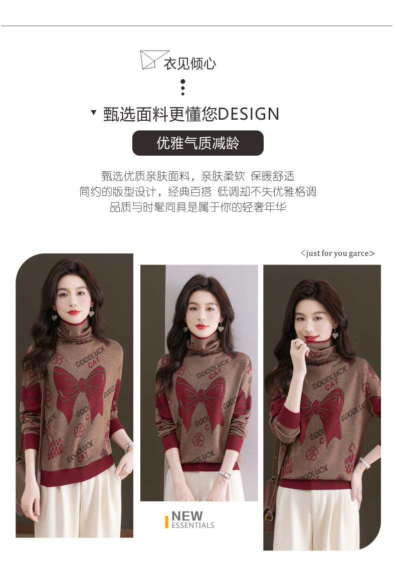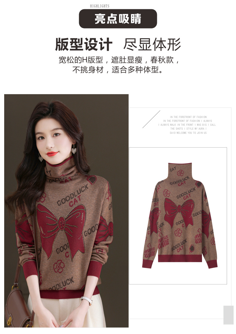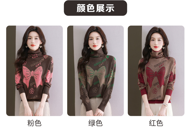CC-QG-6867堆堆领毛衣女士2024秋冬新款洋气羊毛针织衫宽松内搭打底小衫上衣