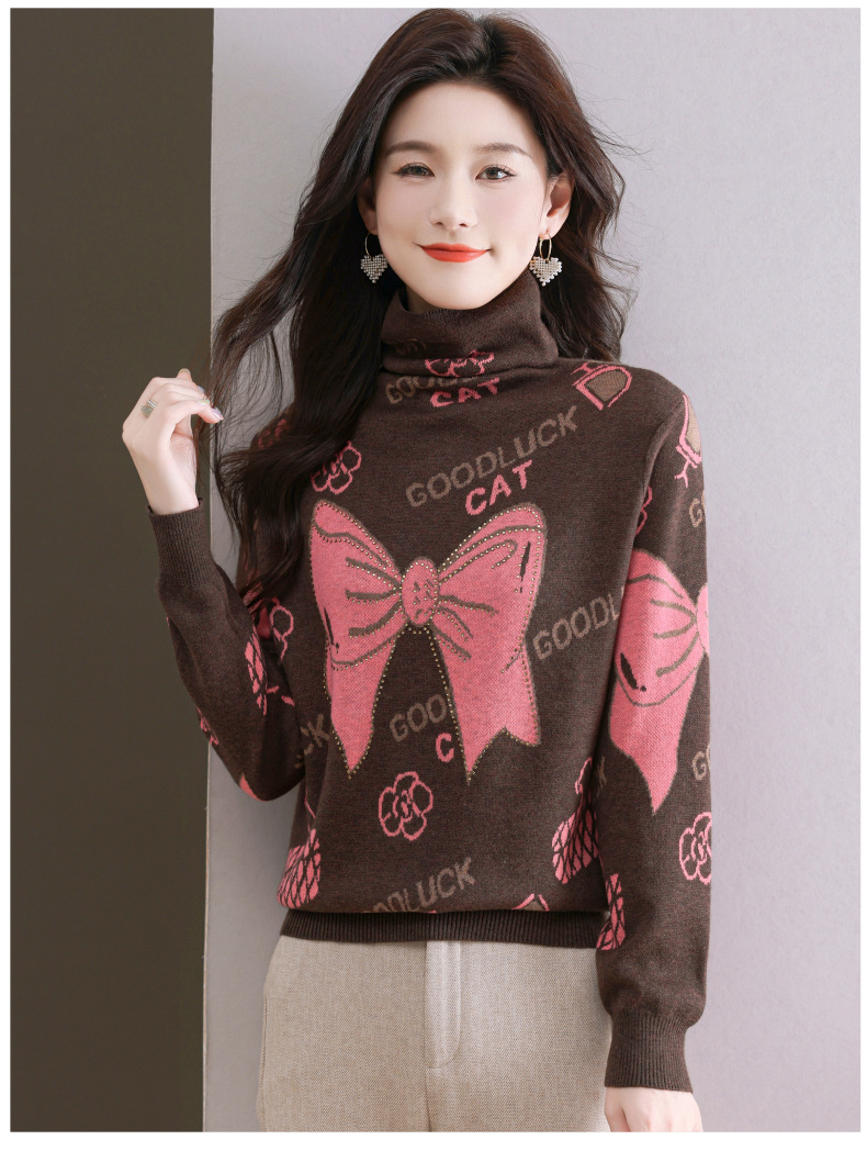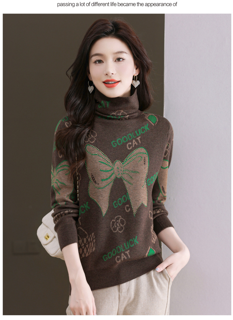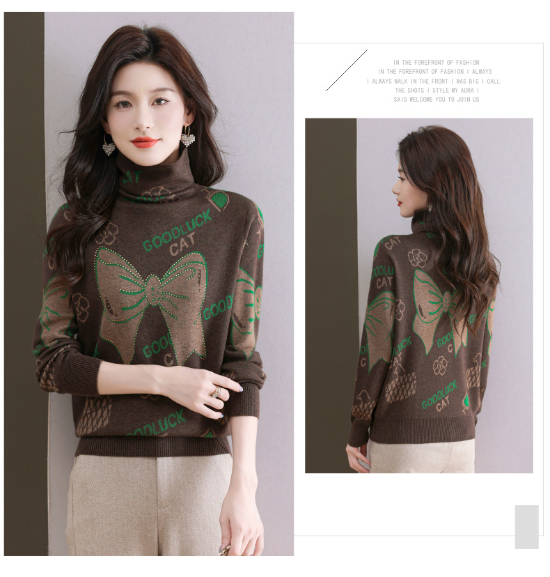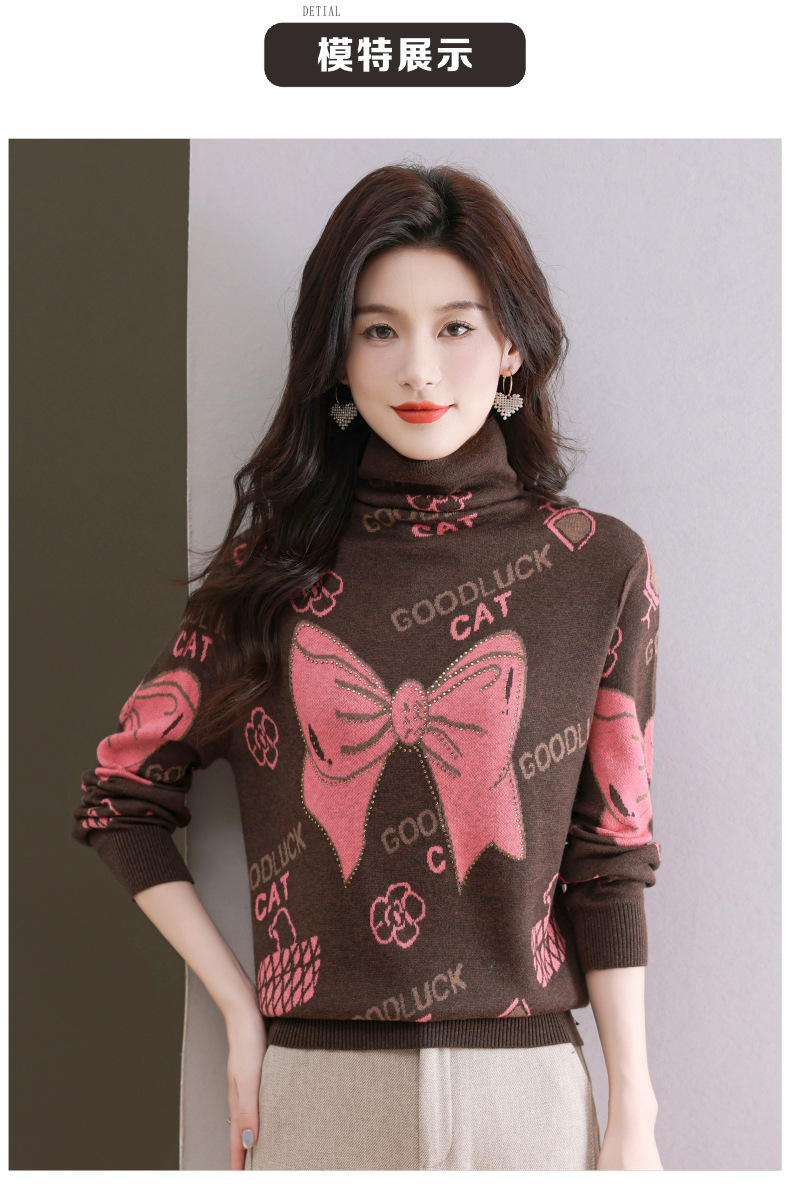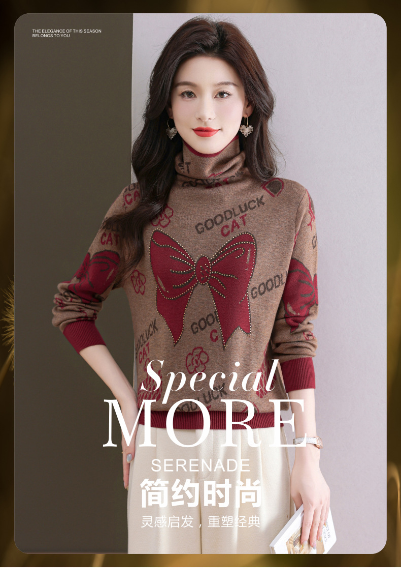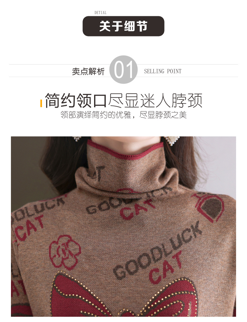 CC-QG-6867堆堆领毛衣女士2024秋冬新款洋气羊毛针织衫宽松内搭打底小衫上衣