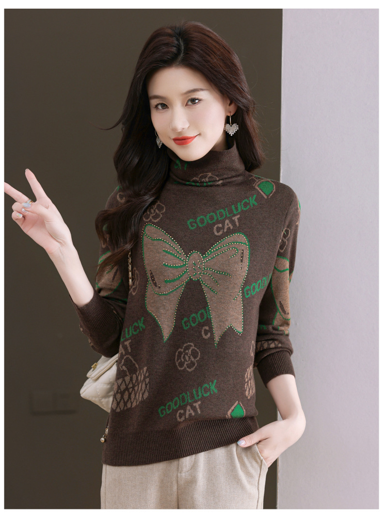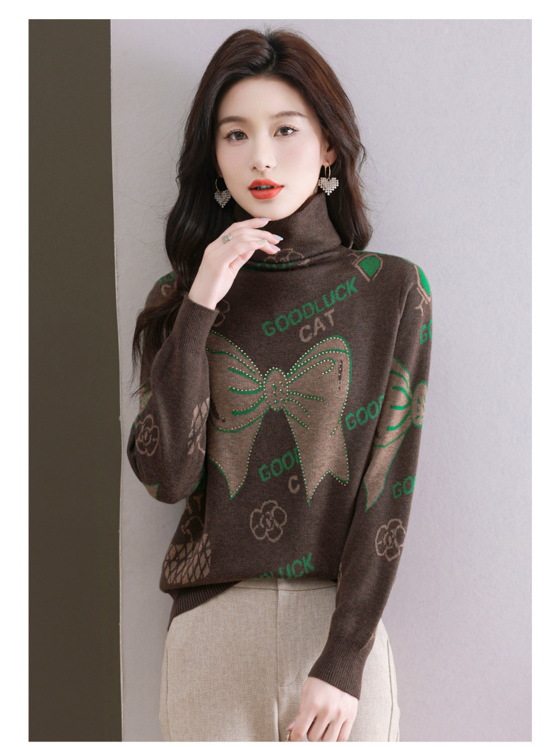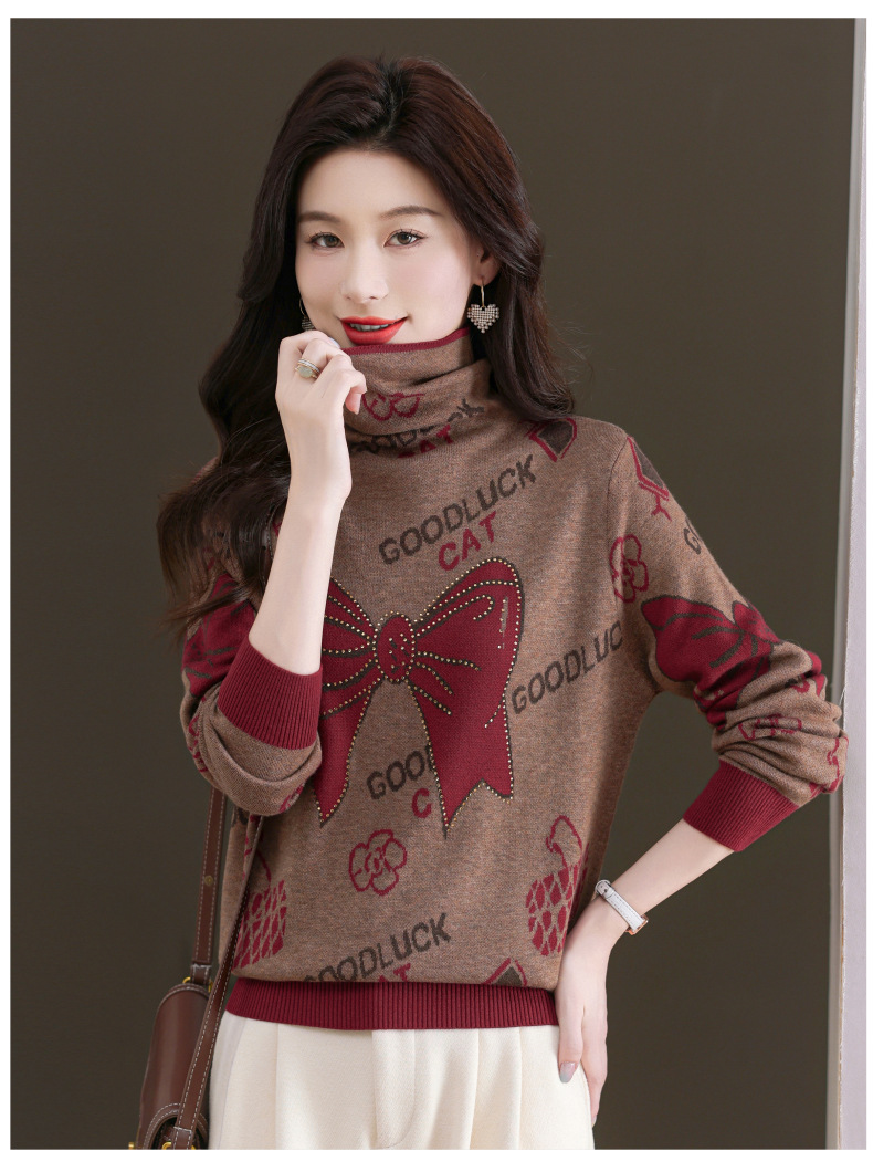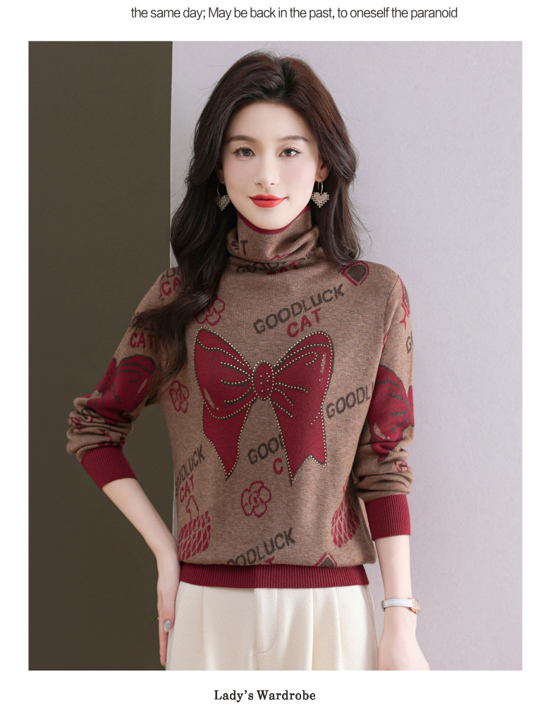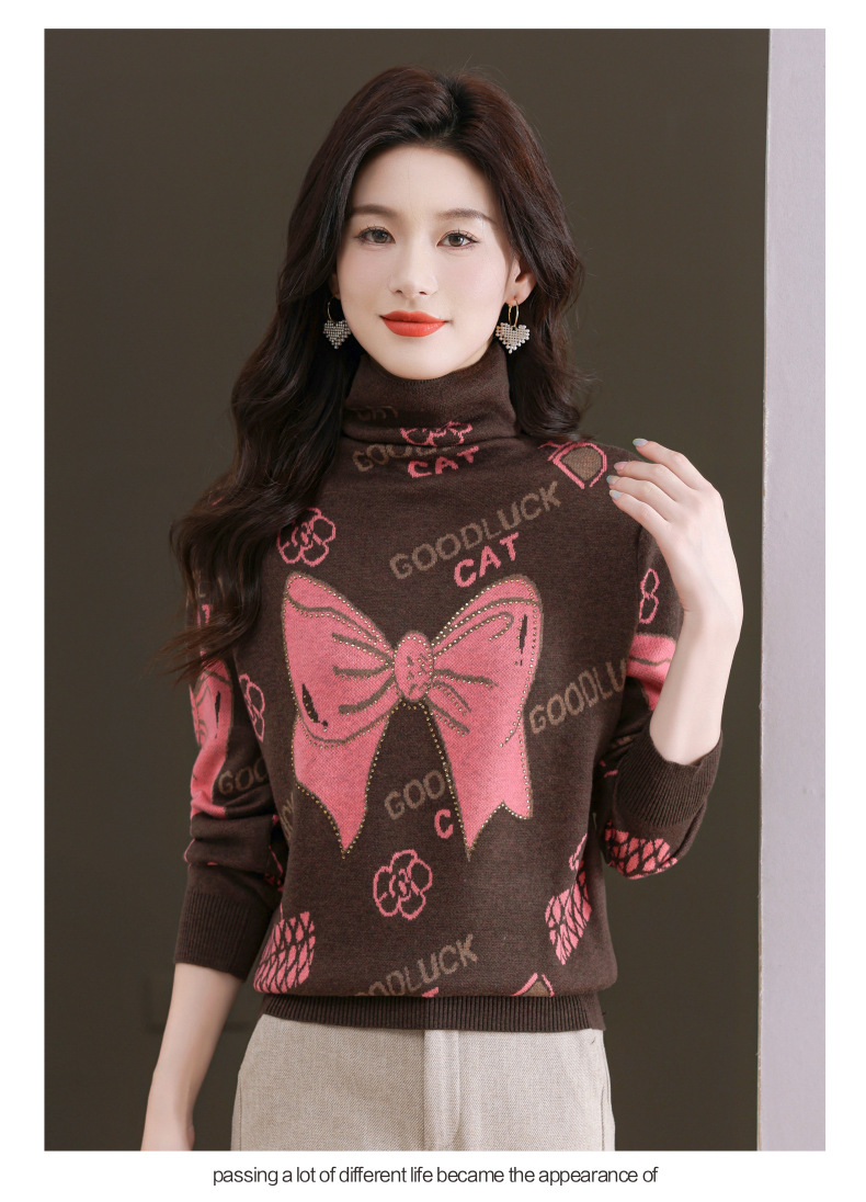 CC-QG-6867堆堆领毛衣女士2024秋冬新款洋气羊毛针织衫宽松内搭打底小衫上衣