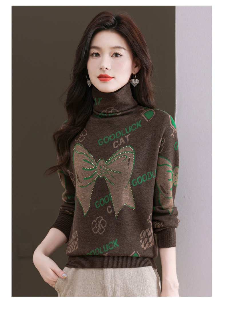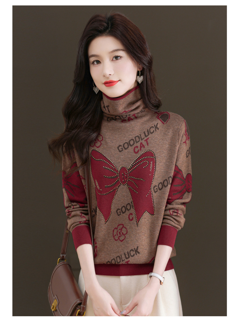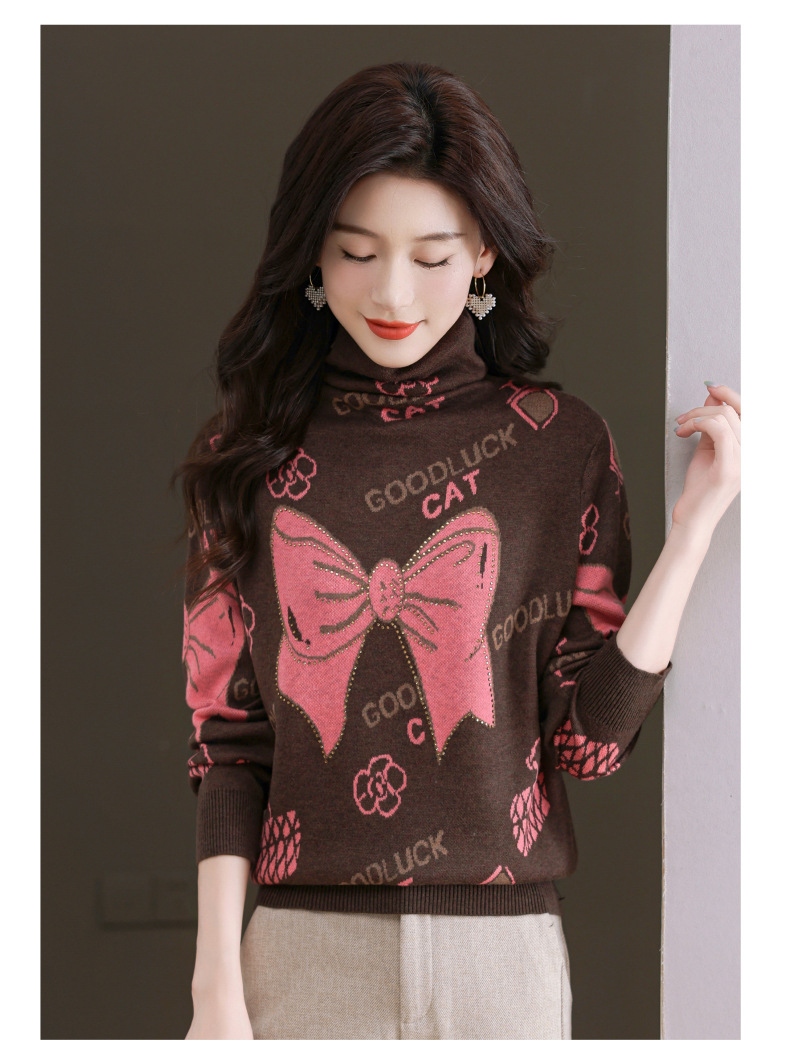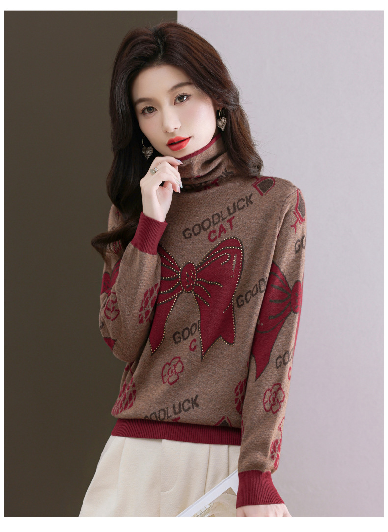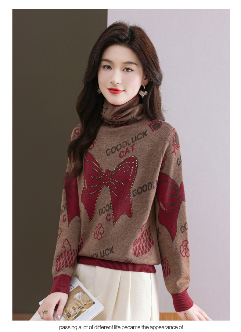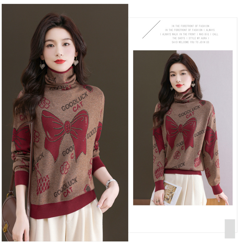 CC-QG-6867堆堆领毛衣女士2024秋冬新款洋气羊毛针织衫宽松内搭打底小衫上衣