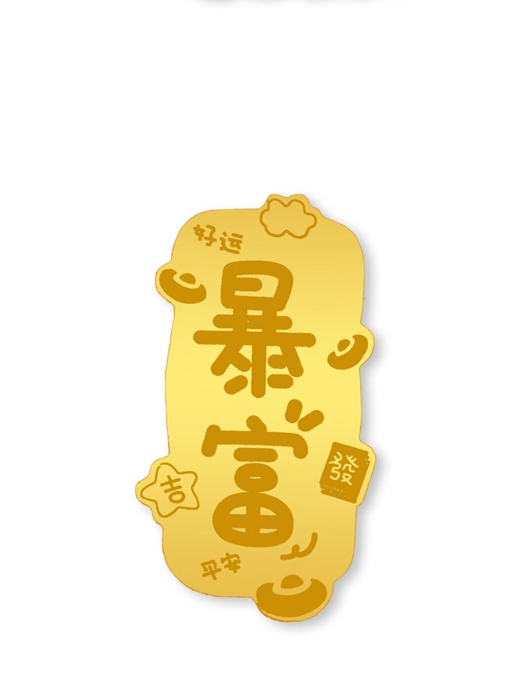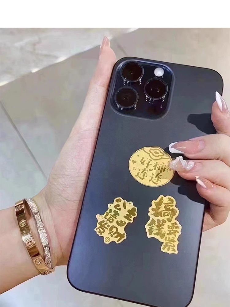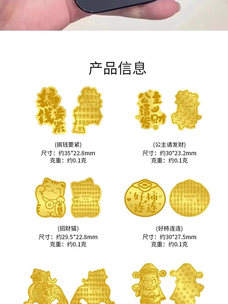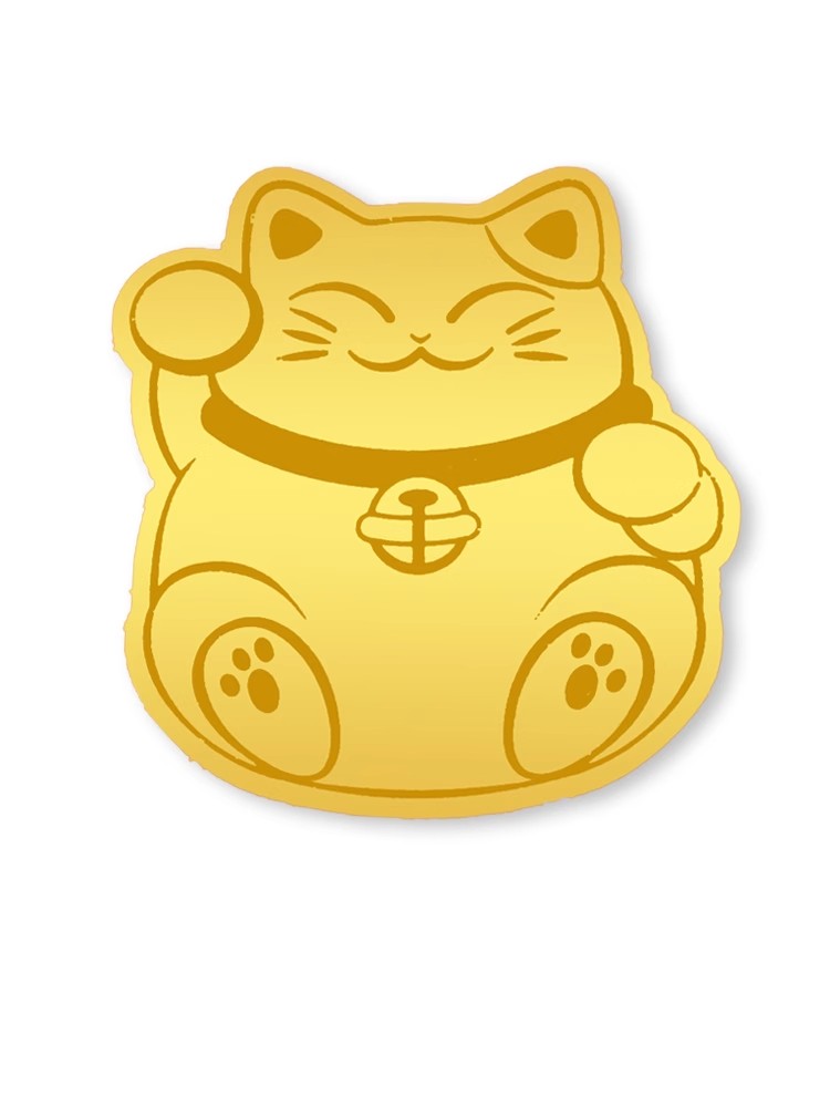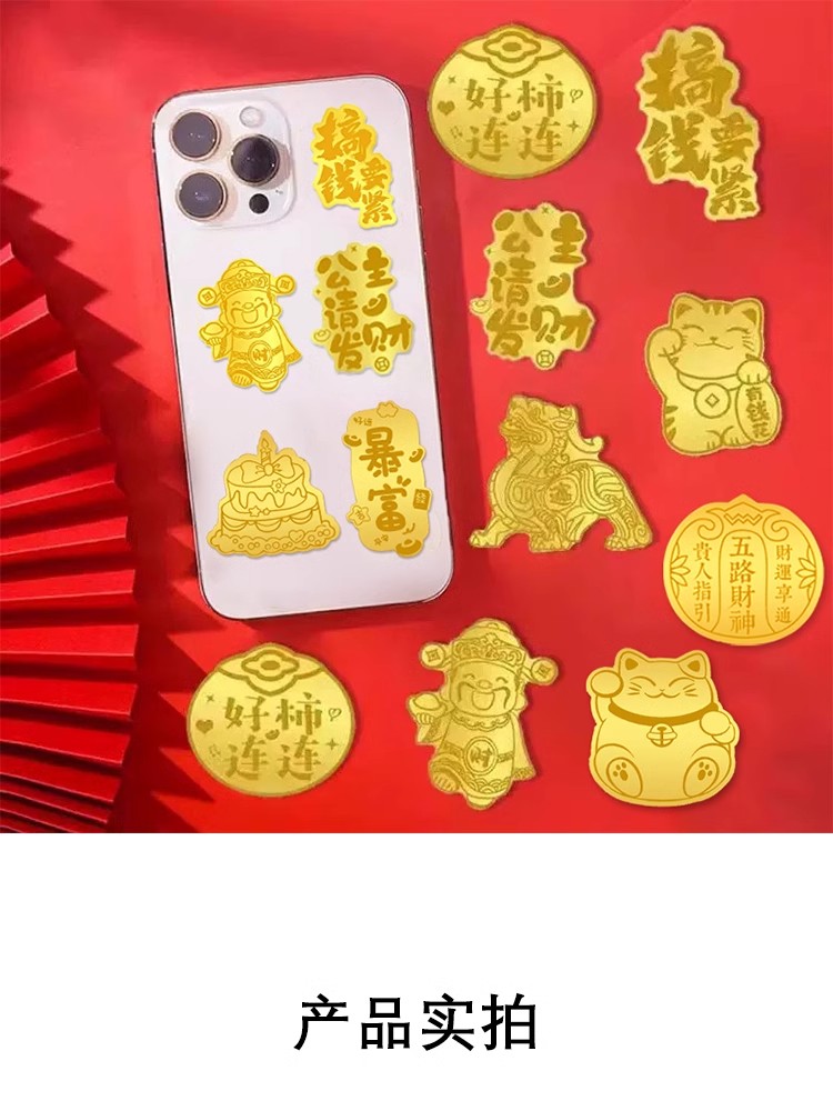 情人节好礼!【99元任选4个!足金招财猫,财运滚滚来!】2mg足金999手机贴 水贝同款 暴富财库招财猫背胶金贴小礼物-QQ