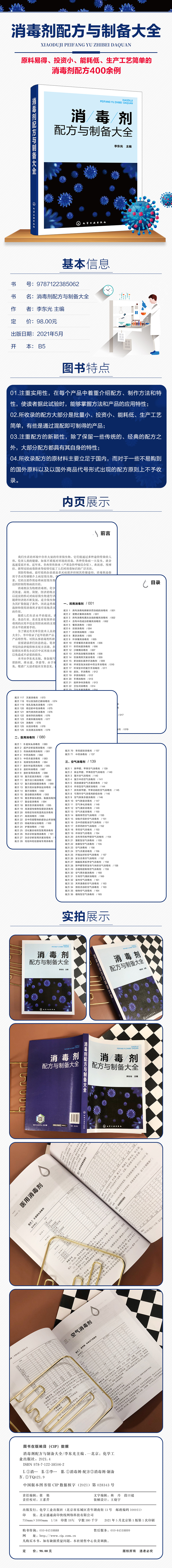 本书中收录了近年来消毒剂的新产品、新配方403种,按民用消毒剂、医用消毒剂、空气消毒剂、农牧养殖业消毒剂分为四大类,详细介绍原料配比、制备方法、产品特性等。本书实用性强,适用于消毒剂生产单位及使用单位的科技人员作为参考读物。